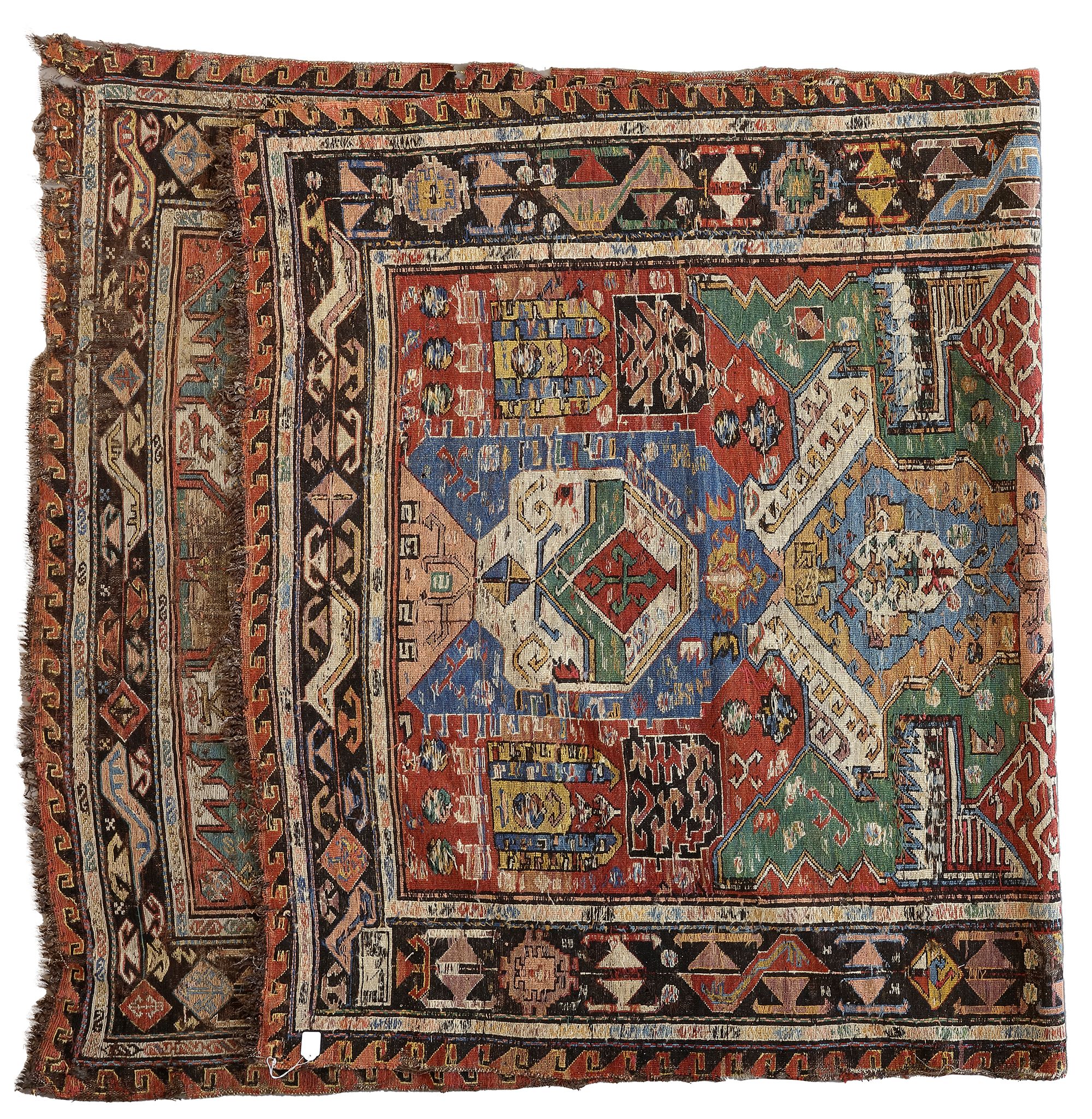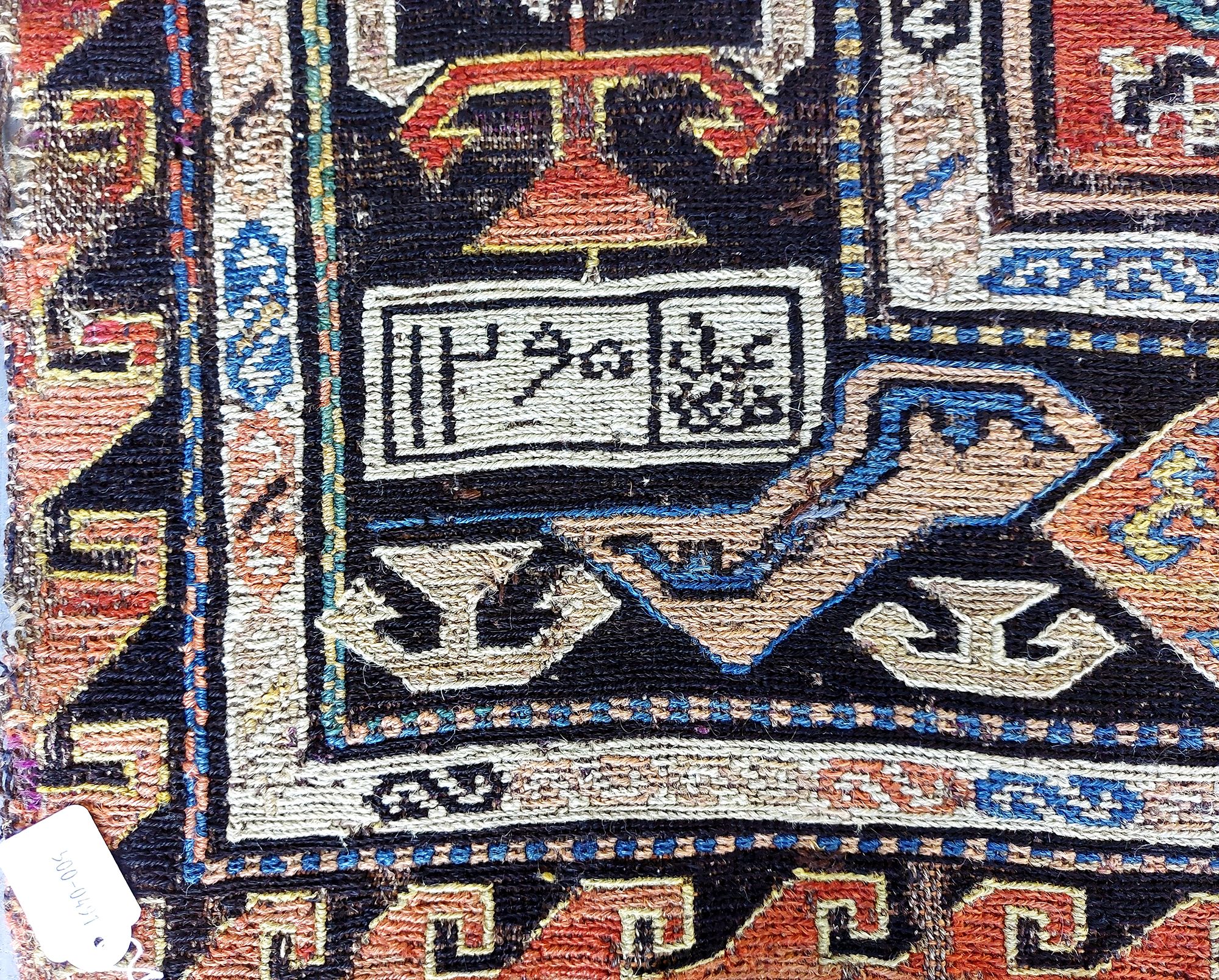 280 by 154 cm. Old repairs and a lot of wear and tear.