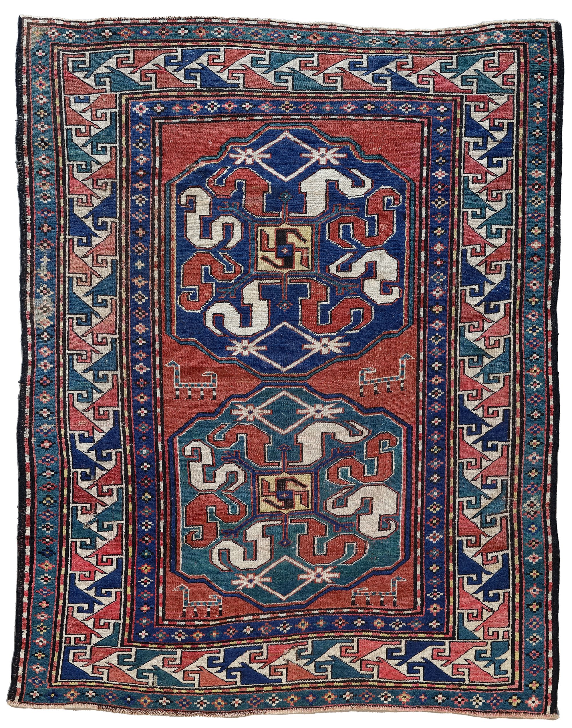 188 by 150 cm. Low in pile, old repairs.