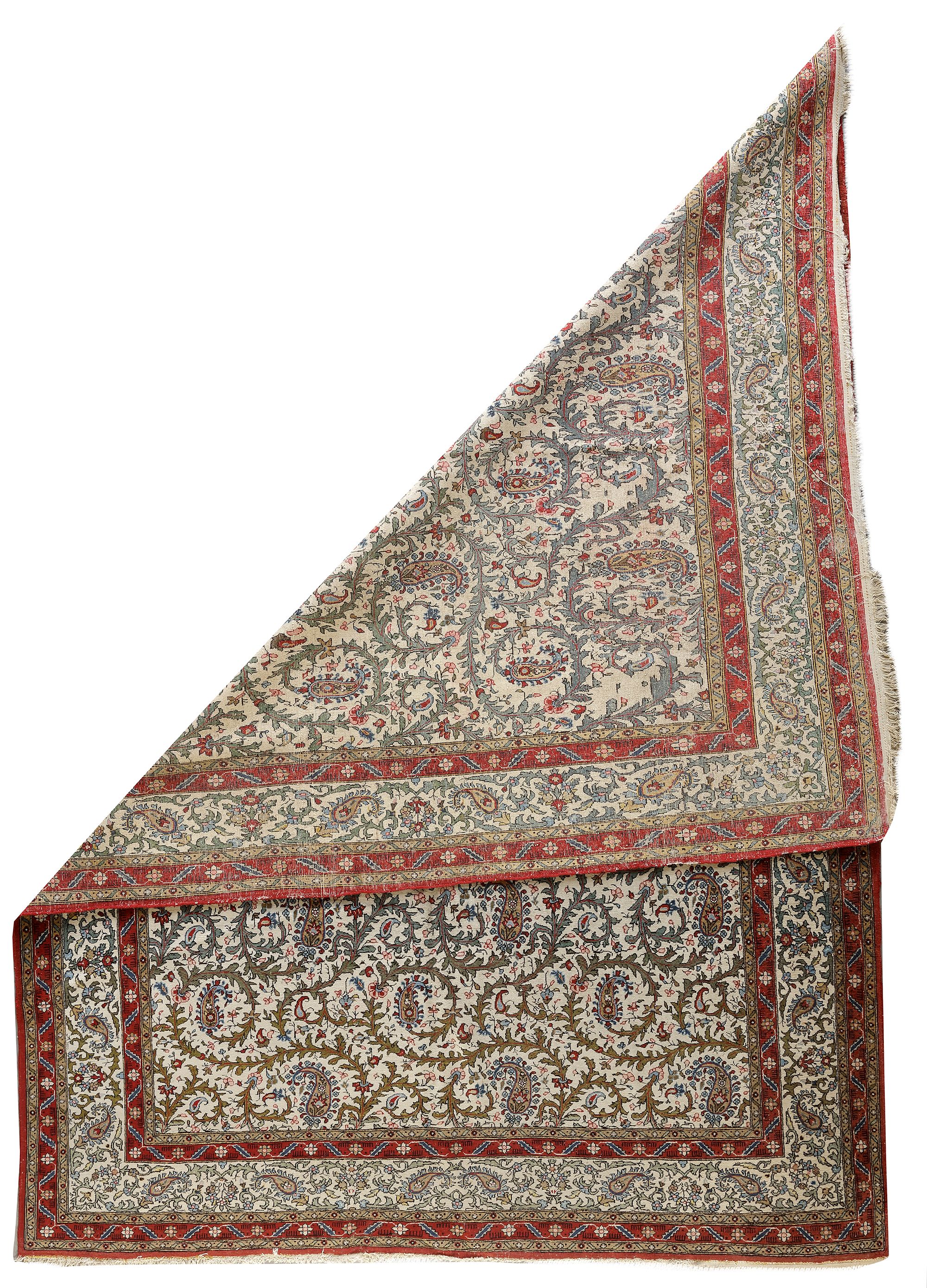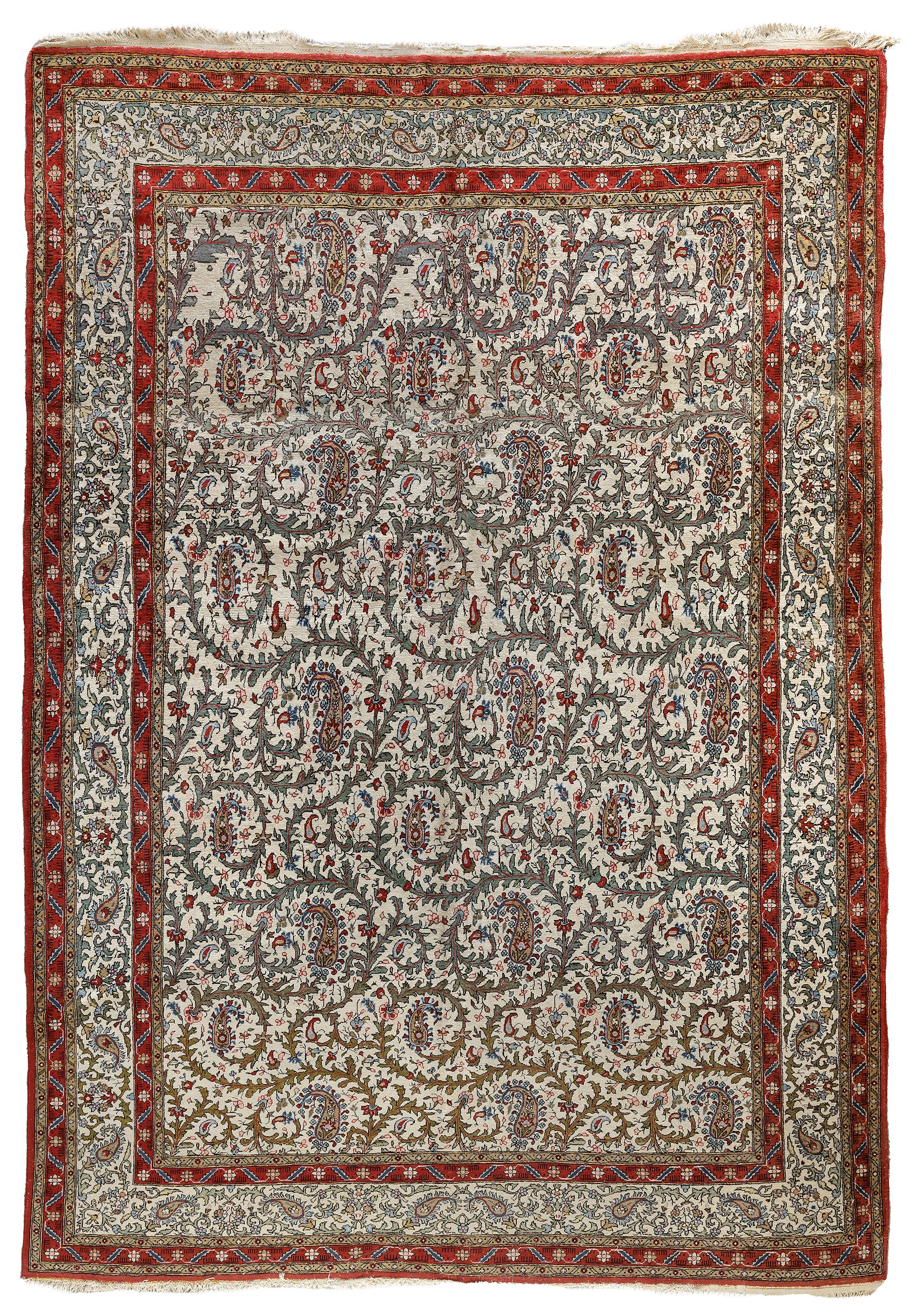 315 by 227 cm. In a good condition, fringes damaged.