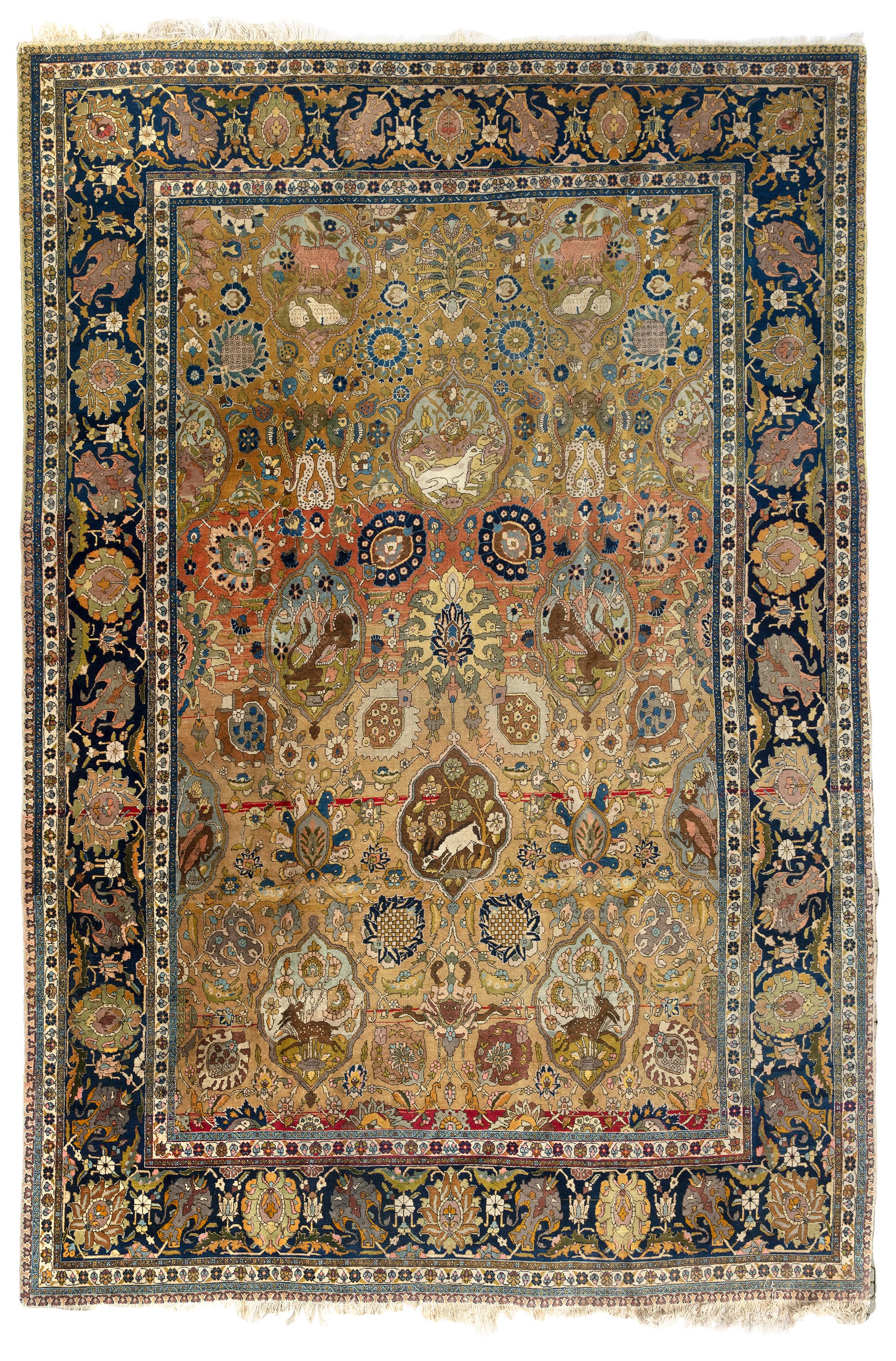 Wool on cotton, fine knots. Condition is good, some missing fringes. 390 by 262 cm.