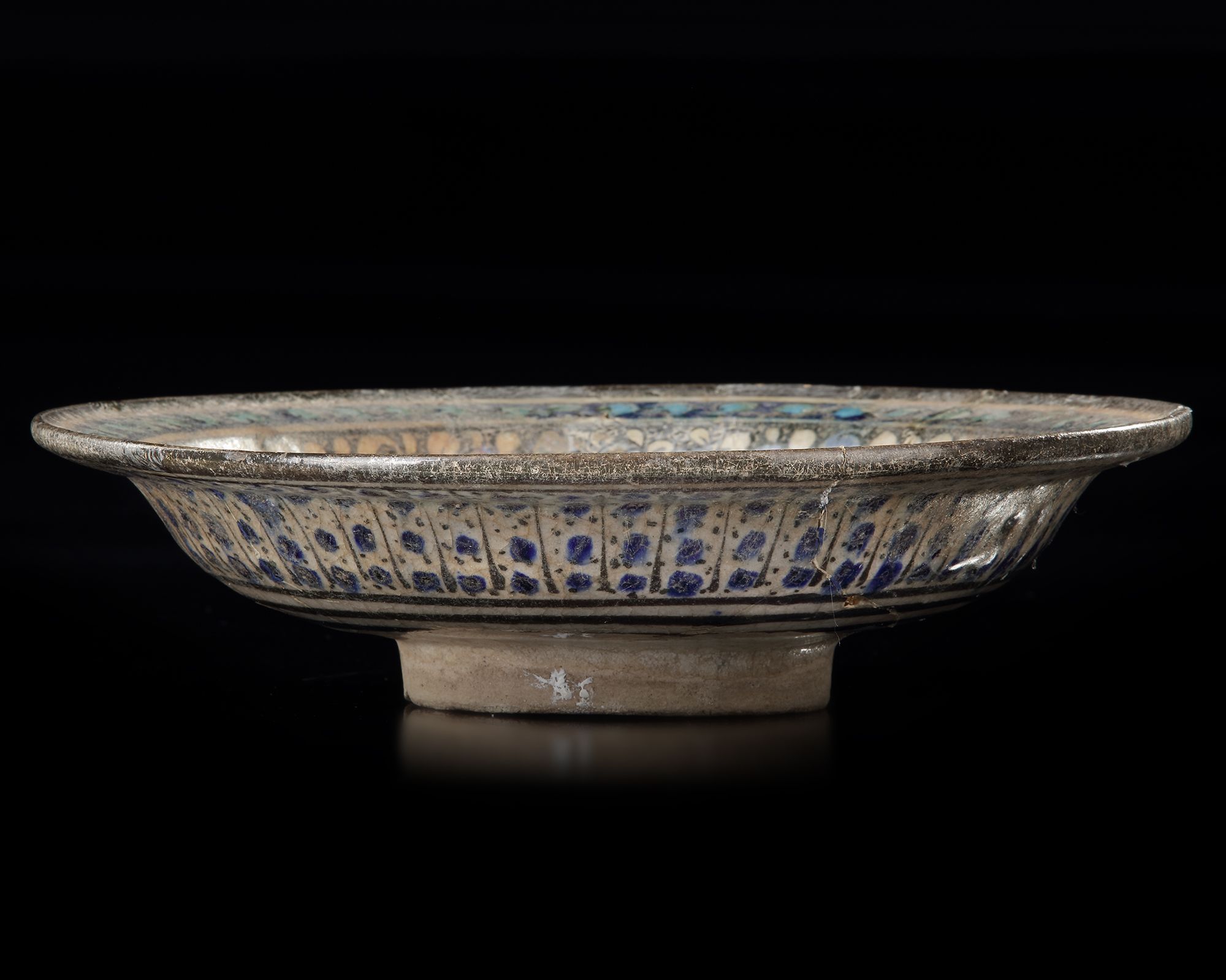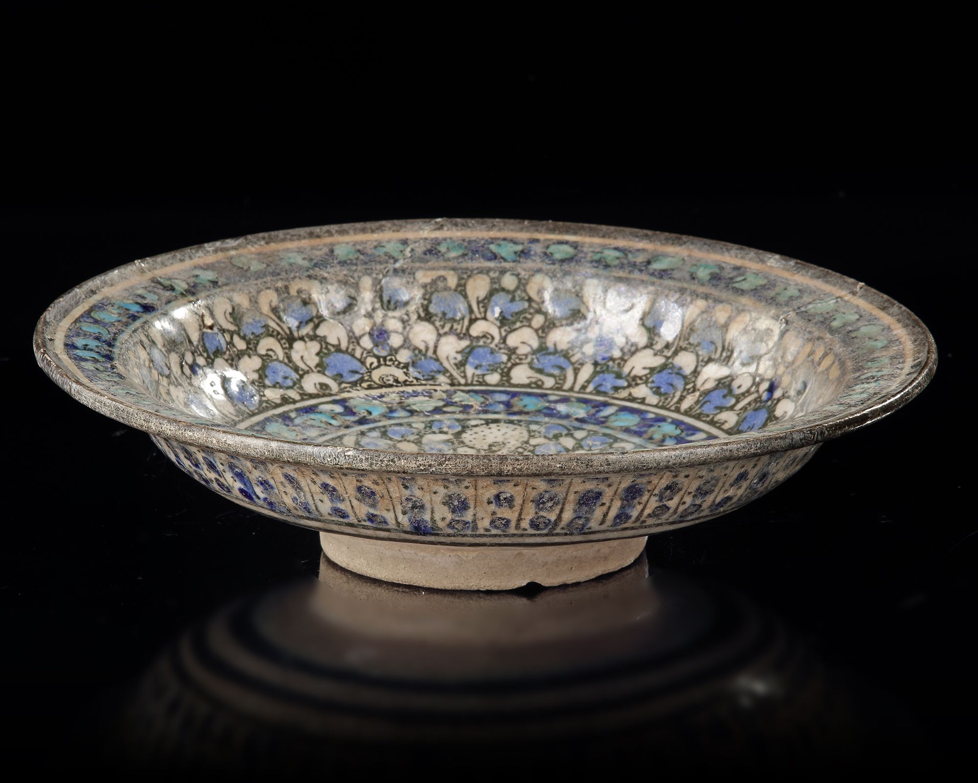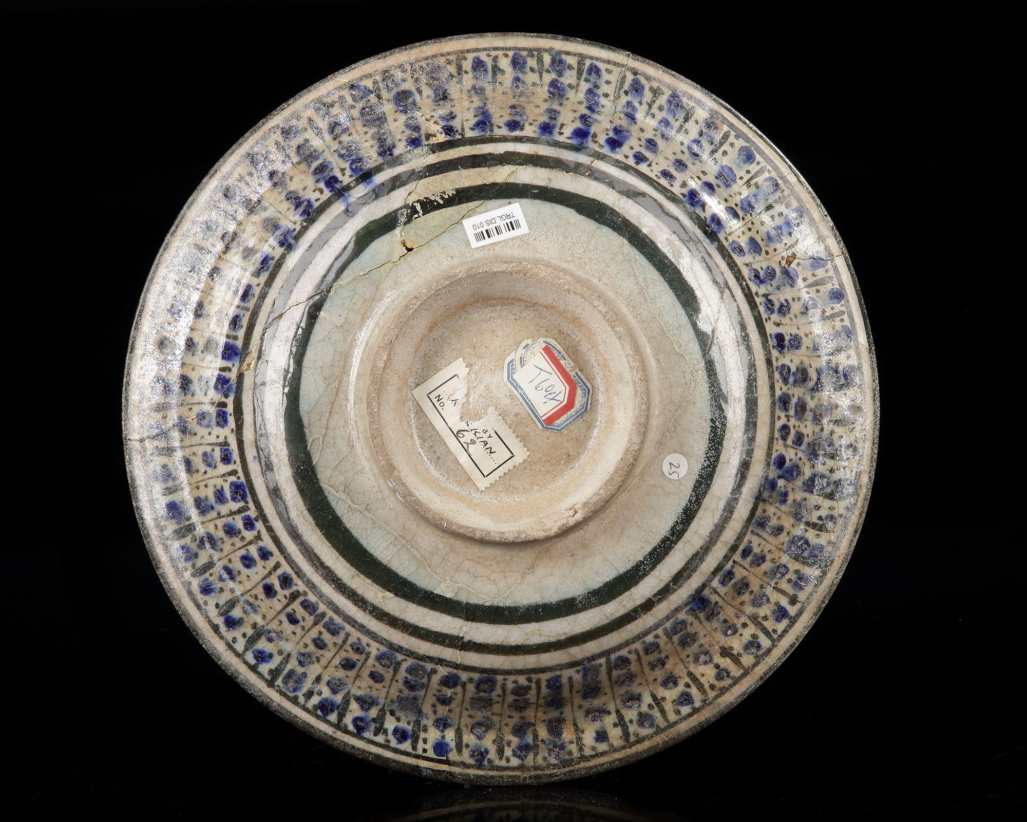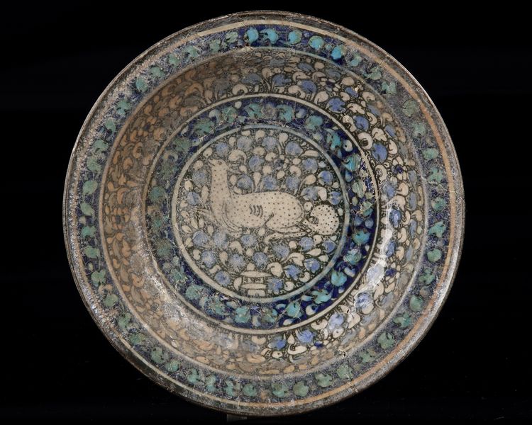 The dish belongs to the group called Sultanabad, whose name comes from a city in Iran (now Arak). Sultanabad ceramics were fashionable between the end of the 13th and 14th centuries AD, during the Mongol domination in Iran (reign of the Ilkhanids), but the center of production of these vessels remains a subject of open scientific discussion.