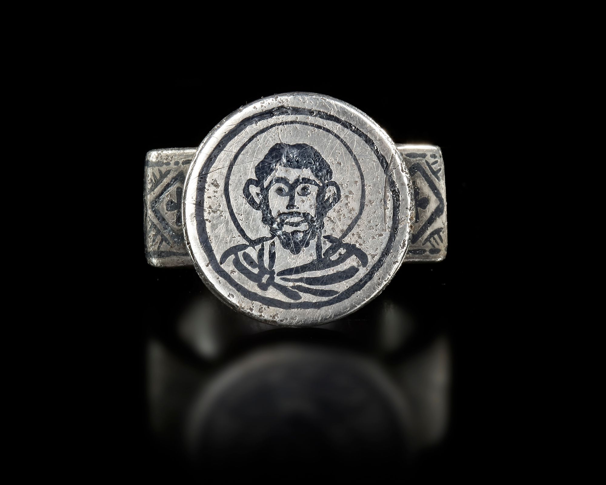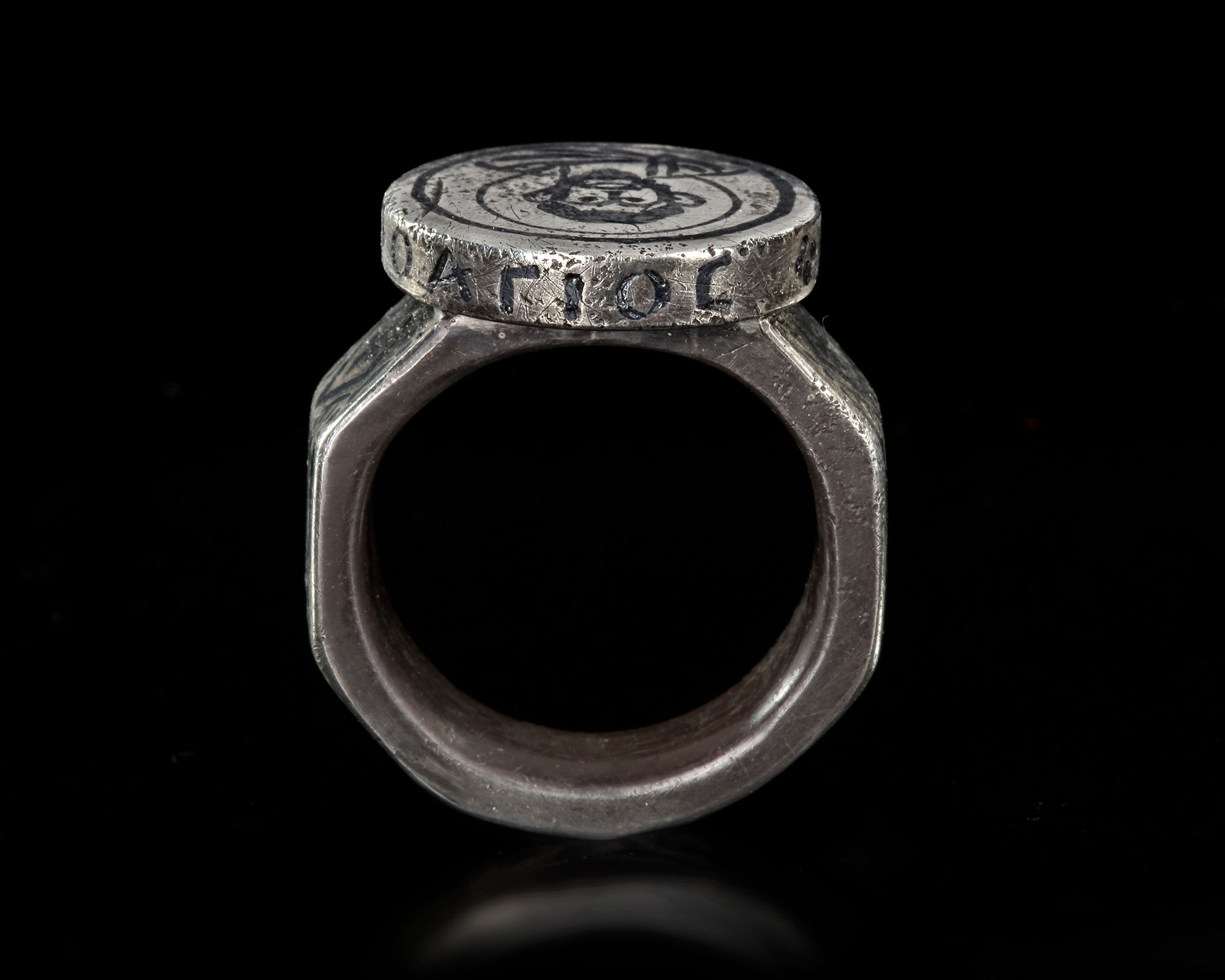 A large silver ring dedicated to St.Theodore. The ring is covered with Niello decoration, including the dedicatory inscription around the bezel.