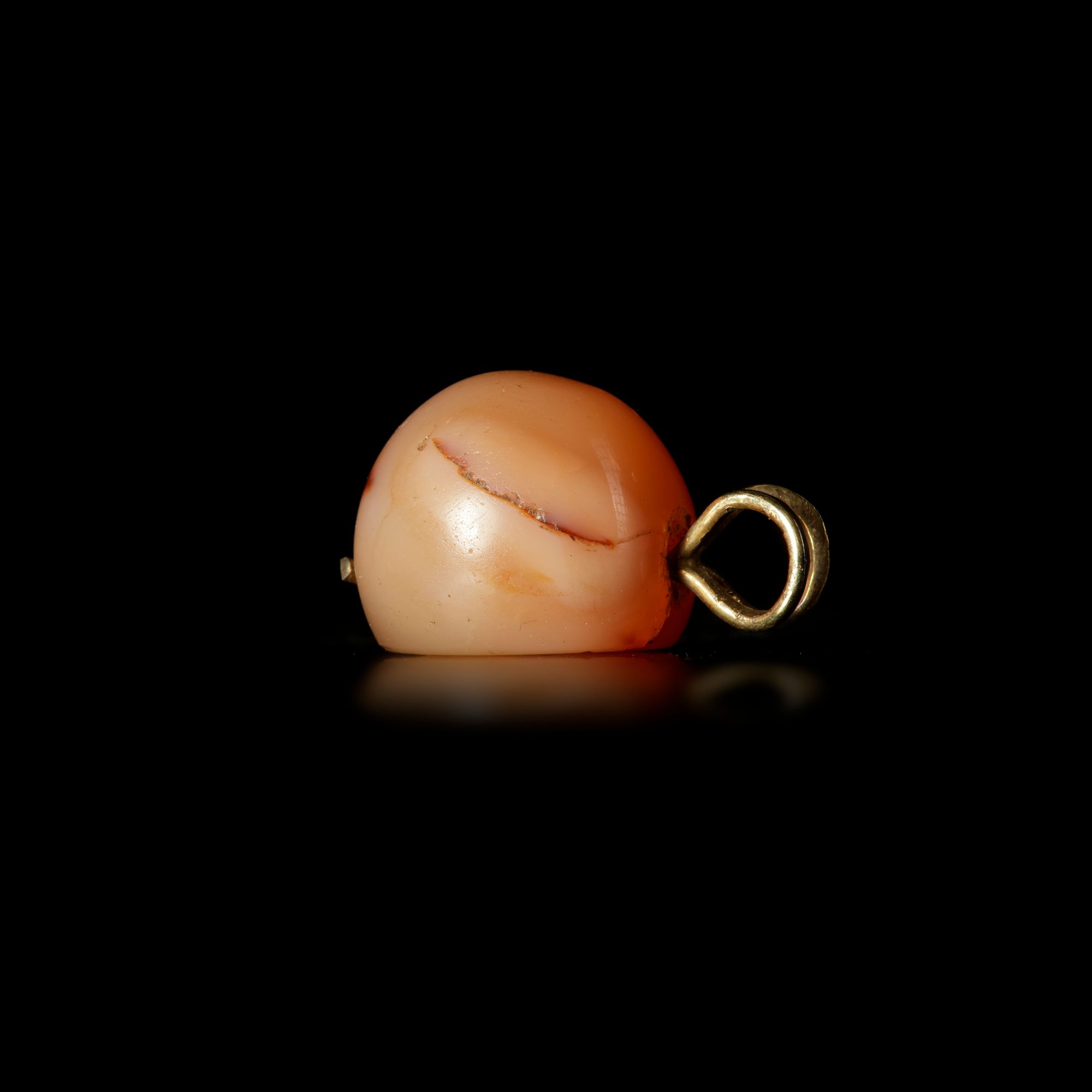Superb Sasanian stone stamp seal with domed body and engraved to the underside. Center hole for hanging as pendant. ca 500 AD. L1.3cm w1.6 cm. 5.9g