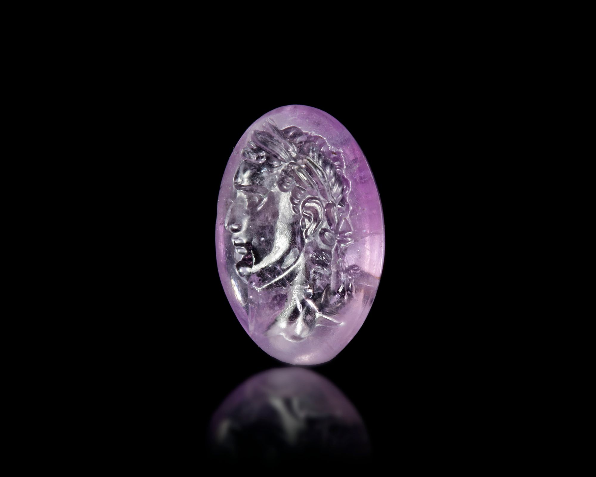 The nice colour intaglio is depicting the portrait of a Seleucid king probably Demetrius the second. Dimensions: 1.2 by 1. cm