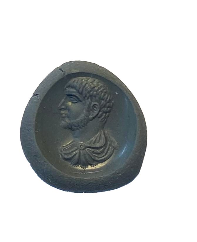 This captivating Roman intaglio, carved in rich violet amethyst, features the finely detailed profile of a nobleman from the early 1st century A.D., during the late Republican period. The gemstone radiates a regal aura, its polished surface capturing light and emphasizing the sharp contours of the man’s bearded face, solemn expression, and classical drapery. The artistry reflects the Roman tradition of realistic portraiture, celebrating status, lineage, and individual identity. As a seal or ring centerpiece, 1.9 cm. Weight: 1.76 gr.