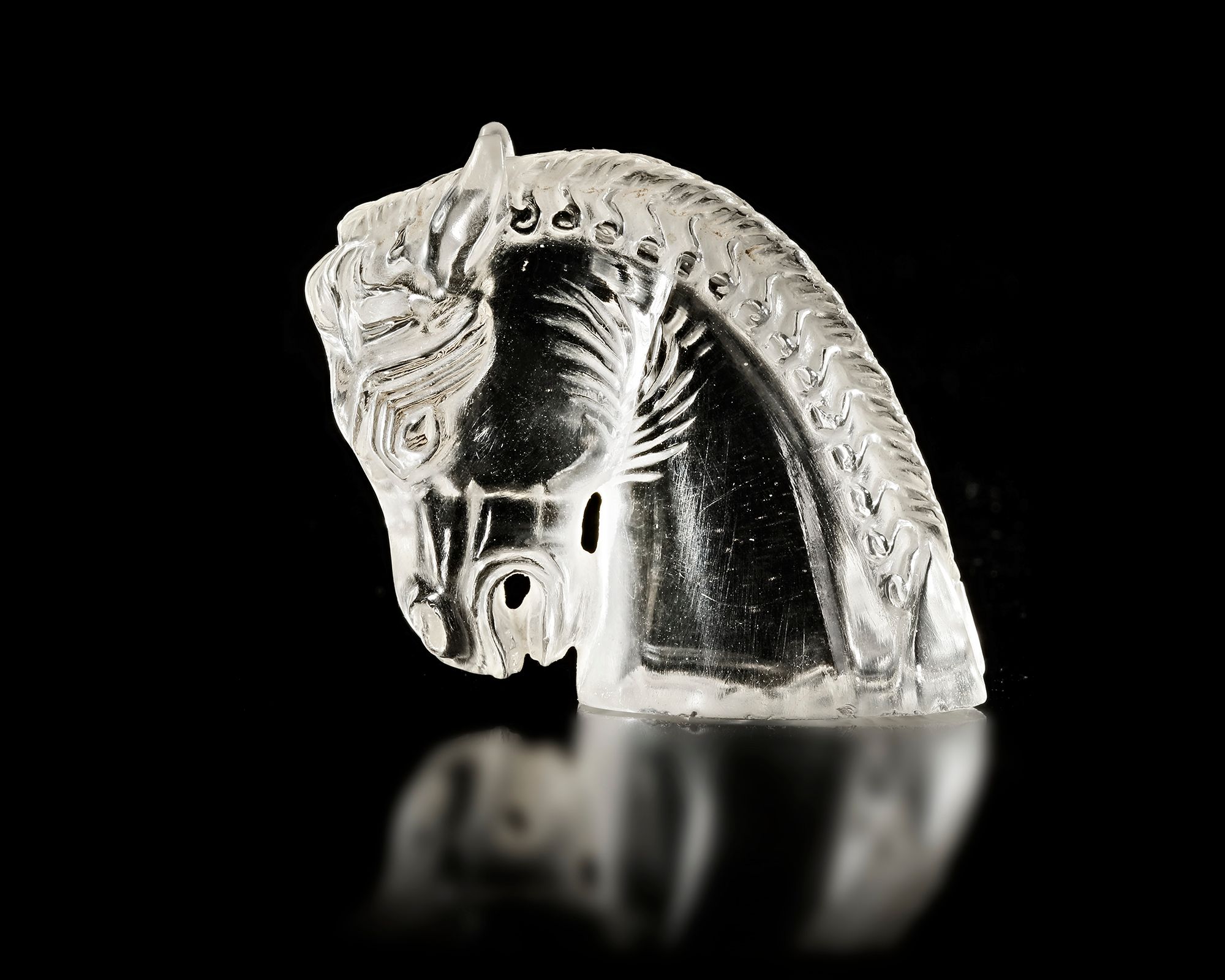 Lot 339AN INDIAN ROCK CRYSTAL HORSE-HEAD CARVING, 18TH CENTURY