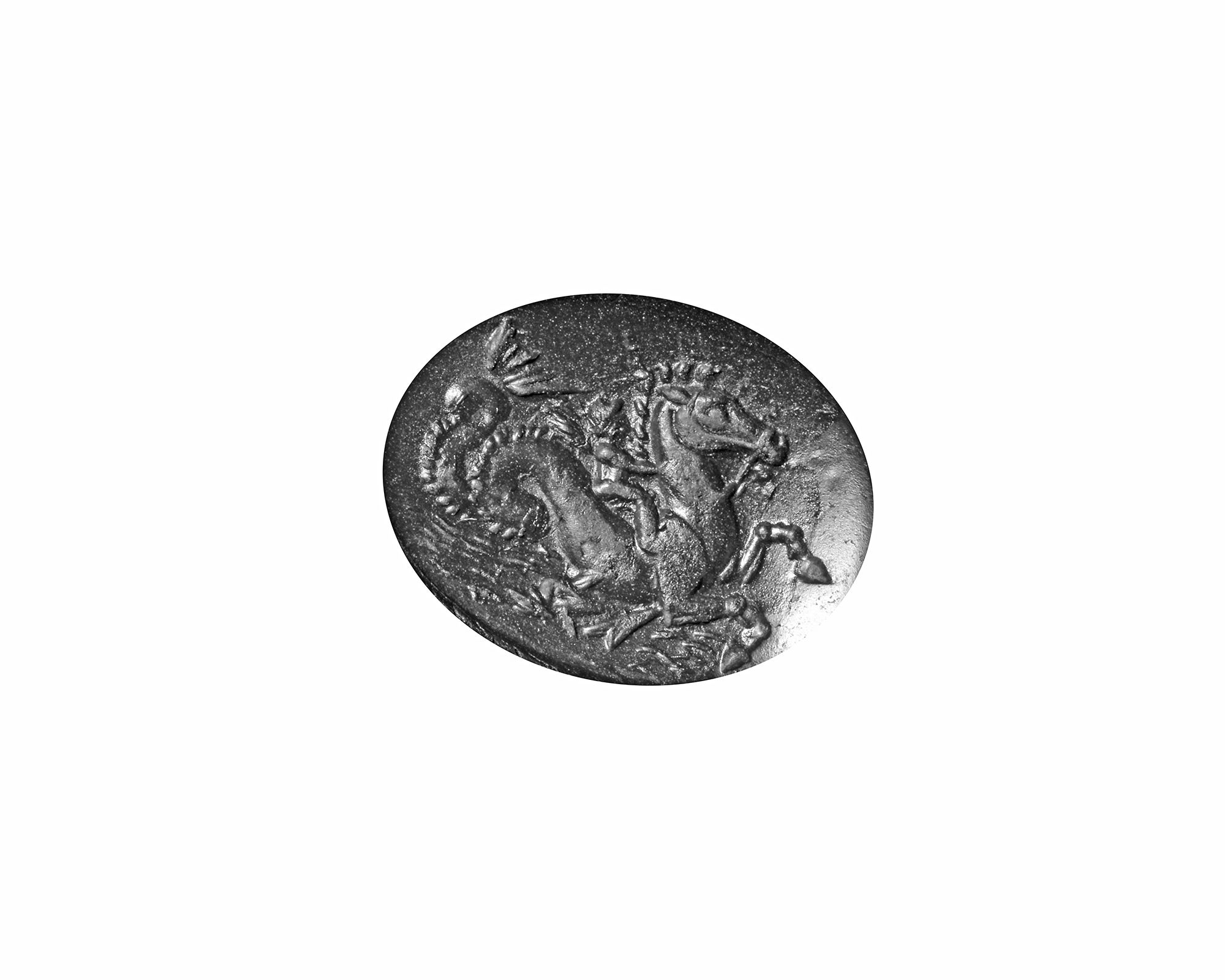Roman amethyst intaglio intricately engraved with Eros seated upon a sea horse, a charming fusion of love symbolism and marine mythology. 12 by 18 mm.