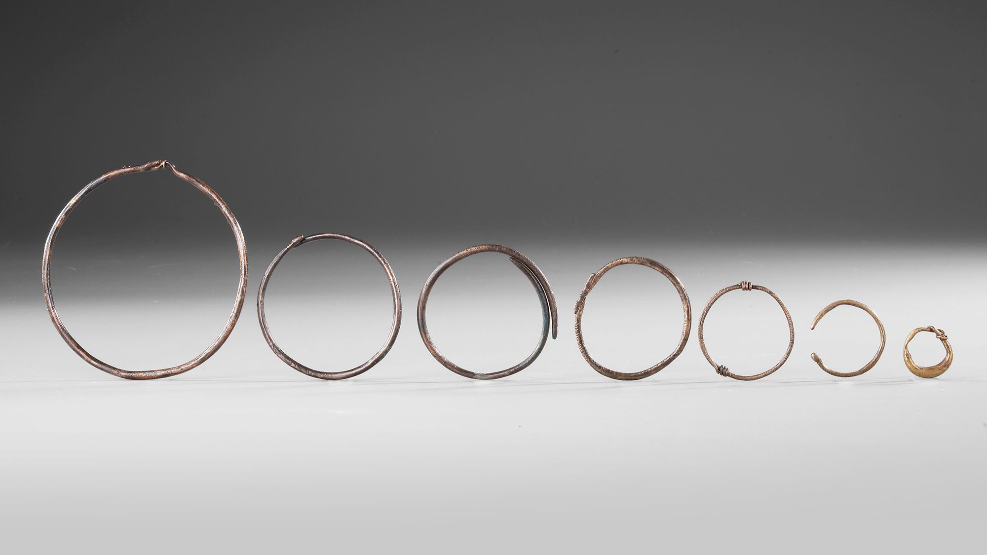 Diameter largest 11 cm, smallest 2.5 cm.