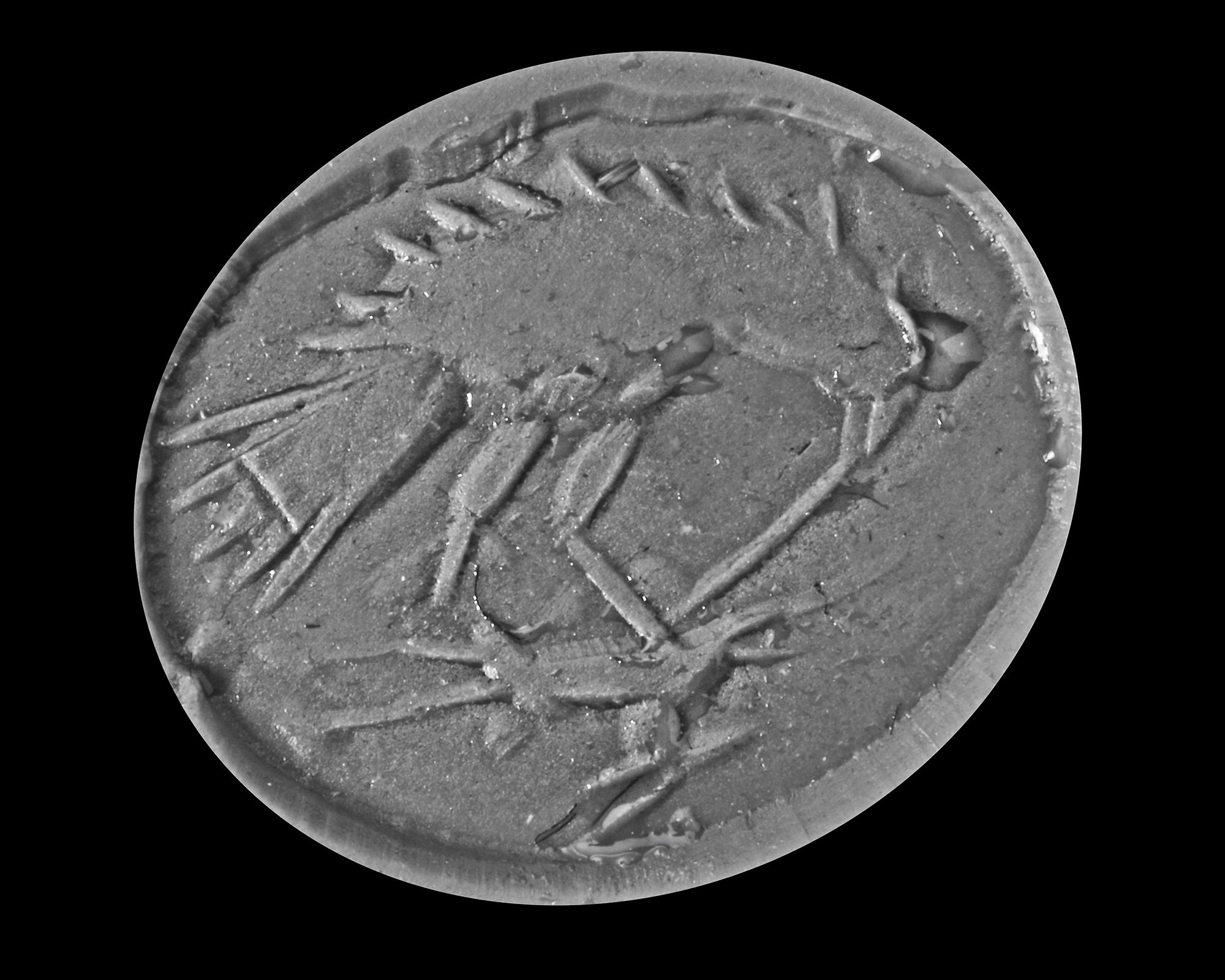 A carnelian intaglio of an eagle tearing at a deer/gazelle in a robust wheel cut style. On the concave back we see part of a head of Heracles (?) almost certainly from a much earlier date.