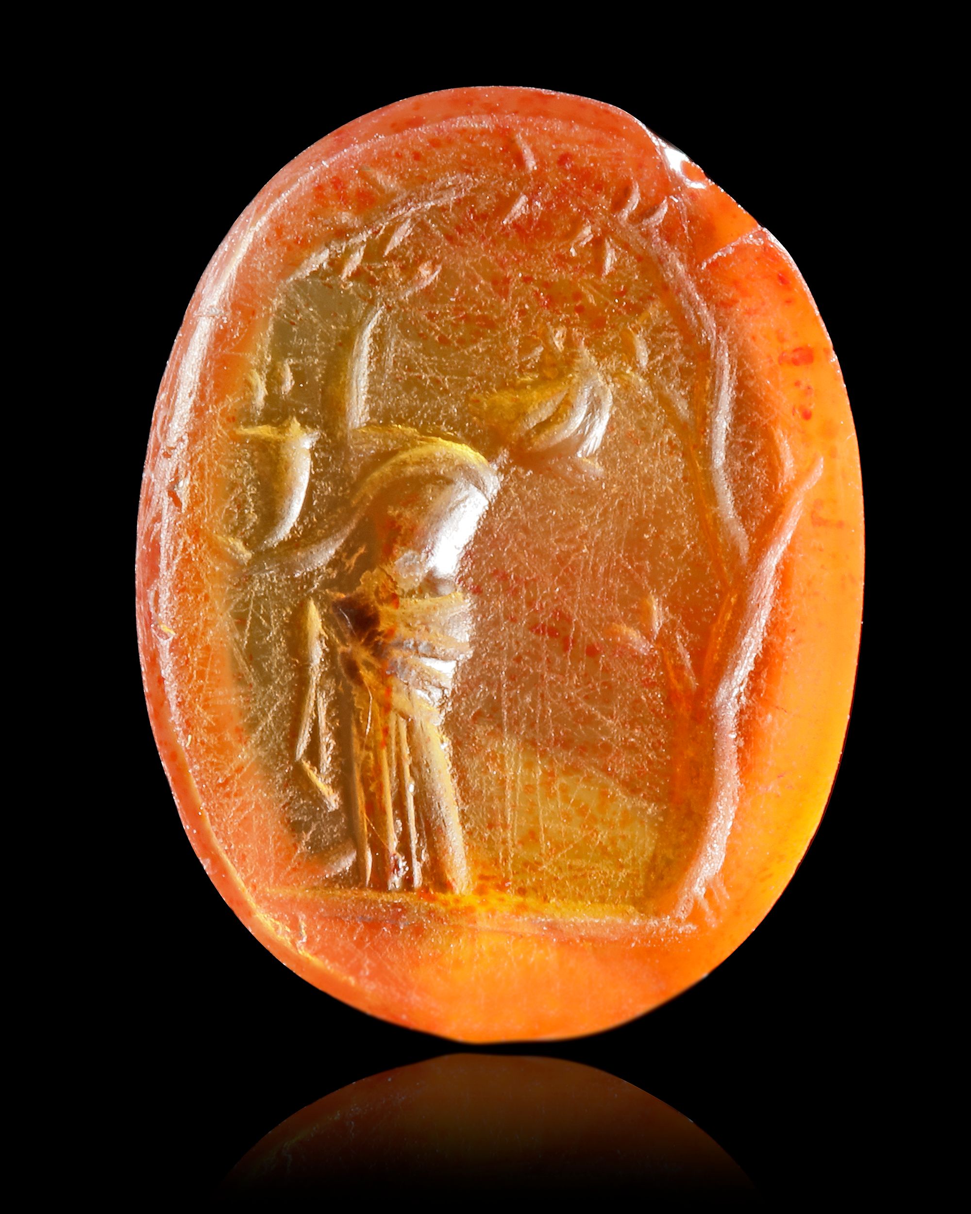 A ROMAN CARNELIAN INTAGLIO WOMAN WITH TREE, 1ST-2ND CENTURY AD