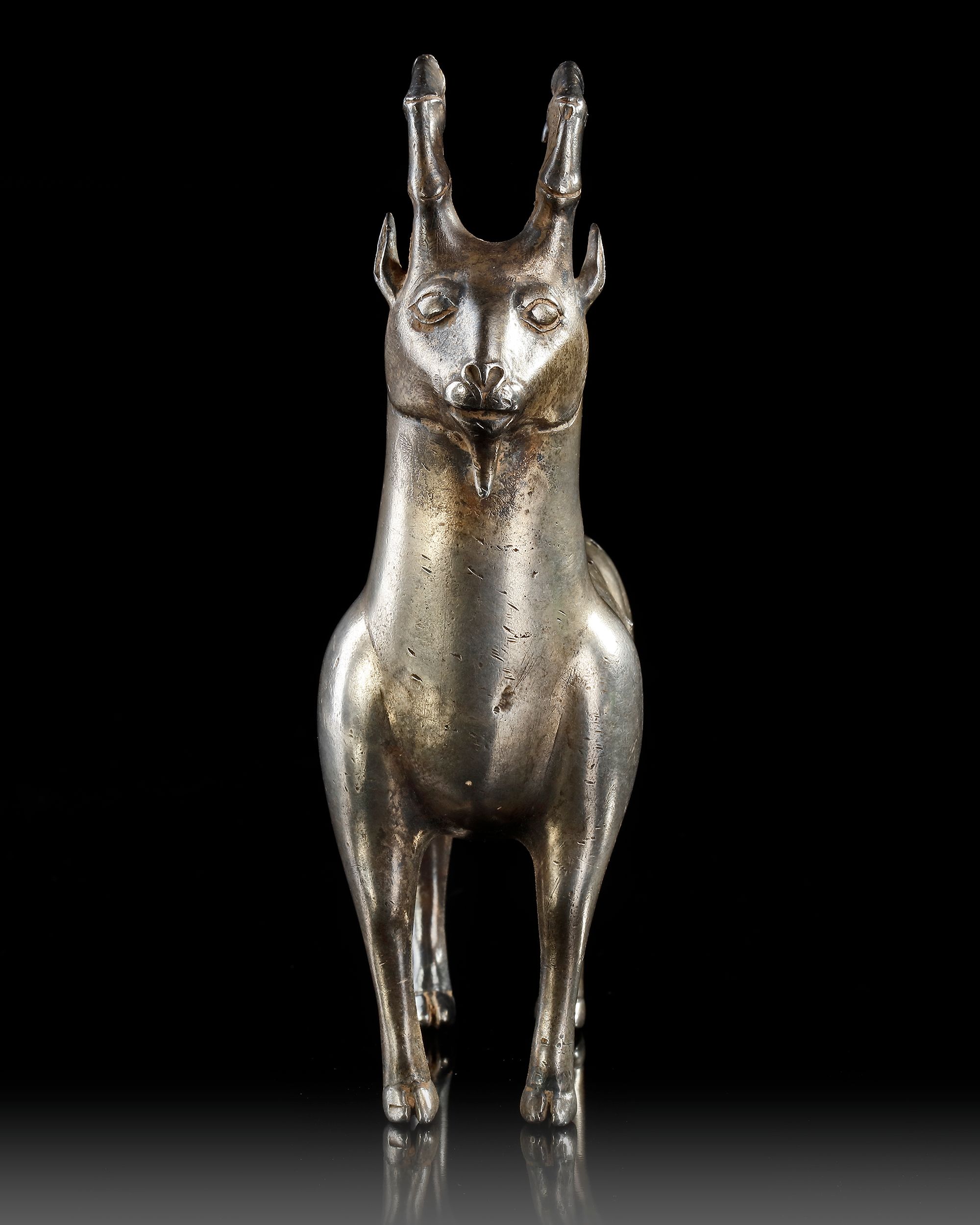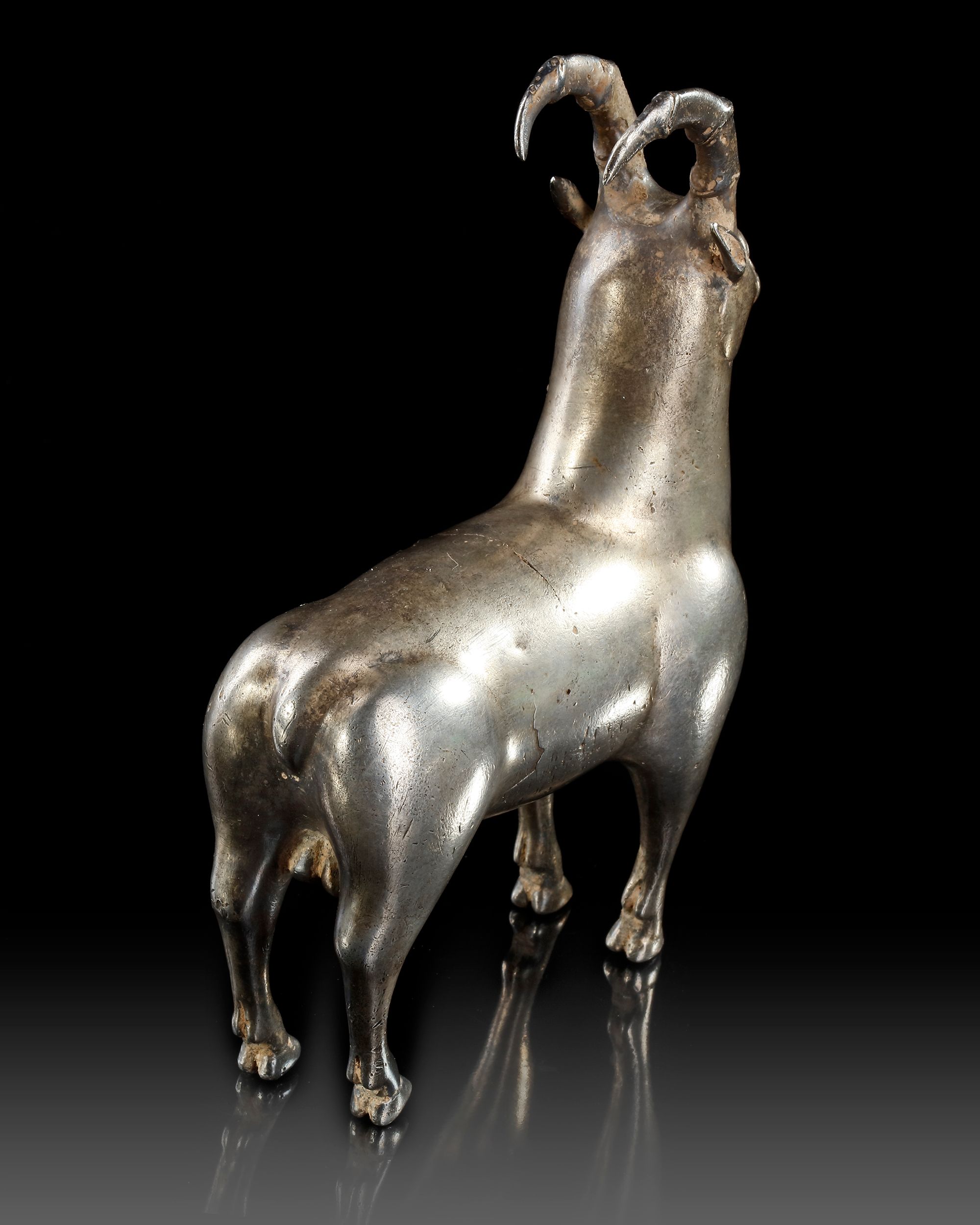 A free standing hollow cast representation of a mouflon or mountain goat, commonly used by the Achaemenids as a motif, especially for the protomes of rhytons.