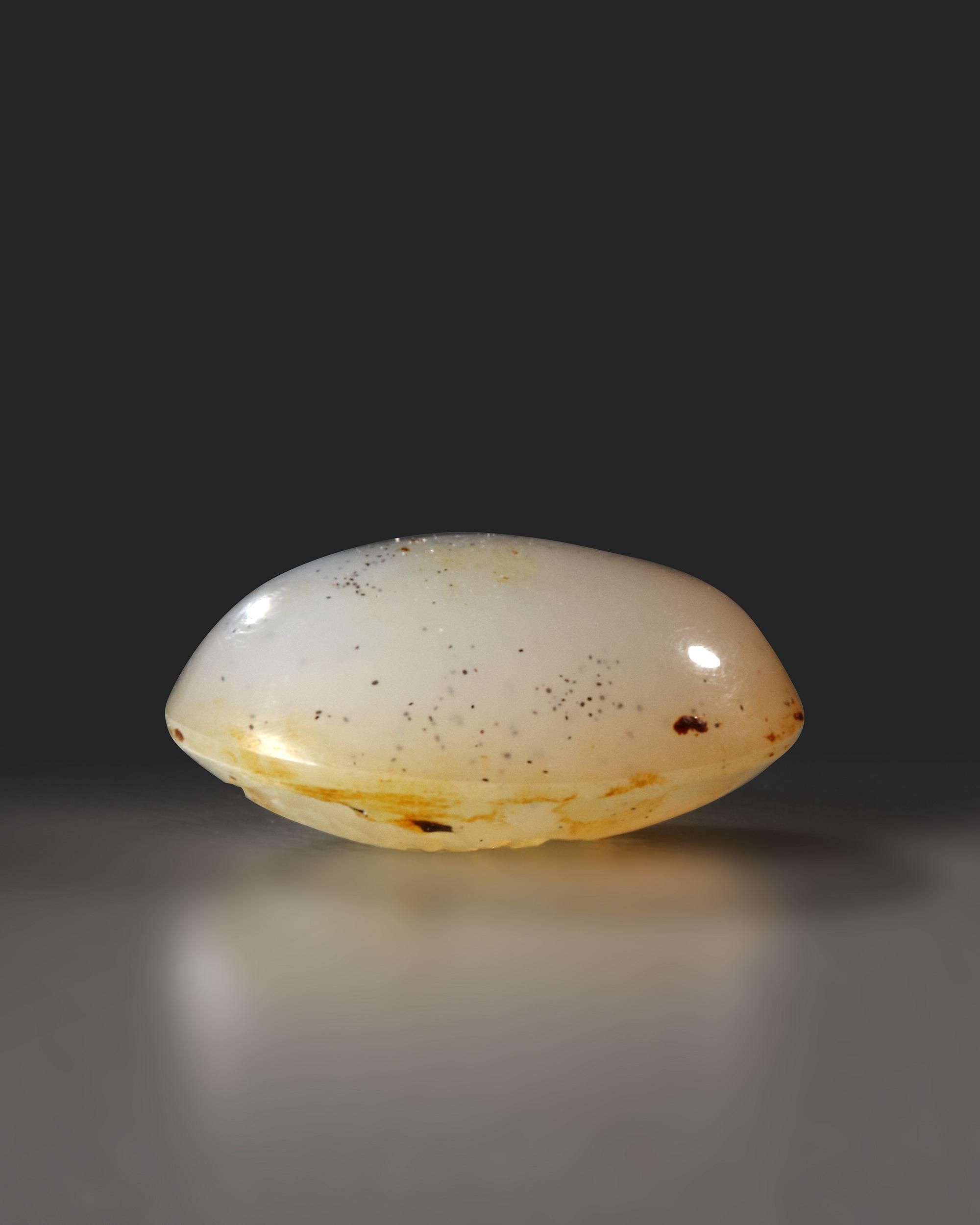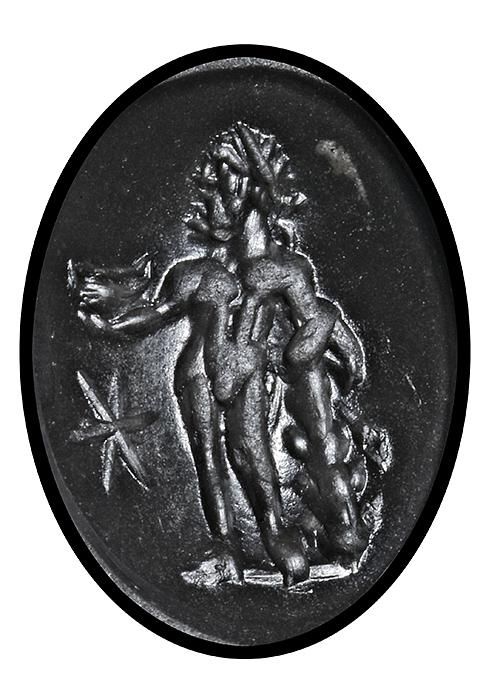 A Roman oval chalcedony intaglio, domed top engraved with Hercules standing full length turned to the left with a star in the field in front of him.