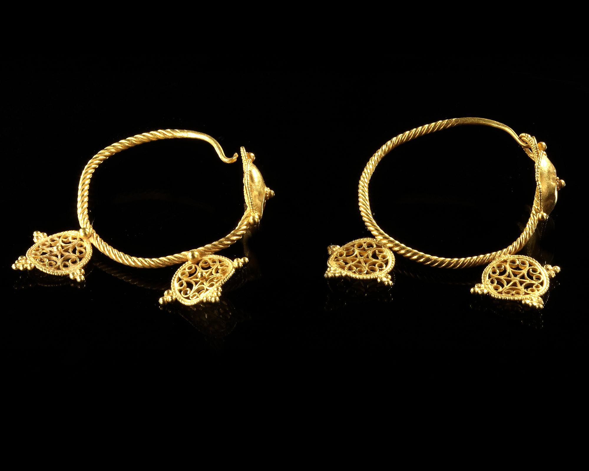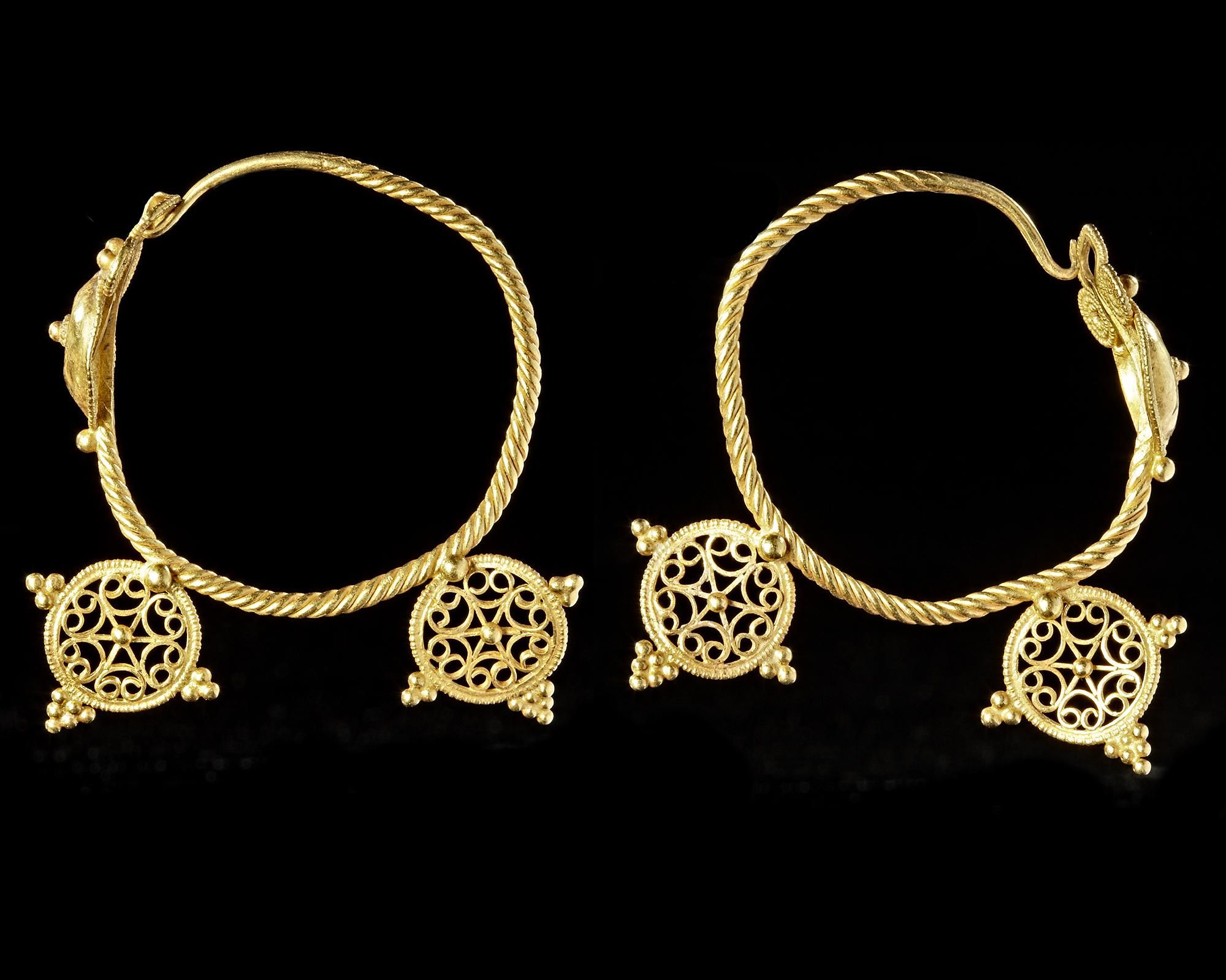 A PAIR OF BYZANTINE GOLD EARRINGS, CIRCA 6TH-7TH CENTURY A.D