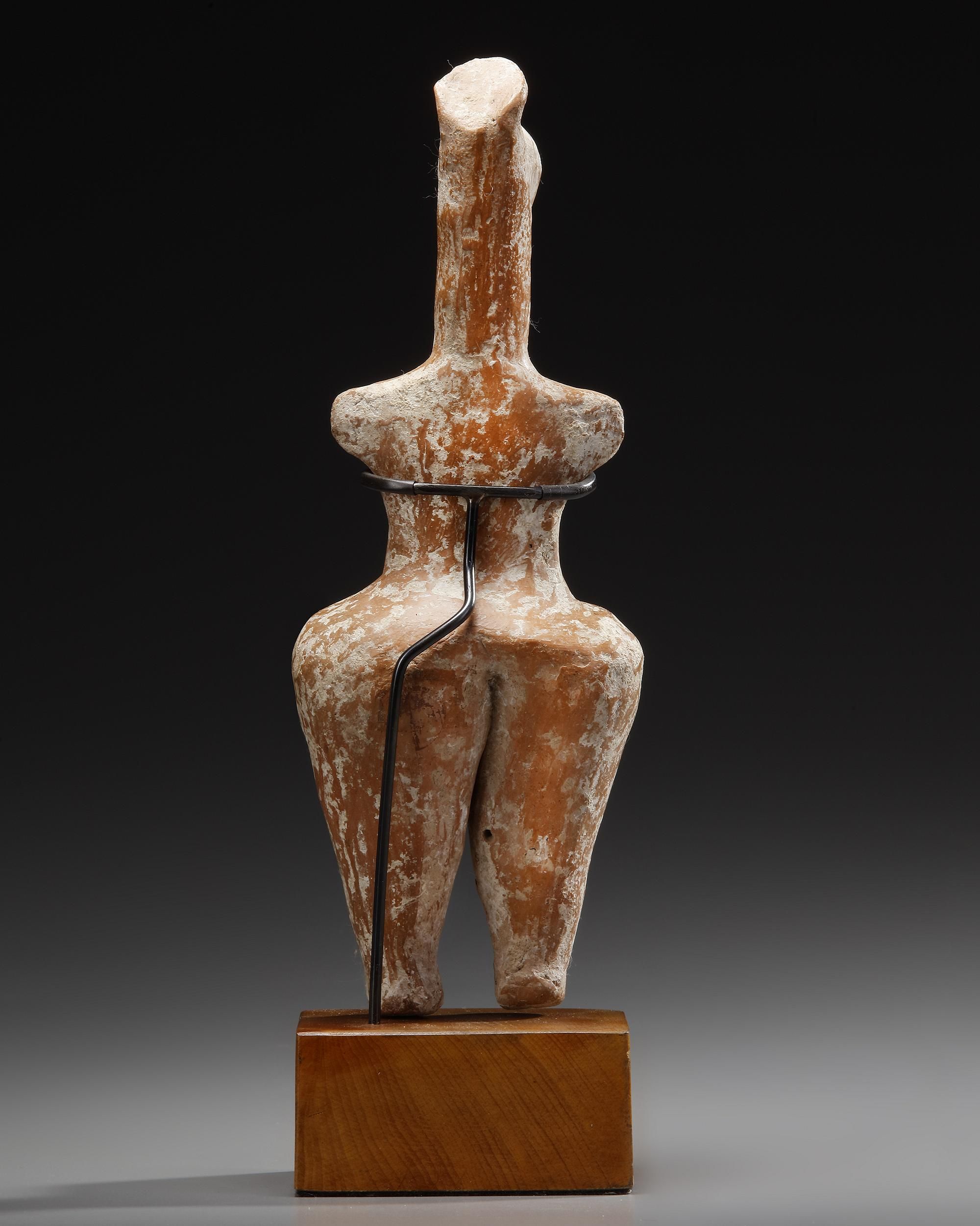 For a similar figure dating to 1200-1000 B.C., see P. D'Amore, L'Argilla e il Torino, Tecniche e Tipologie vascolari Iraniche dal Periodo del Ferro all'età dell'Impero, Sasanide, Rome, 1999, no. 104. pp. 81-84. P. D'Amore notes that the use of such figures is unknown, though a ritualistic and perhaps funerary function can be presumed.