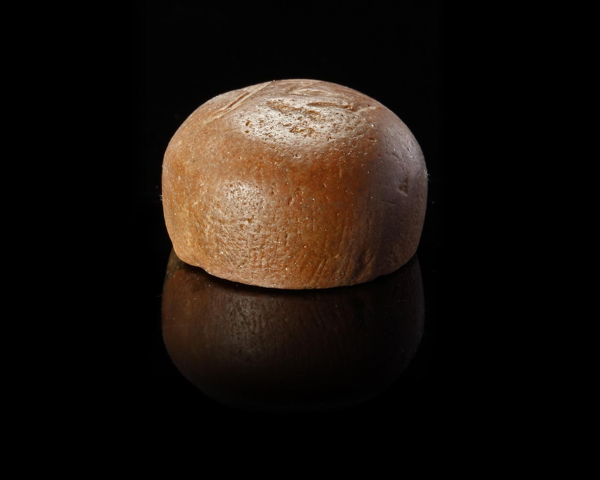 A hard limestone engraved with an Aramaic inscription which is Sh’K’L weight. It will be one shekel weight. 20 mm. diam., 12 mm. height 8.10 grams.