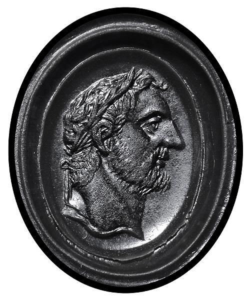 A red carnelian intaglio with bust of the emperor Antoninus Pius. Set in a modern ring. Size: USA 8, Europe 17. Weight: 9.60 grams.