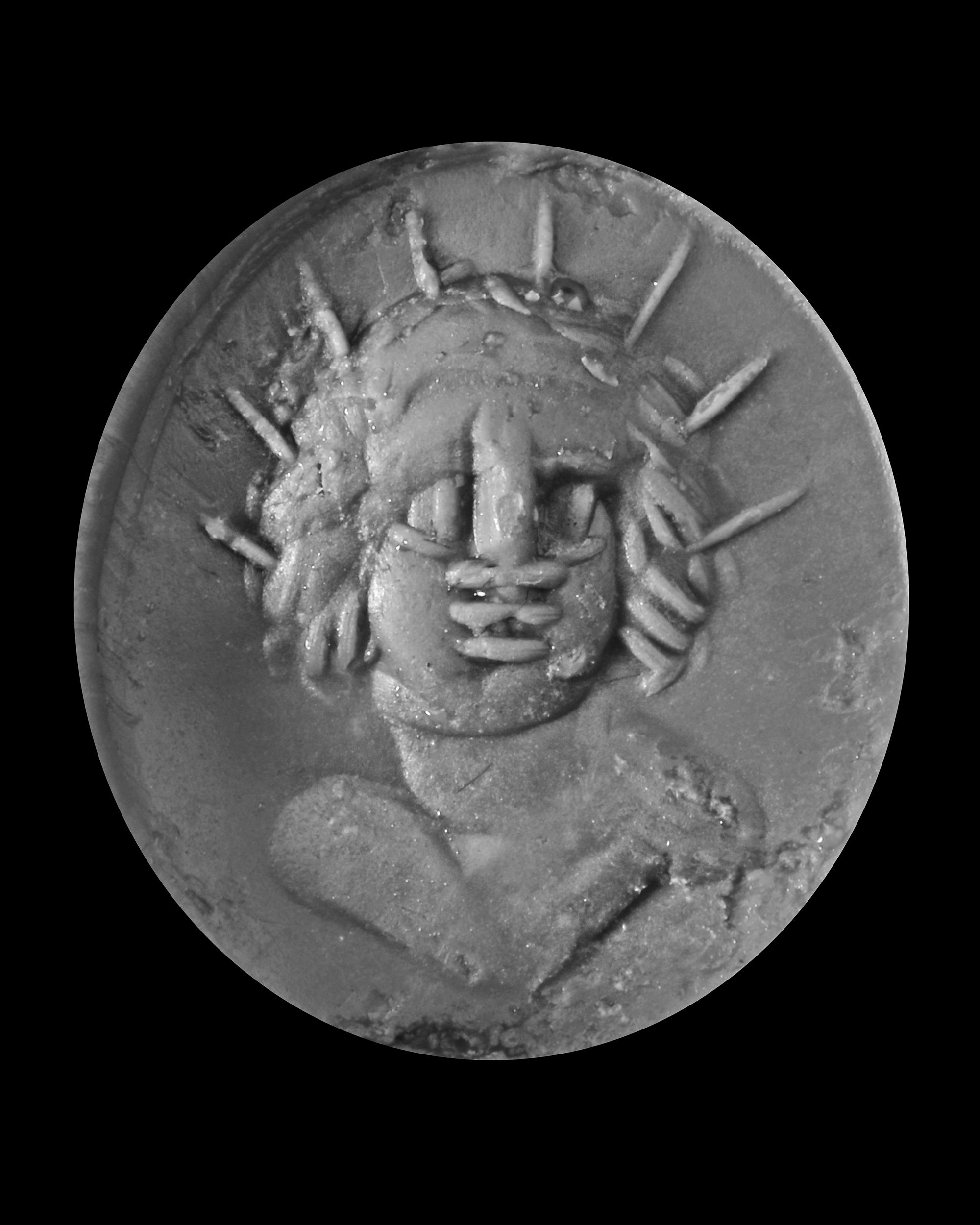 A charming intaglio showing an almost frontal view of the view of Sol. His face slightly turning to the right while his shoulders point to the fact that his body is turning left. It would be tempting to believe that this was a miniature representation of the Colossus at Rhodes, copies of which were circulated widely, even though the original had crumbled at least 250 years before this stone was made.