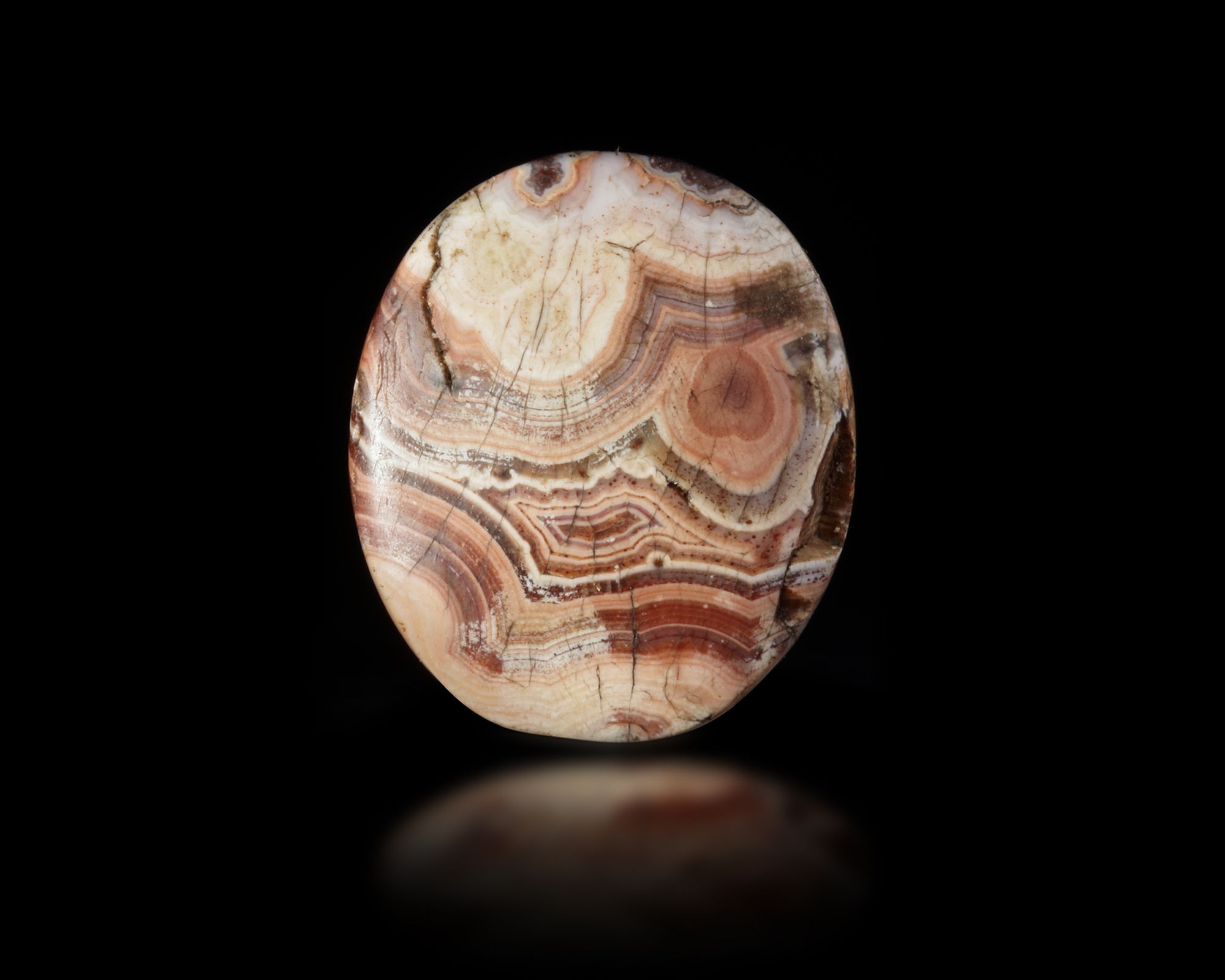 22 mm x 18 mm. Banded agate, a little oxidized. Greco-Persian c 475 B.C.