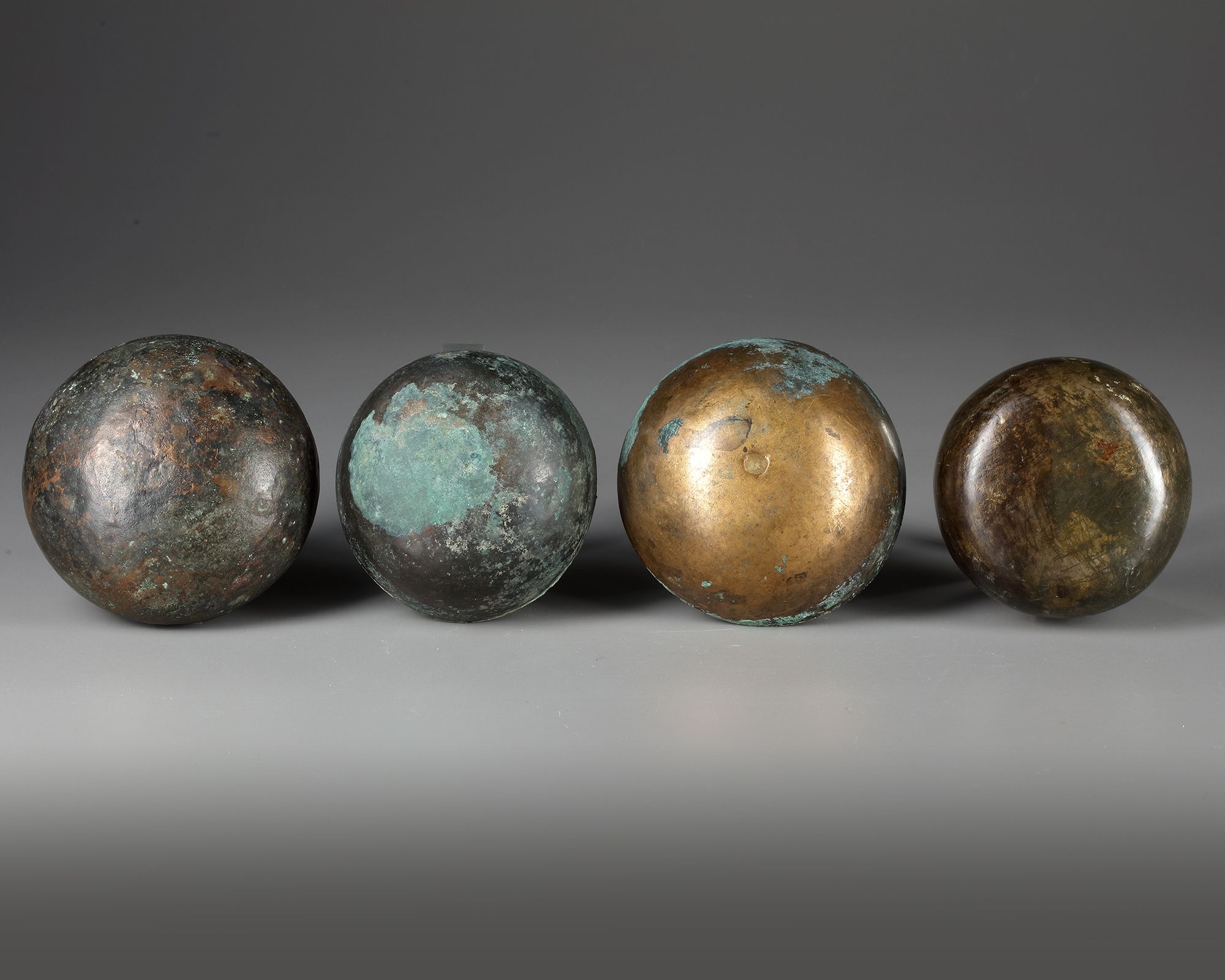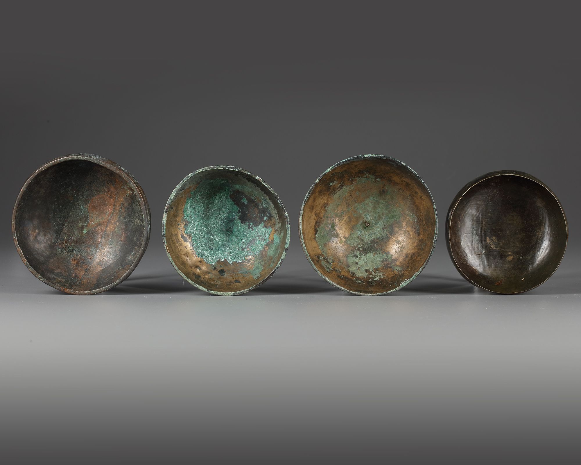 Four bronze bowls, Hellenistic, without decoration. Diameter: 13, 13, 12 and 11 cm.