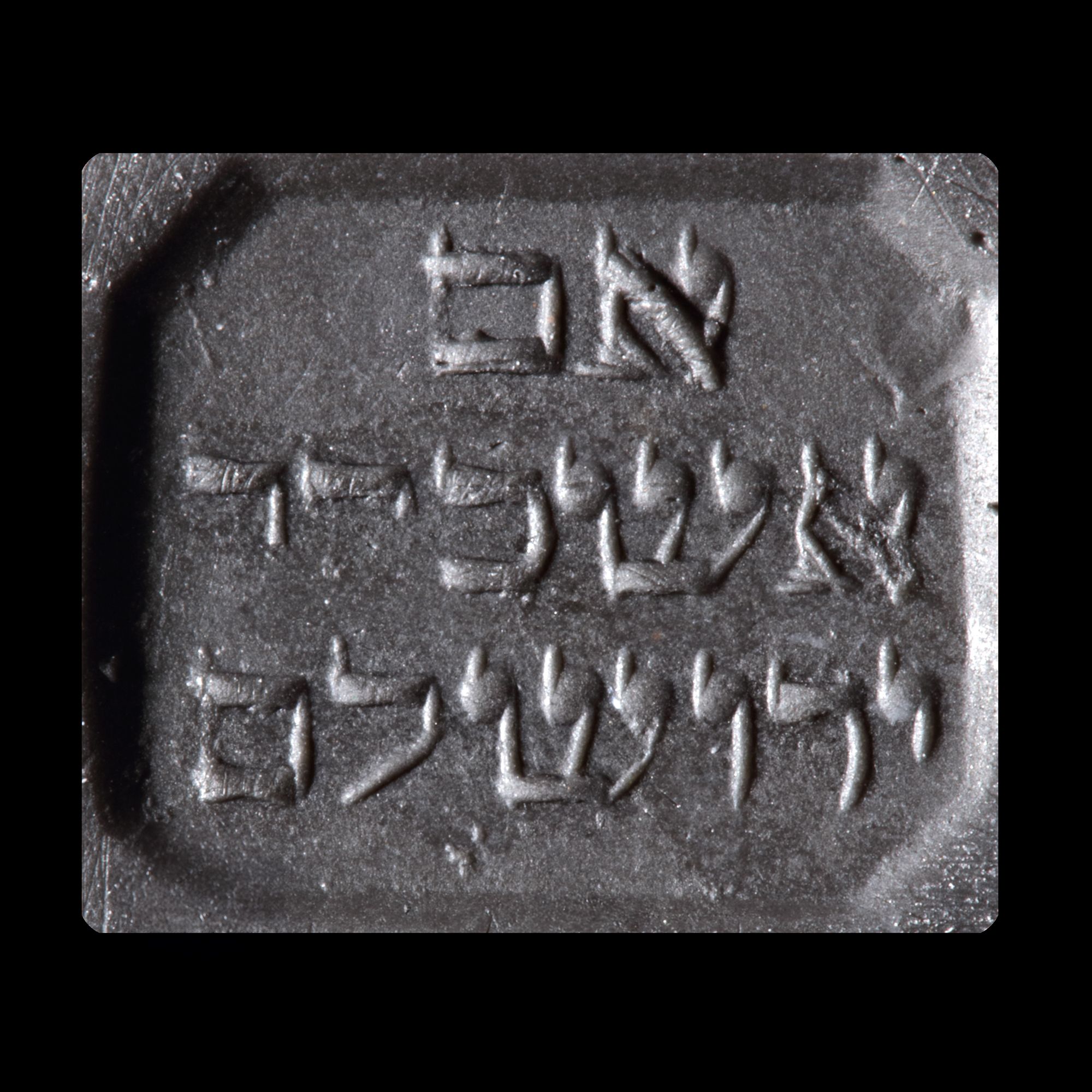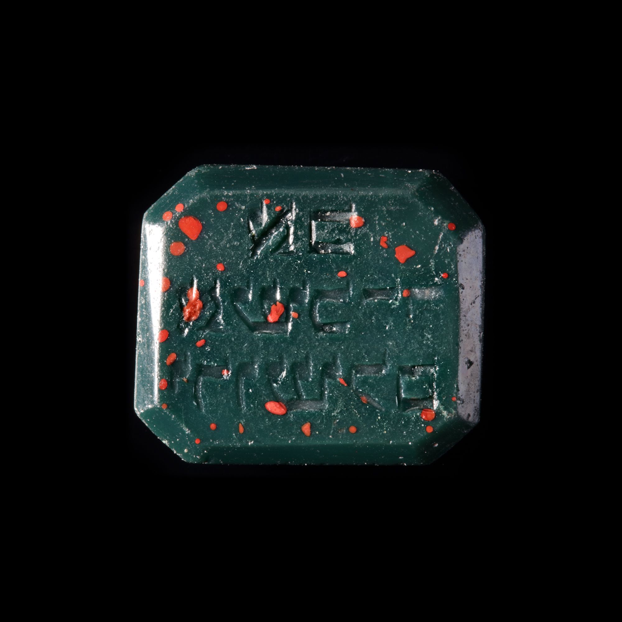 An octagonal bloodstone seal with a three line horizontal Hebrew inscription. The seal is for personal use and mirrors the shape of personal seals from the early Ottoman Empire. The inscription is the exclamation ' If I forget you, Jerusalem!'.