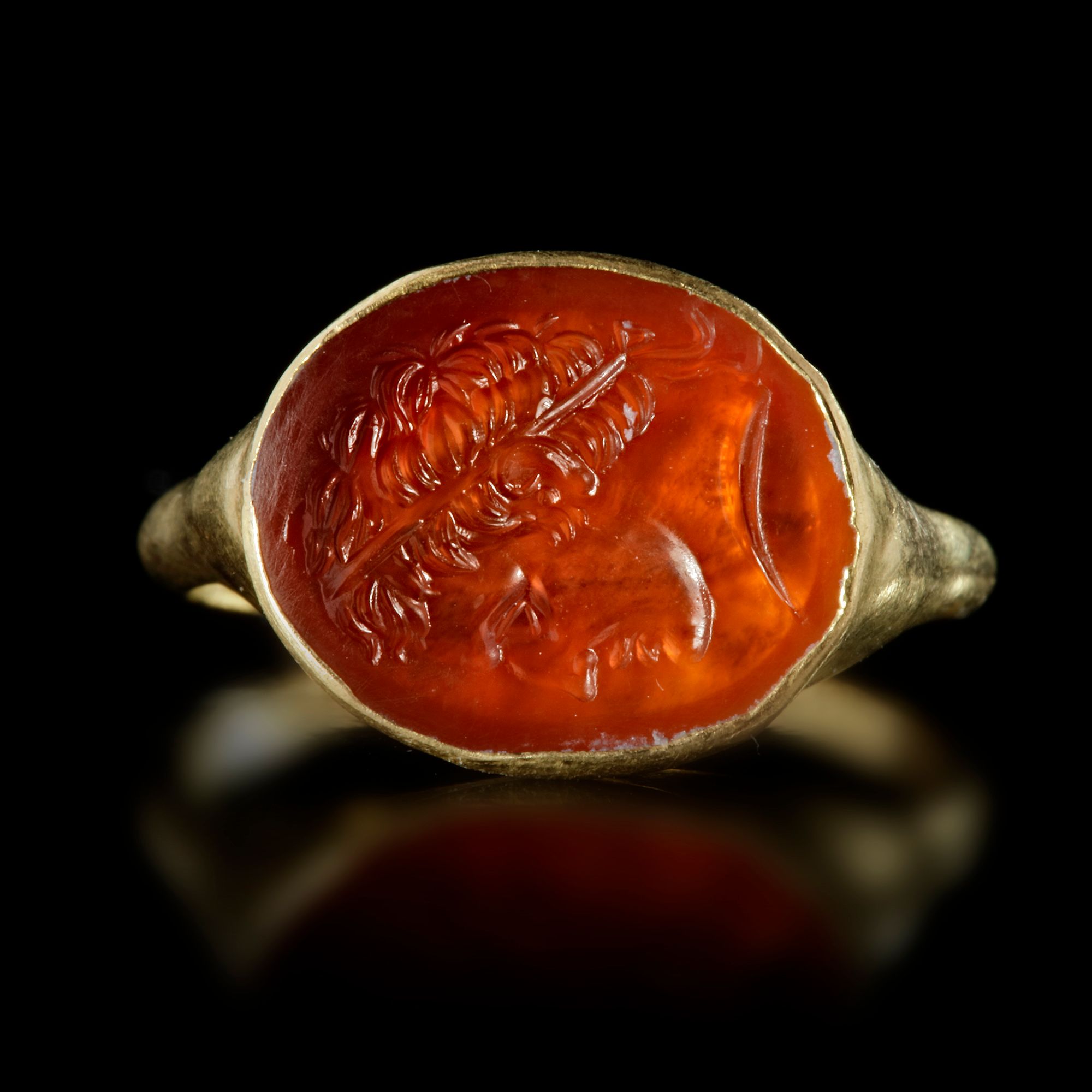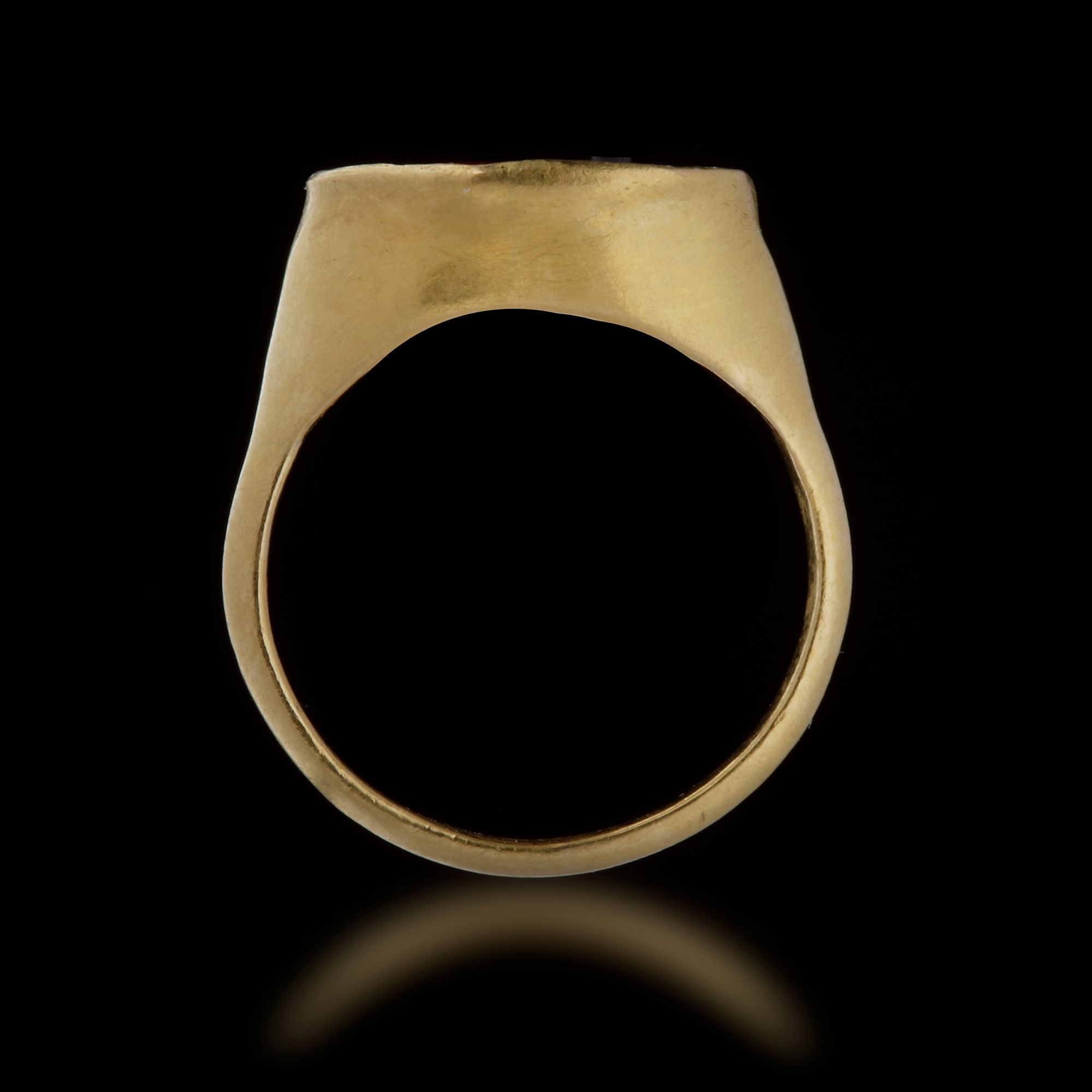 A hollow gold ring with an carnelian intaglio of a Hellenistic ruler ( Seleucid or Ptolemaic? ) wearing a diadem. A finely rendered portrait of a Hellenistic ruler.