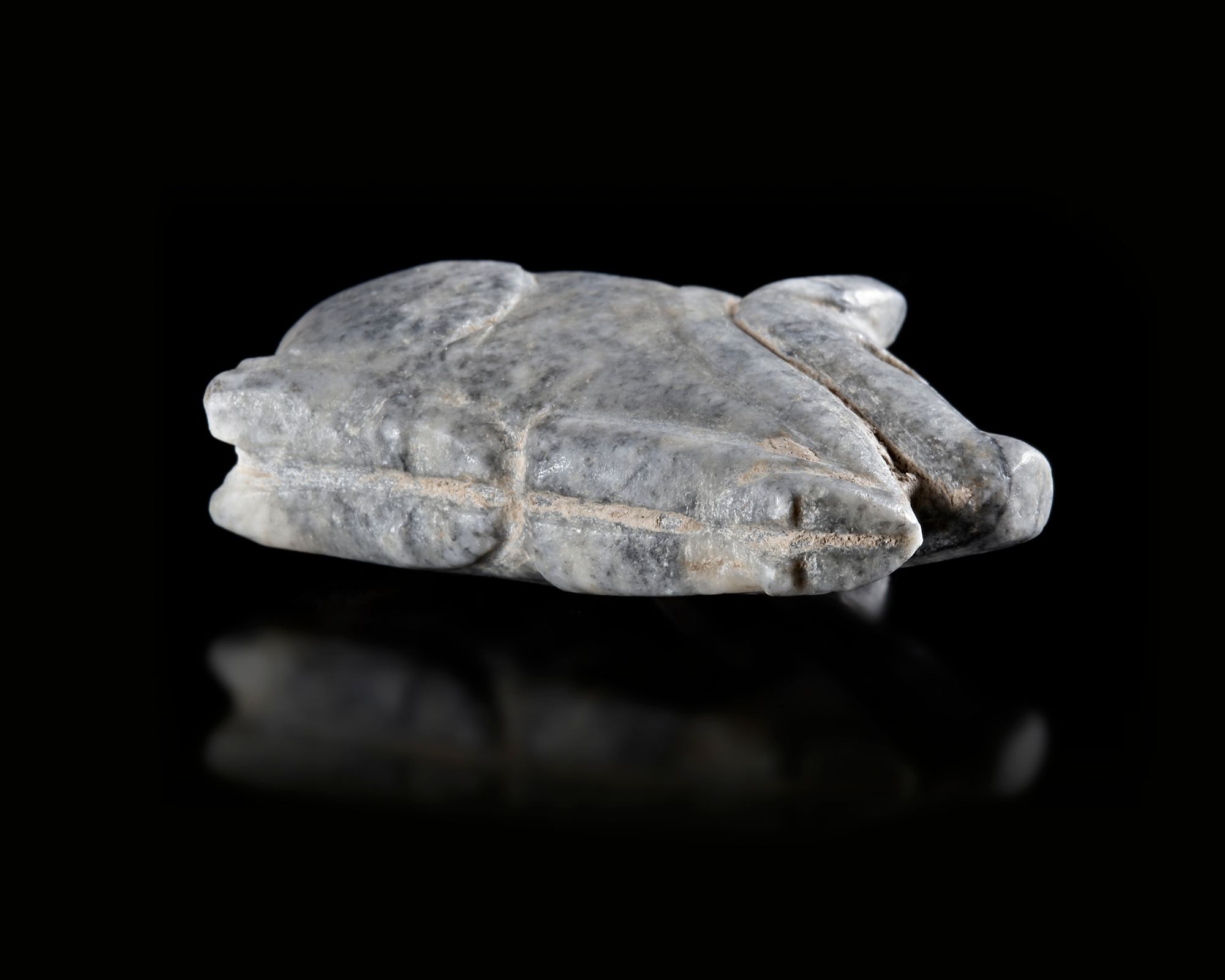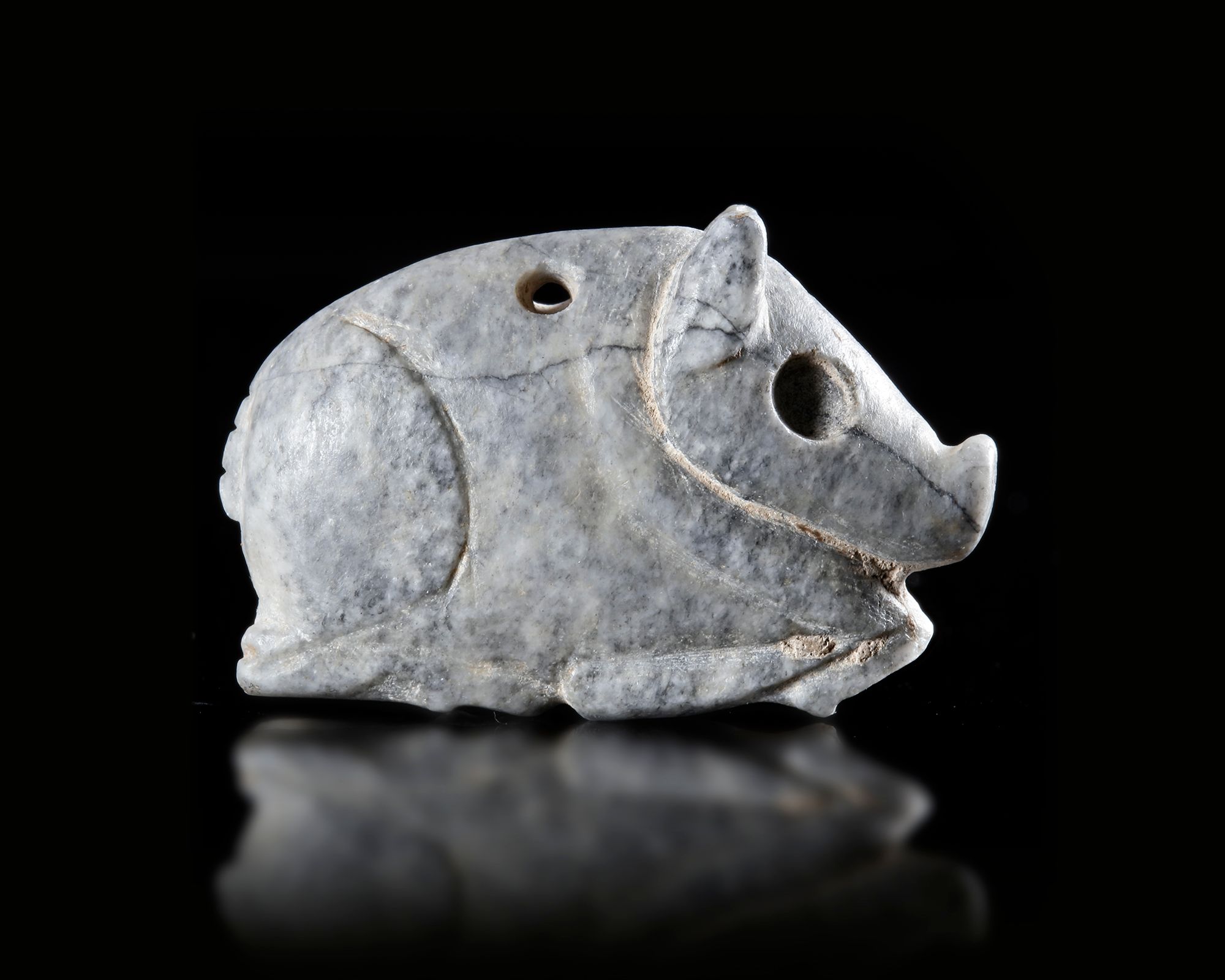 Lot 38A RECLINING BOAR AMULET IN VARIEGATED GREY CALCITE, 3000-2000 BC
