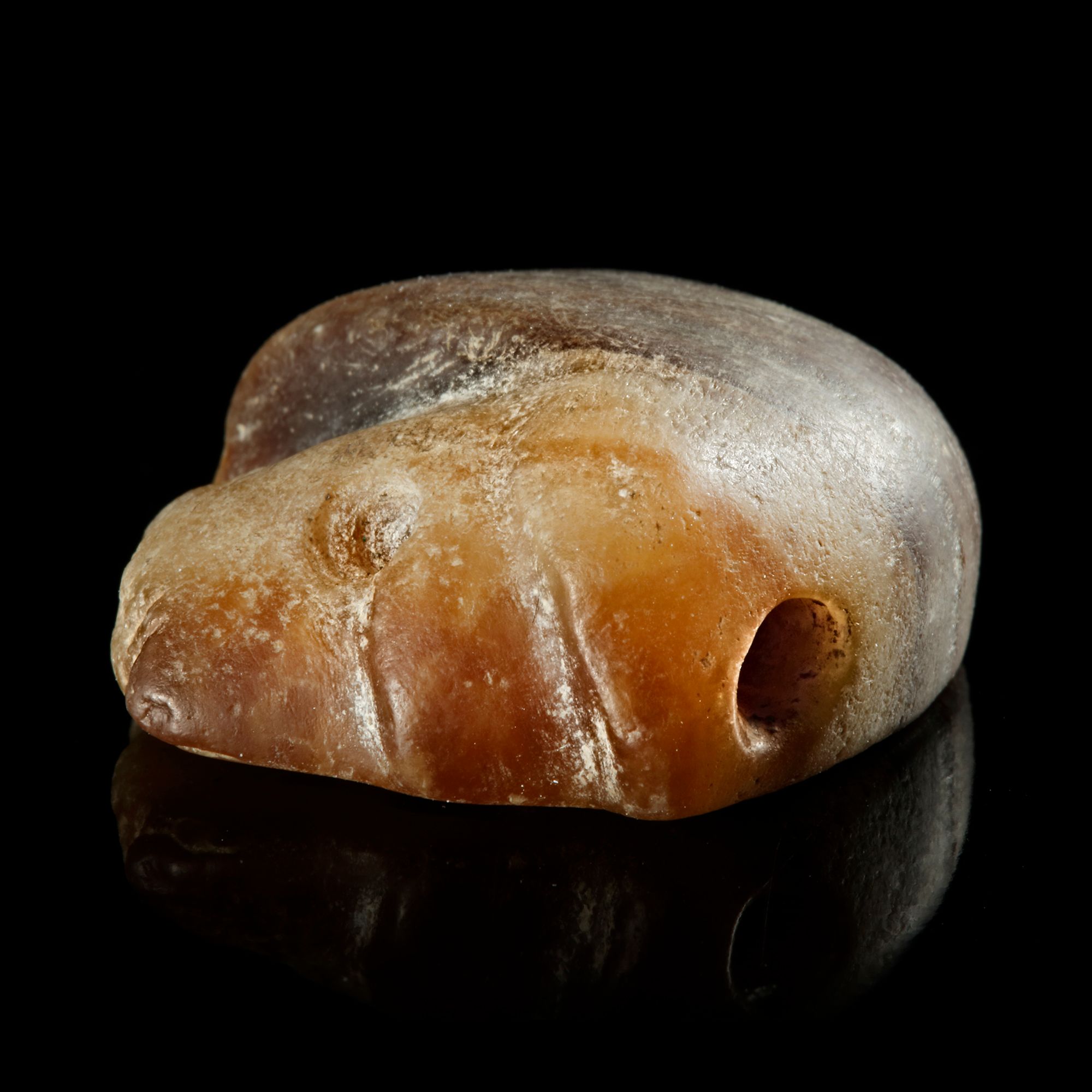 Lot 386A STAMP SEAL IN THE FORM OF A LION'S HEAD IN BANDED CALCITE, 3RD MILLENNIUM BC