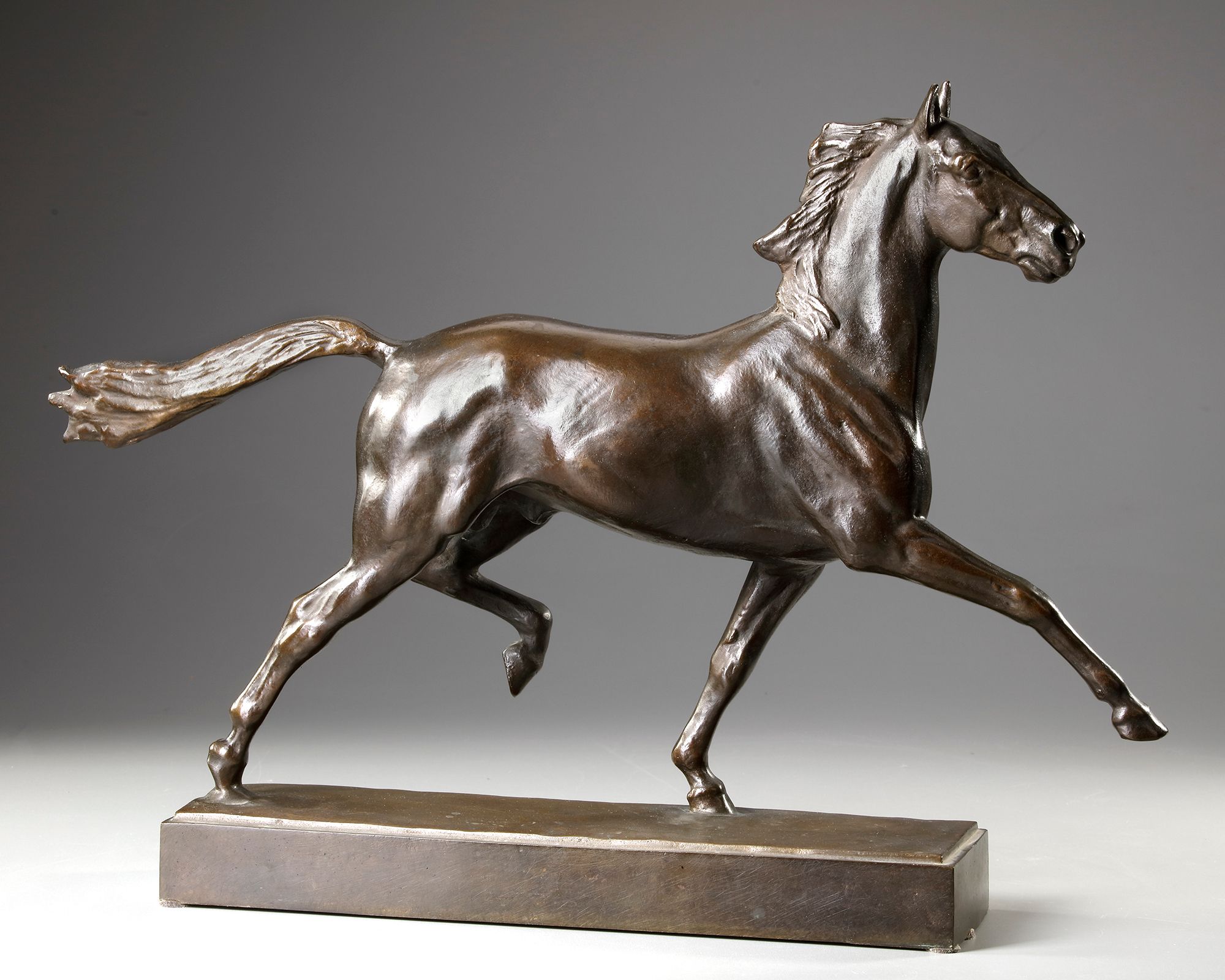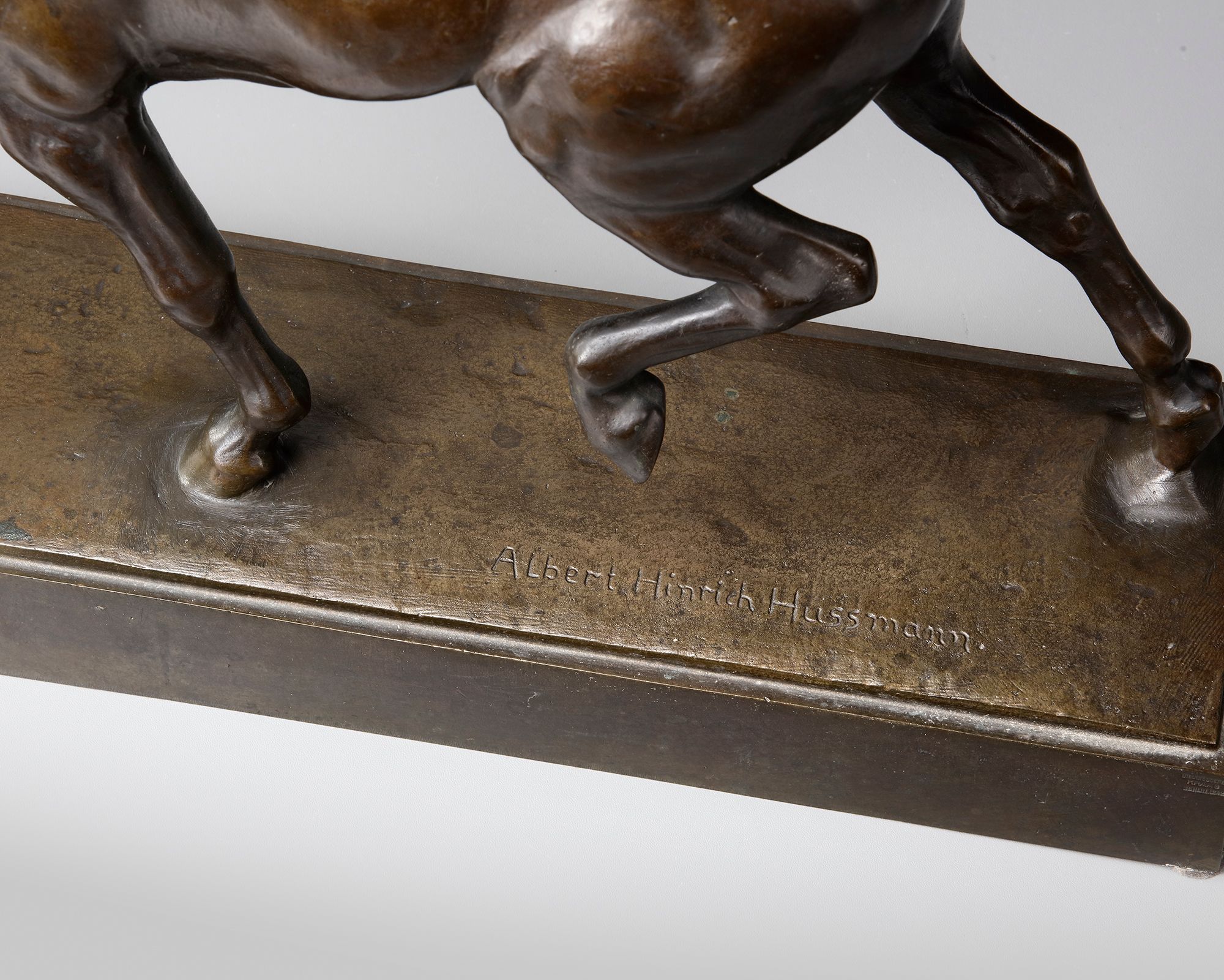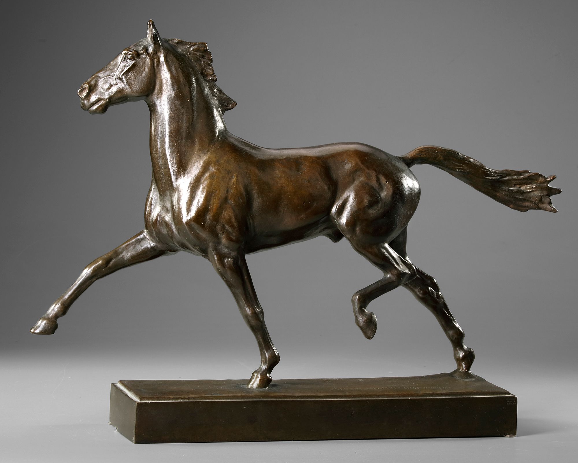 Set on a rectangular bronze base, executed circa 1908, signed at the base. Height 42 cm. Length 60 cm. Base 13 by 40 cm.