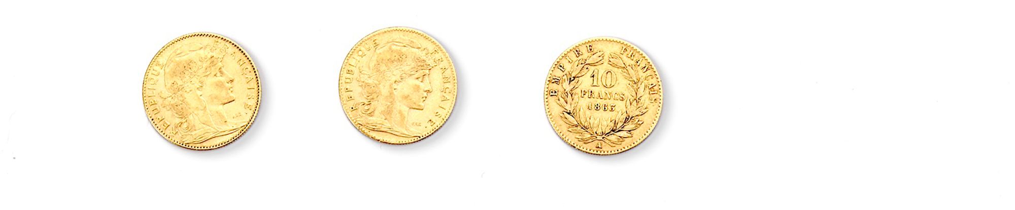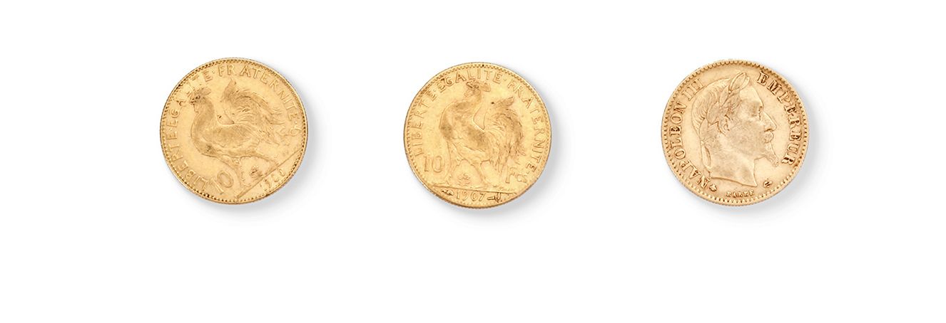 Weight: 3.2 gram each (3), 0.900 gold Total weight 6.6 grams 1863 Empire Francais 1900 and 1906 Republiqe Francais