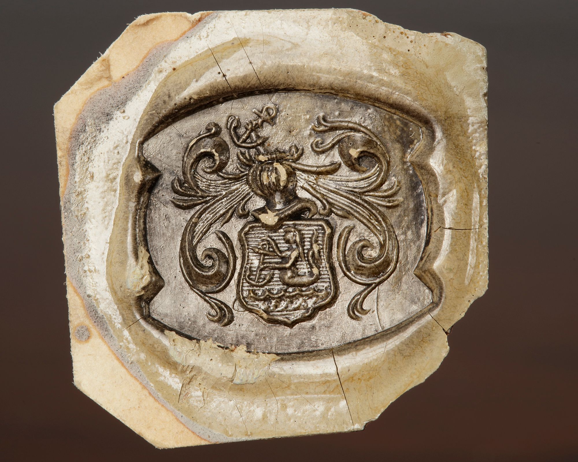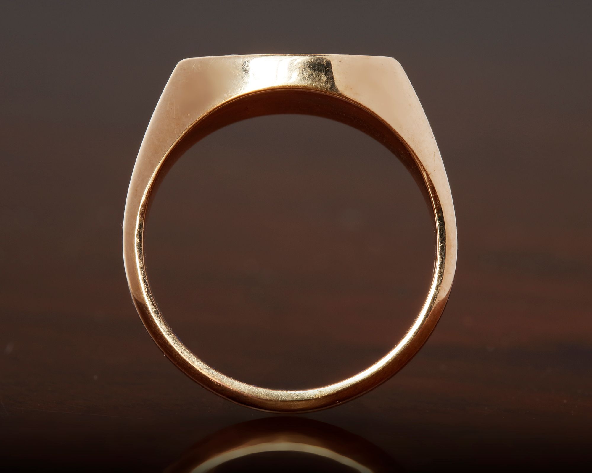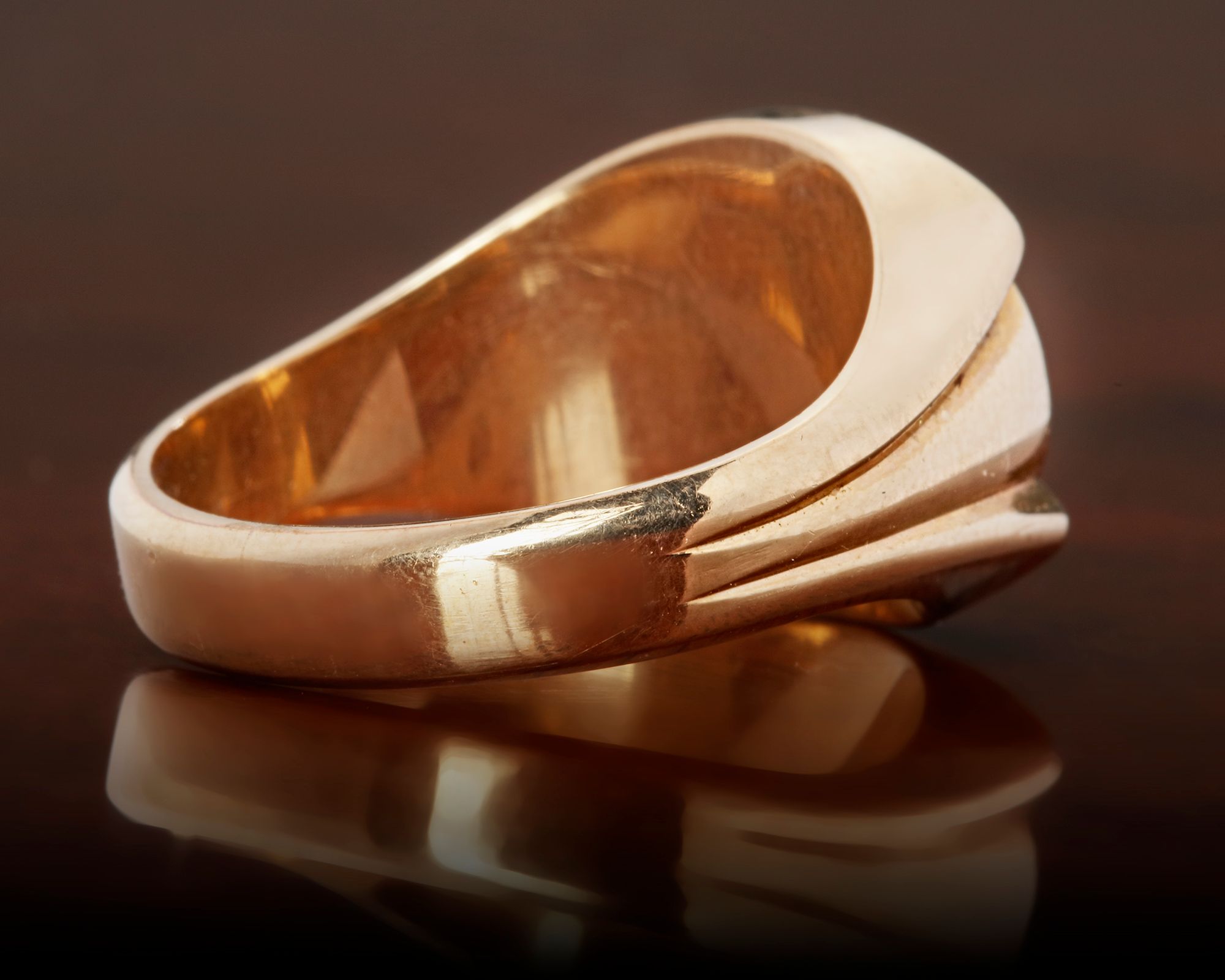 With unidentified coat of arms. Weight: 17.6 grams. Hallmarked: 585 Size: 21 mm. EU ring size: 26