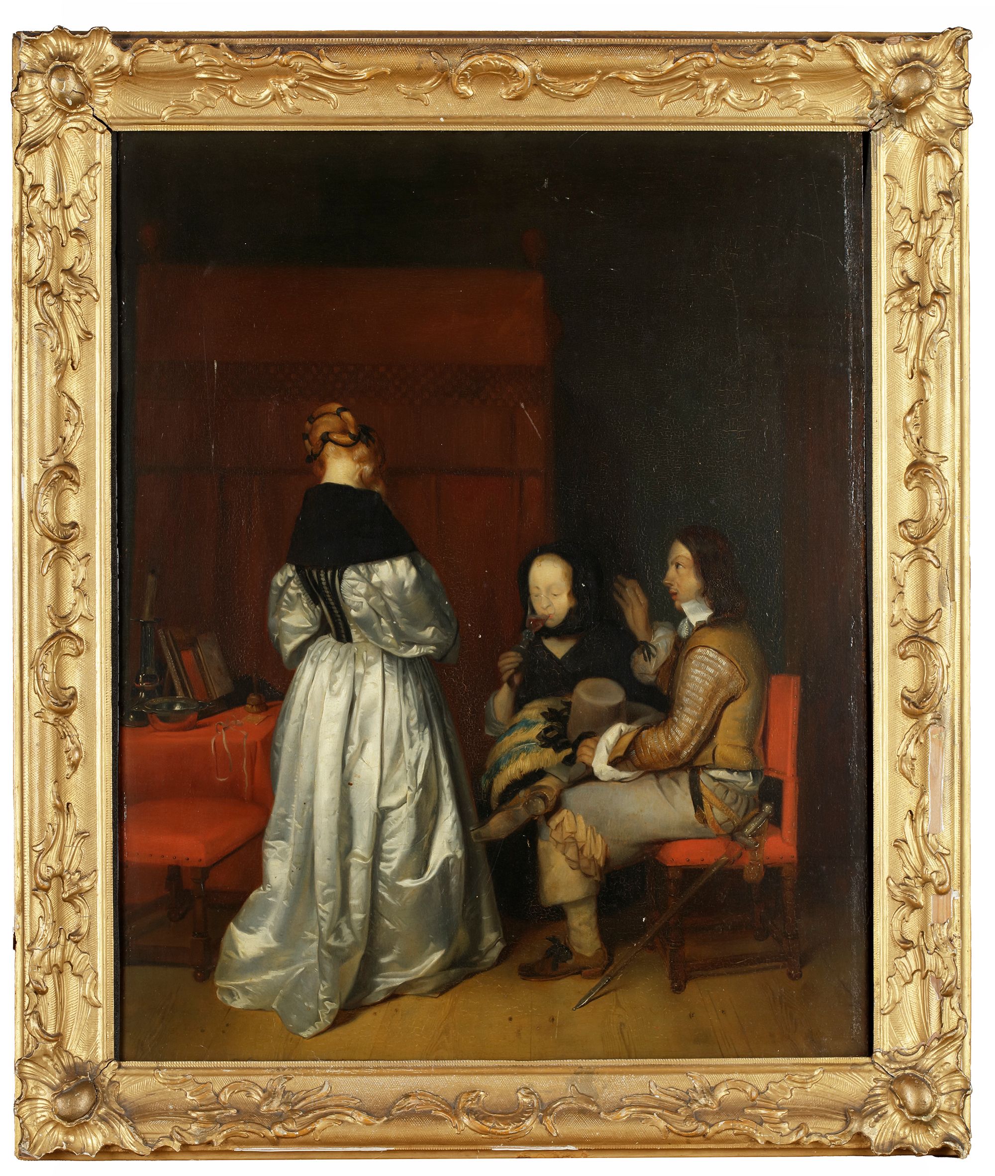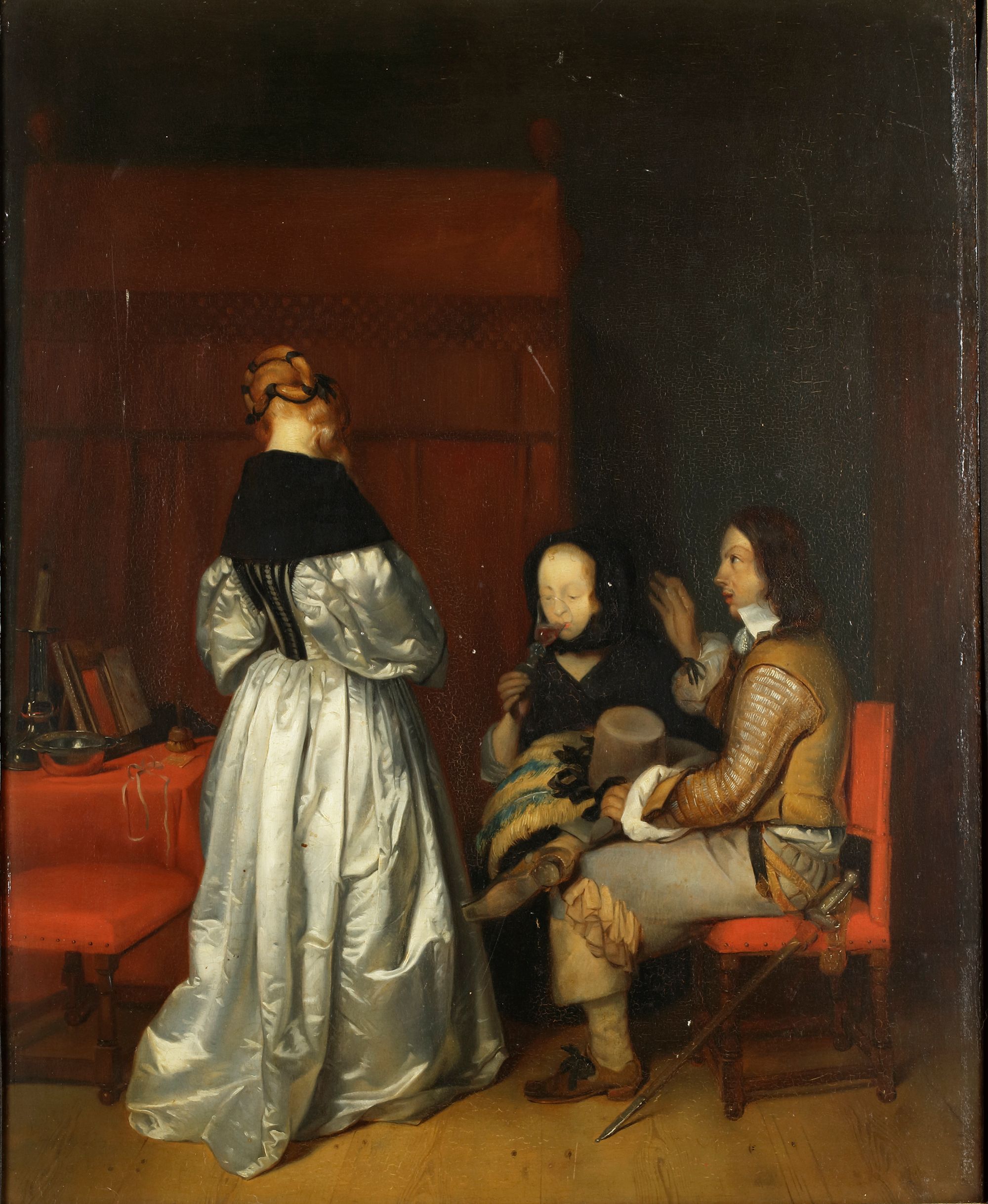 The current composition is based on a work by Gerard Terborch, 50 by 38 cm.