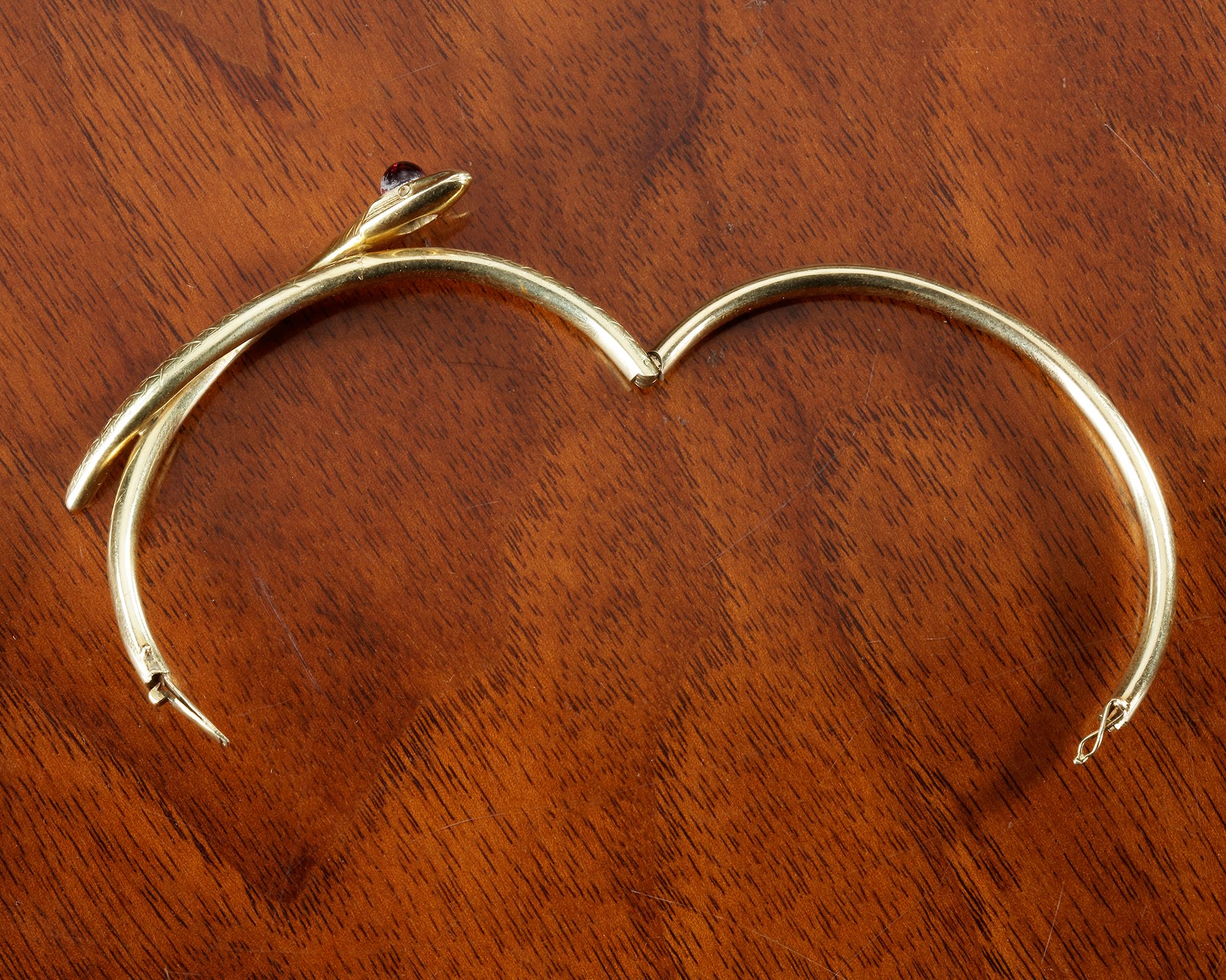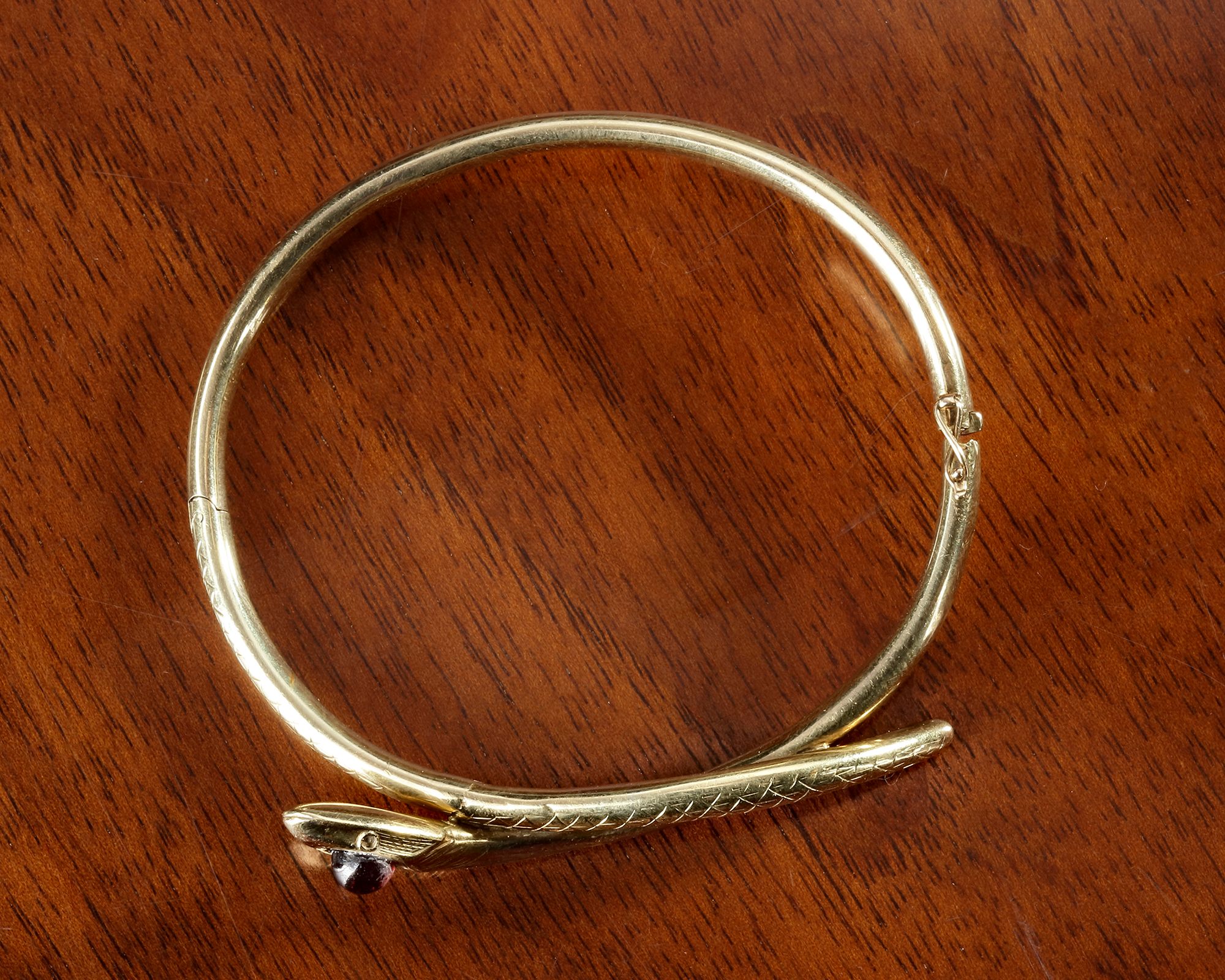Hallmarked 585/1000 Set with a large garnet Made for the Indian market. Weight: 15.3 grams.