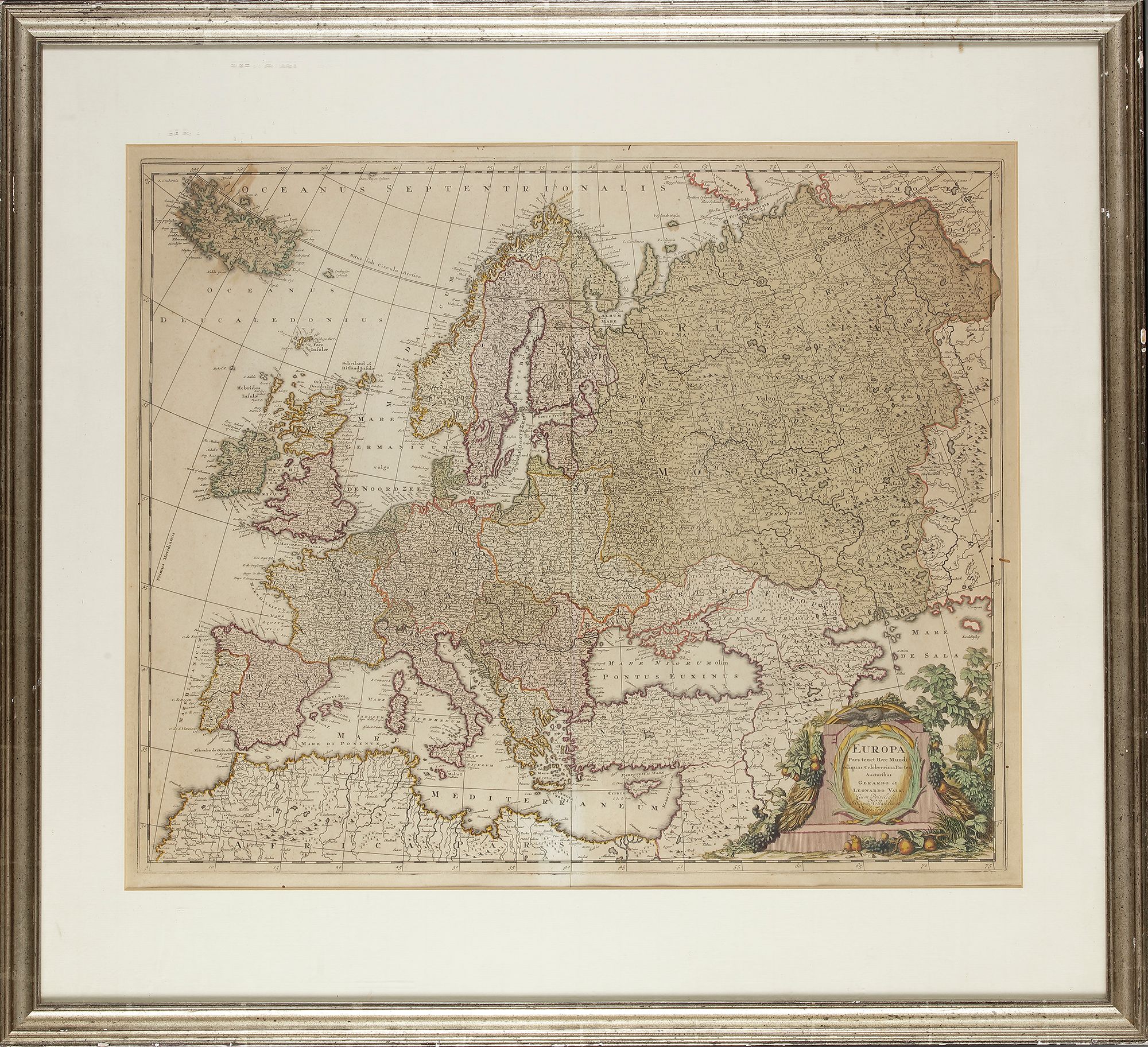 A beautifully detailed 18th-century engraved map of Europe, richly hand-colored and featuring borders, cities, and geographic features with fine precision.