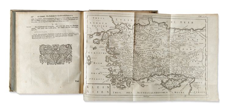 The book features: • A richly illustrated frontispiece showing classical historical themes. • A detailed title page printed in black and red ink, typical of 18th-century scholarly works. • Publication in Halle, by Johann Justinus Gebauer, 1746. 24 by 21,5 cm.