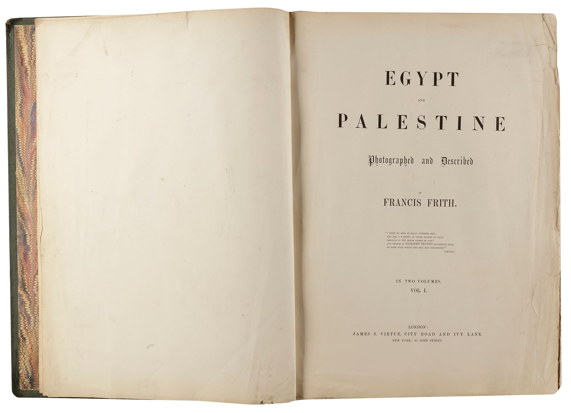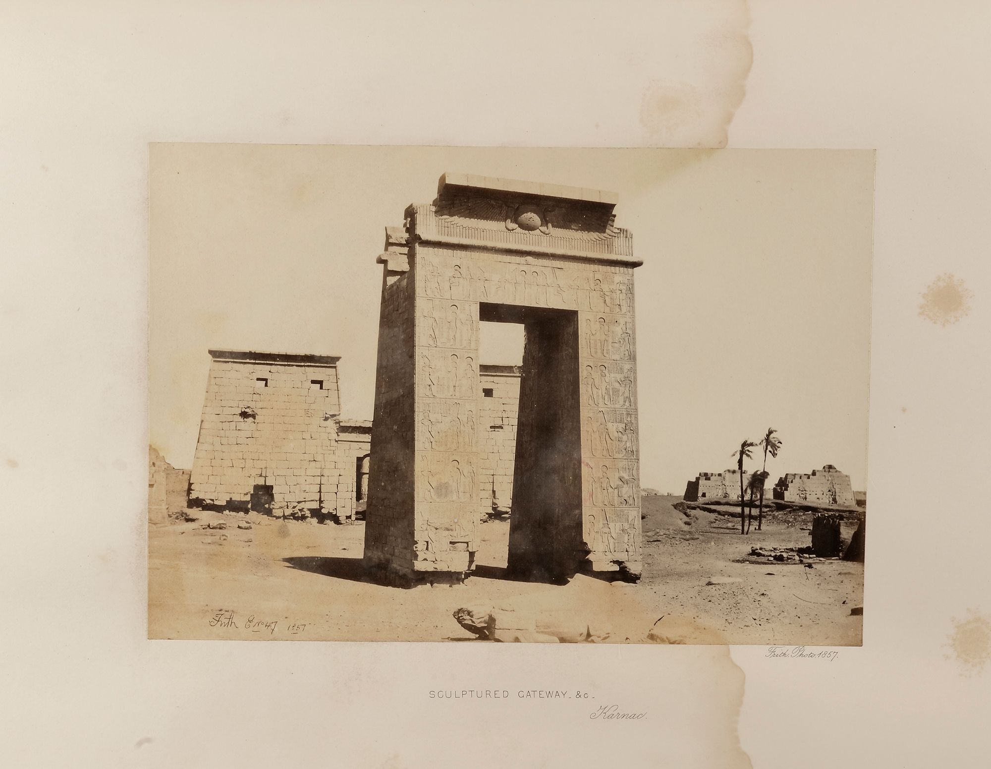 The success of these images financed Frith's next trip to Palestine, Syria, and Egypt in late 1857. He published these between 1858 and 1860. In the summer of 1859, Frith returned to Egypt, traveling up the Nile to the Fifth Cataract-farther than any earlier photographer had gone. He returned to Britain and opened his own firm in Reigate, Surrey, near London, to publish his images, as well as the work of other photographers. Frith and Company operated until 1971.