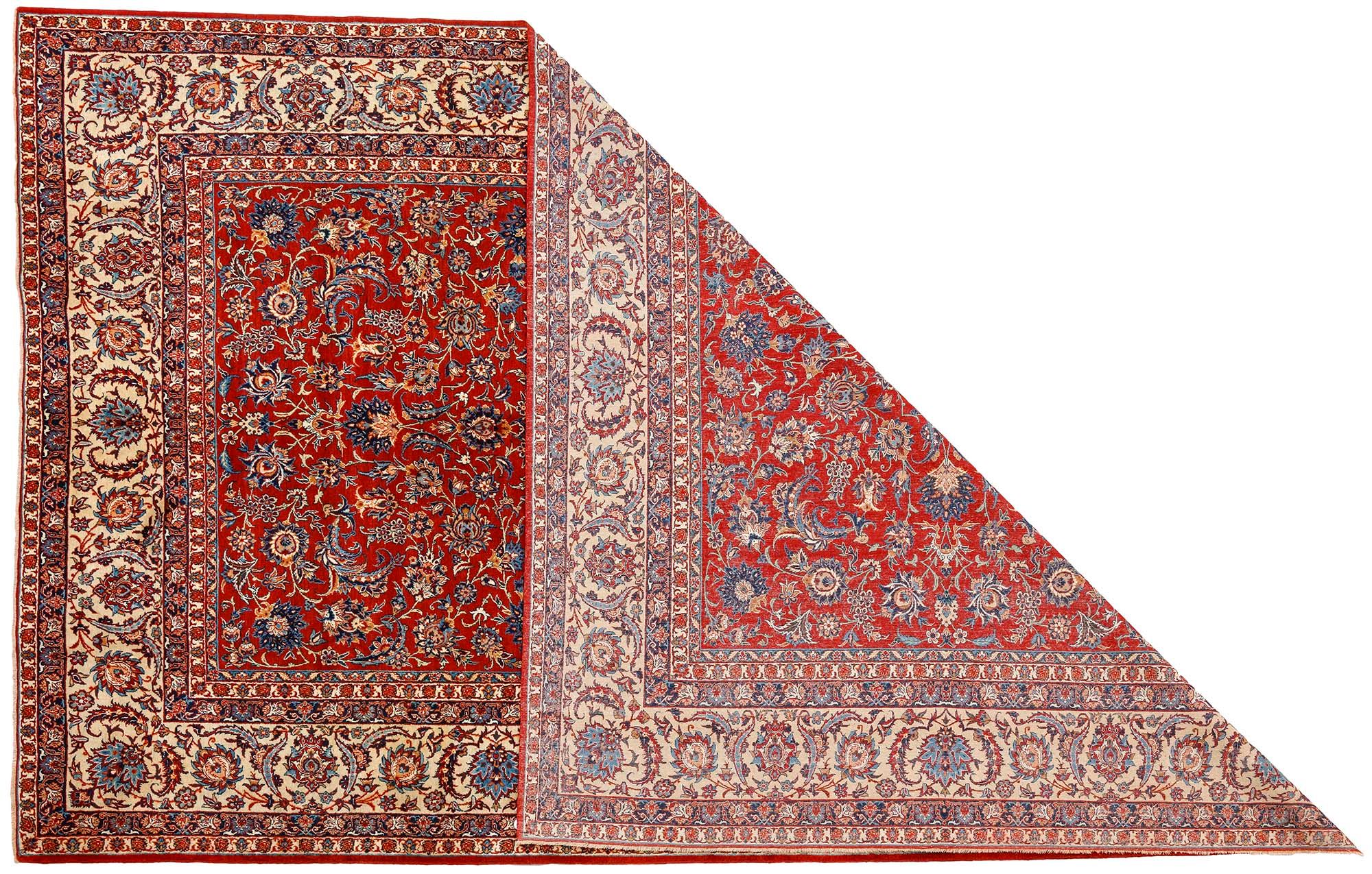 Wool on silk. Original sides and fringes. In a good condition. 345 by 216 cm.