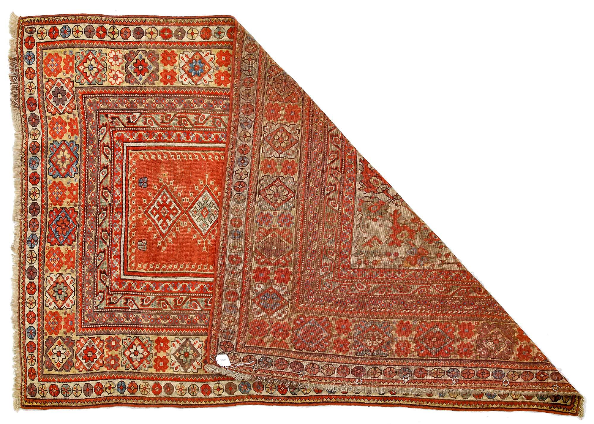 A few small repairs and one old large repair in the middle. Selvedges renewed. 167 by 115 cm.