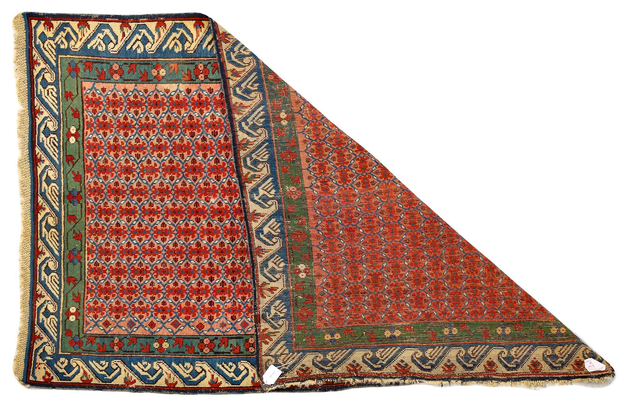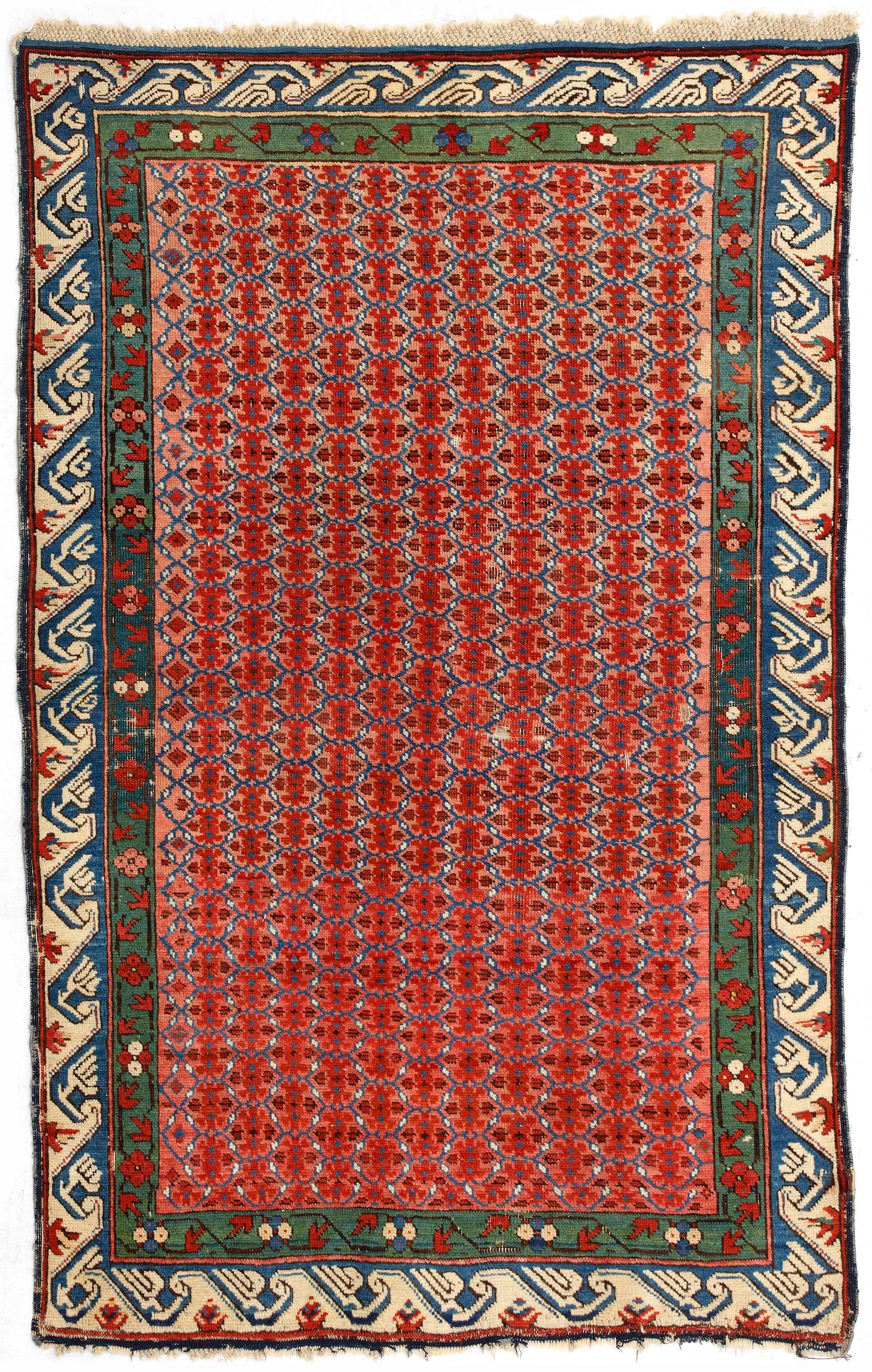 Selvedges restored. In a reasonable good condition apart from a few damaged places. 160 by 98 cm.