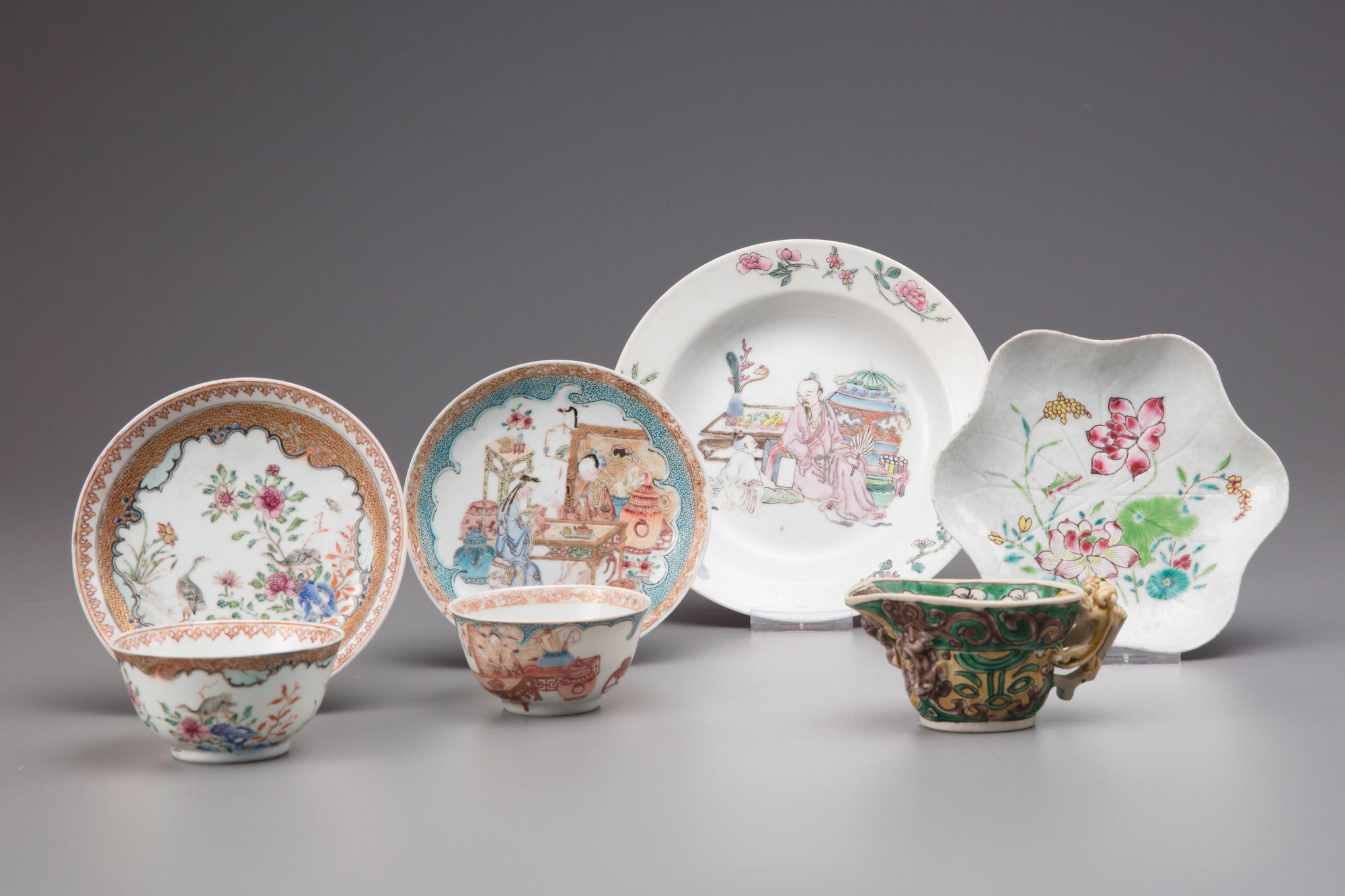 Condition: one dish restored, saucers with hairline restoration, minor fritting, sauce boat repaired.