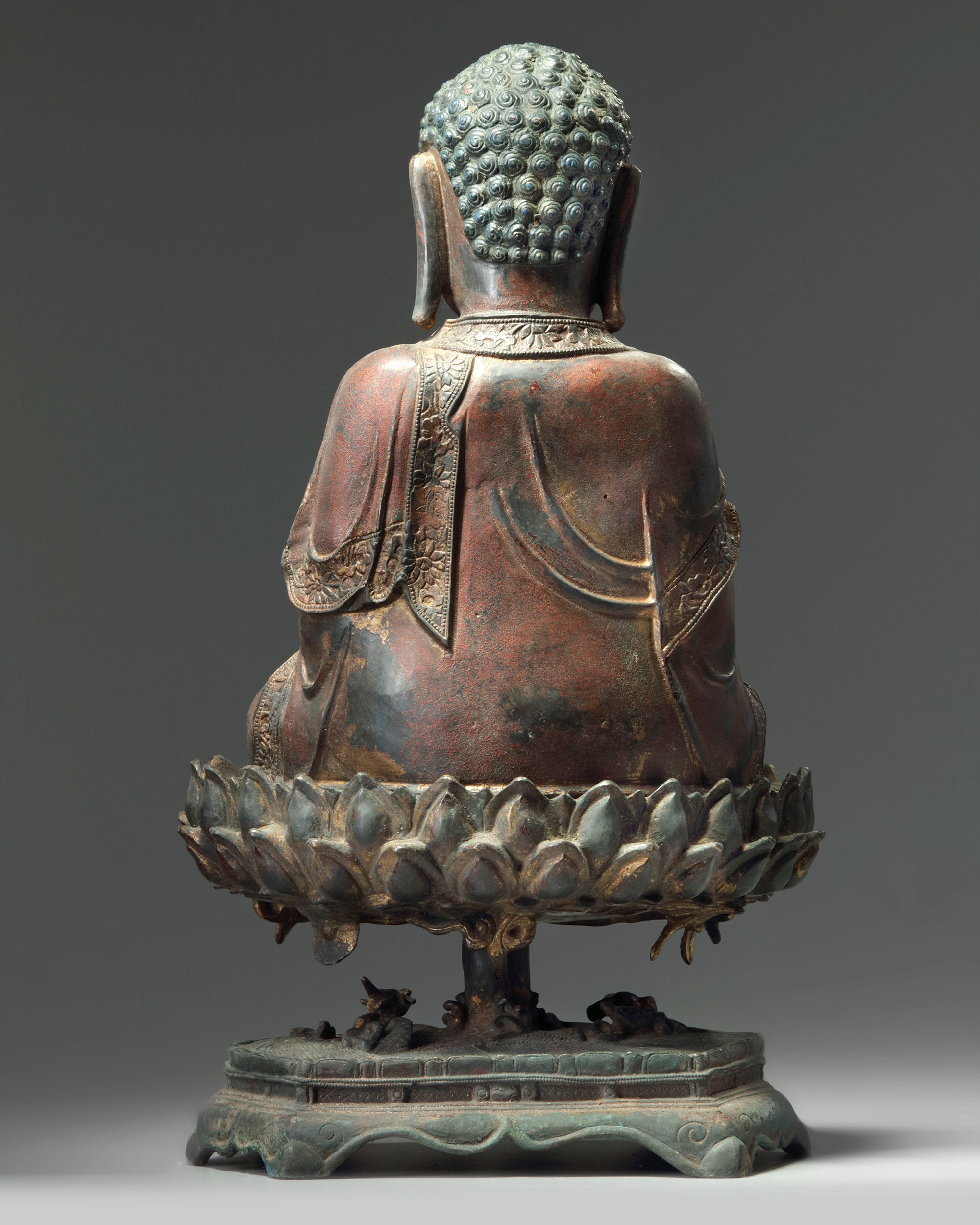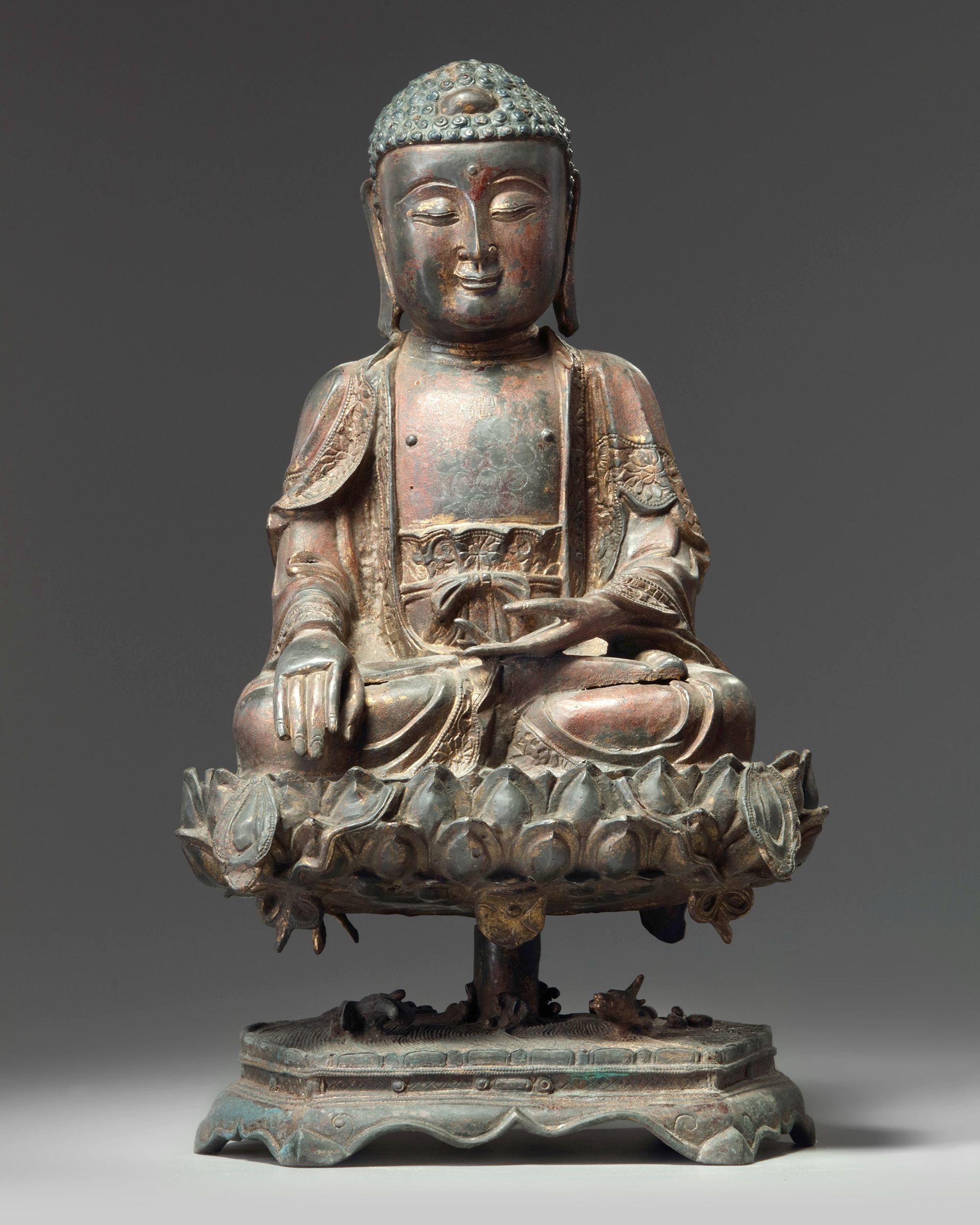 A Chinese gilt-lacquered bronze figure of Shakyamuni