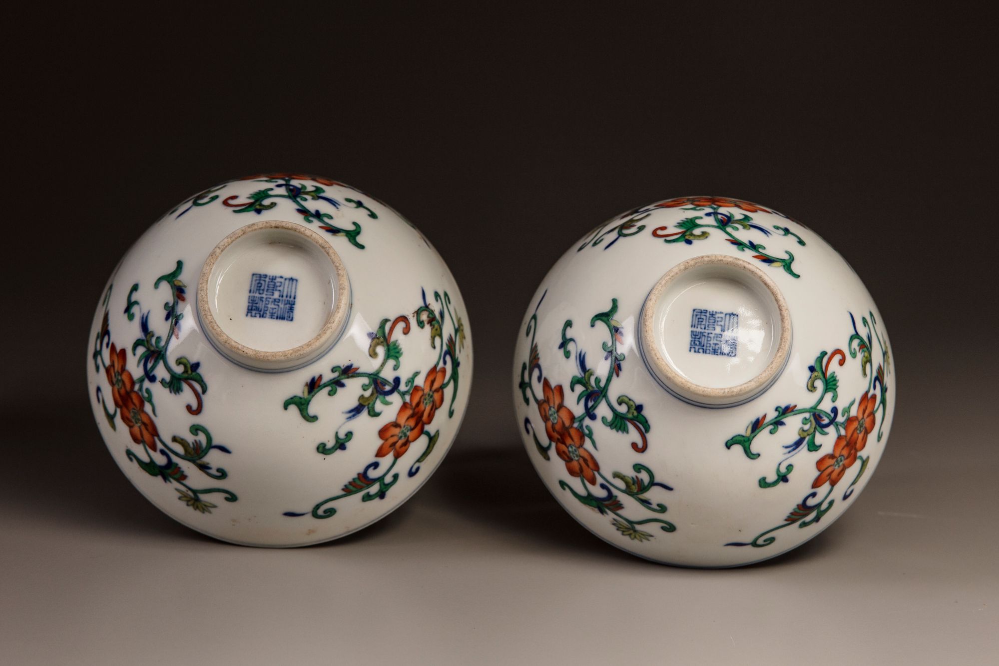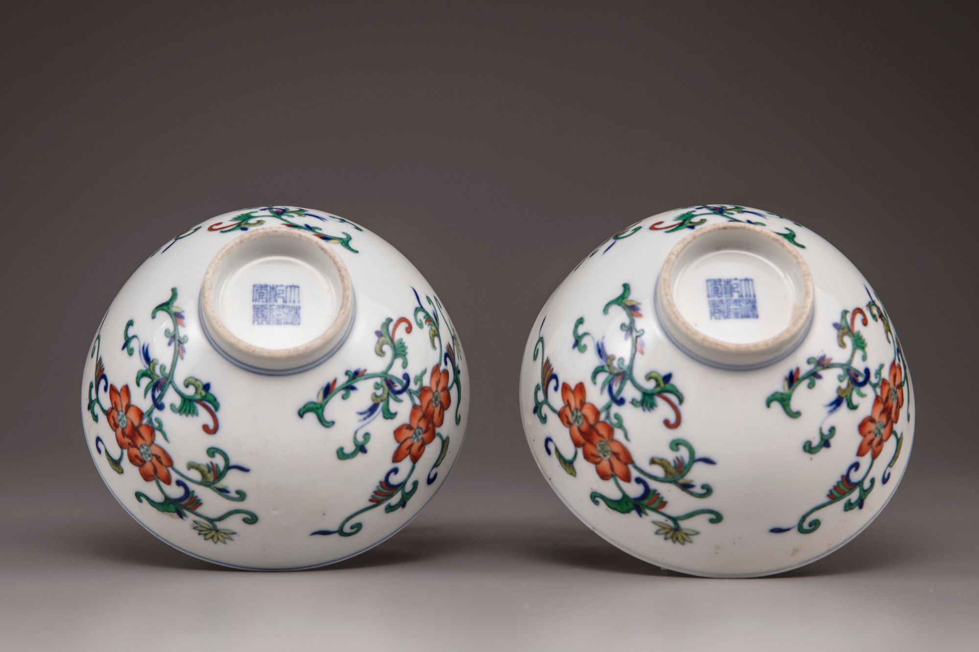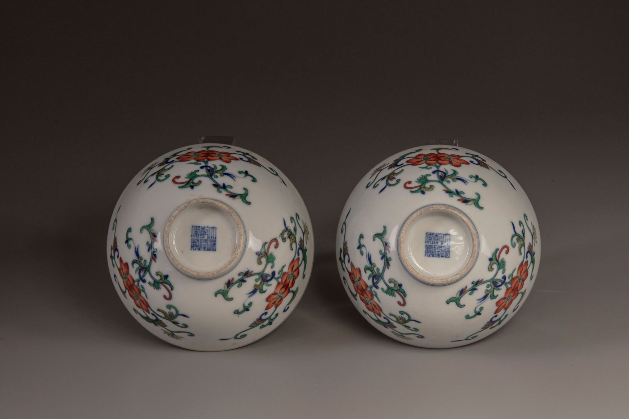 decorated in underglaze blue and overglaze enamel with three flower scrolls and marked to the base with a Qianlong seal mark.