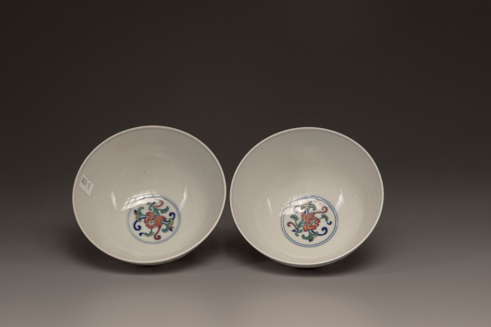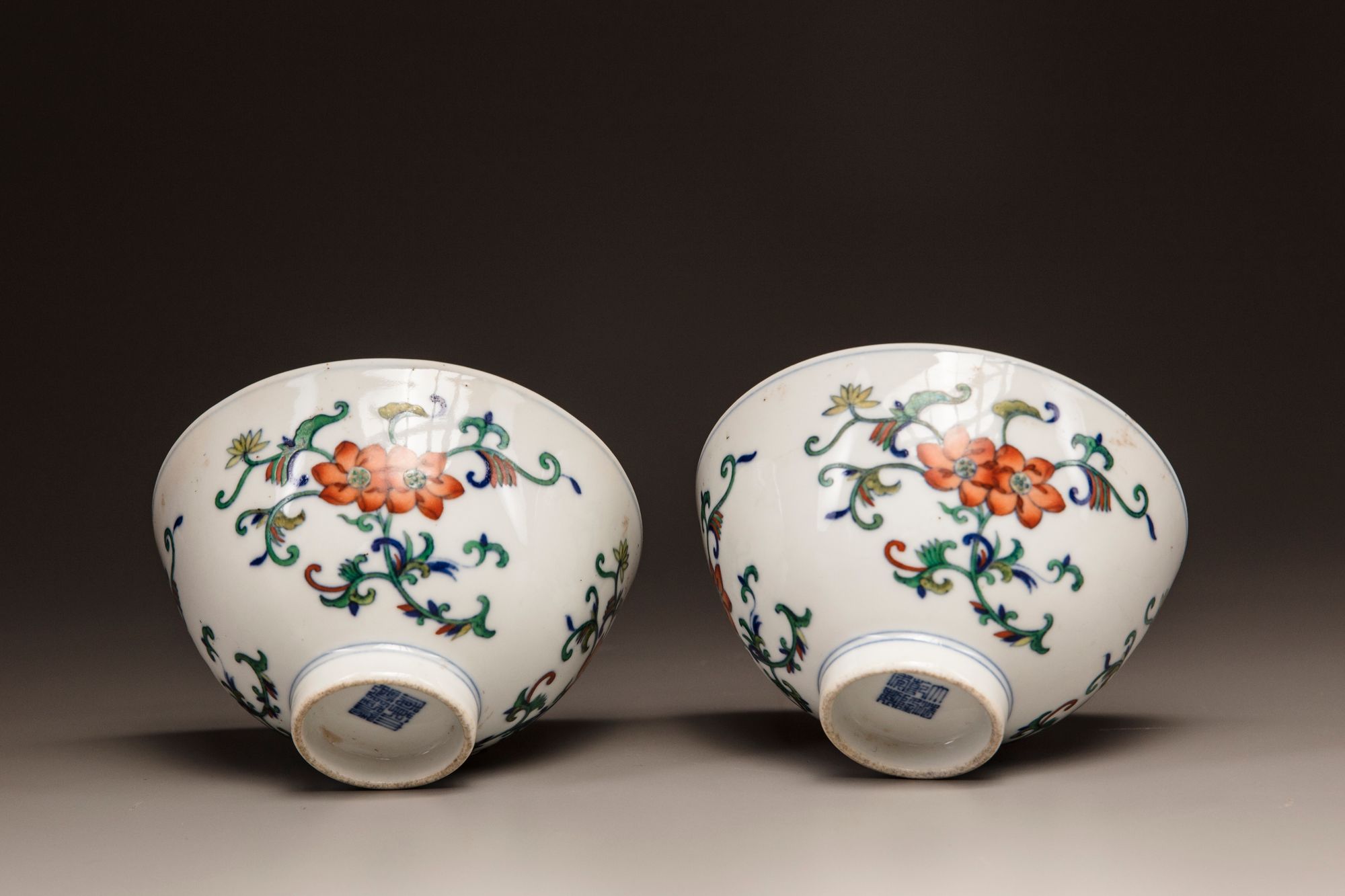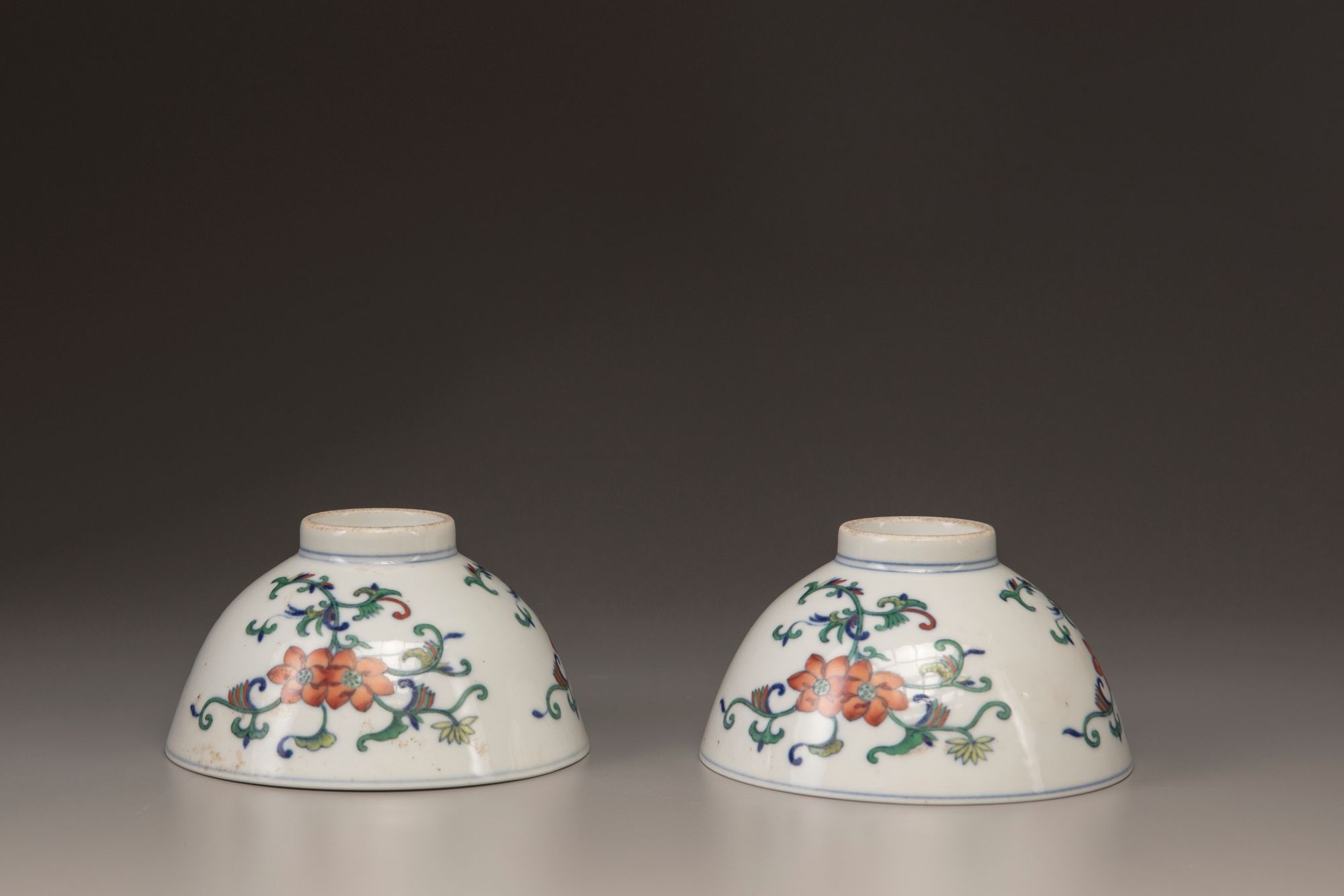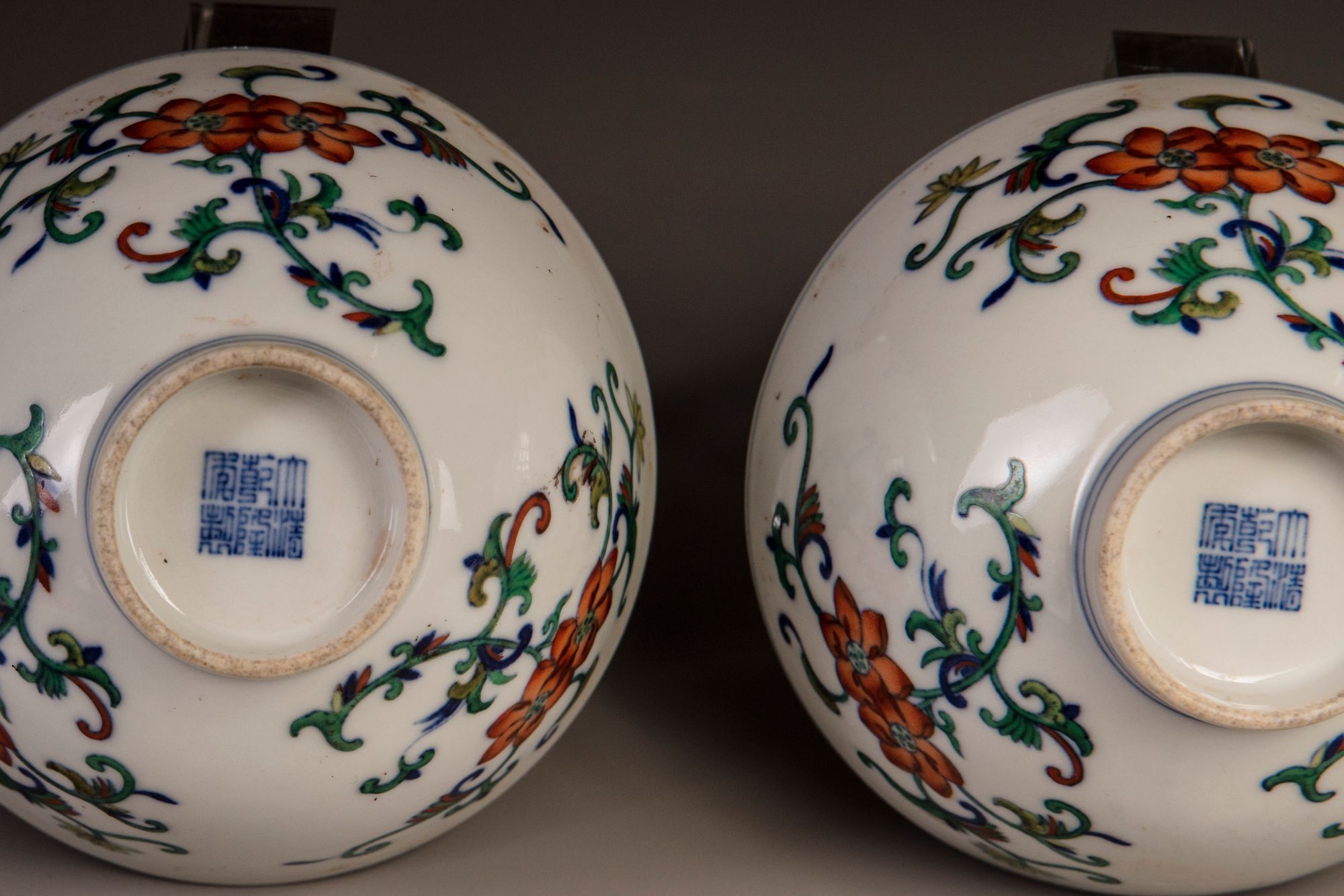 decorated in underglaze blue and overglaze enamel with three flower scrolls and marked to the base with a Qianlong seal mark.