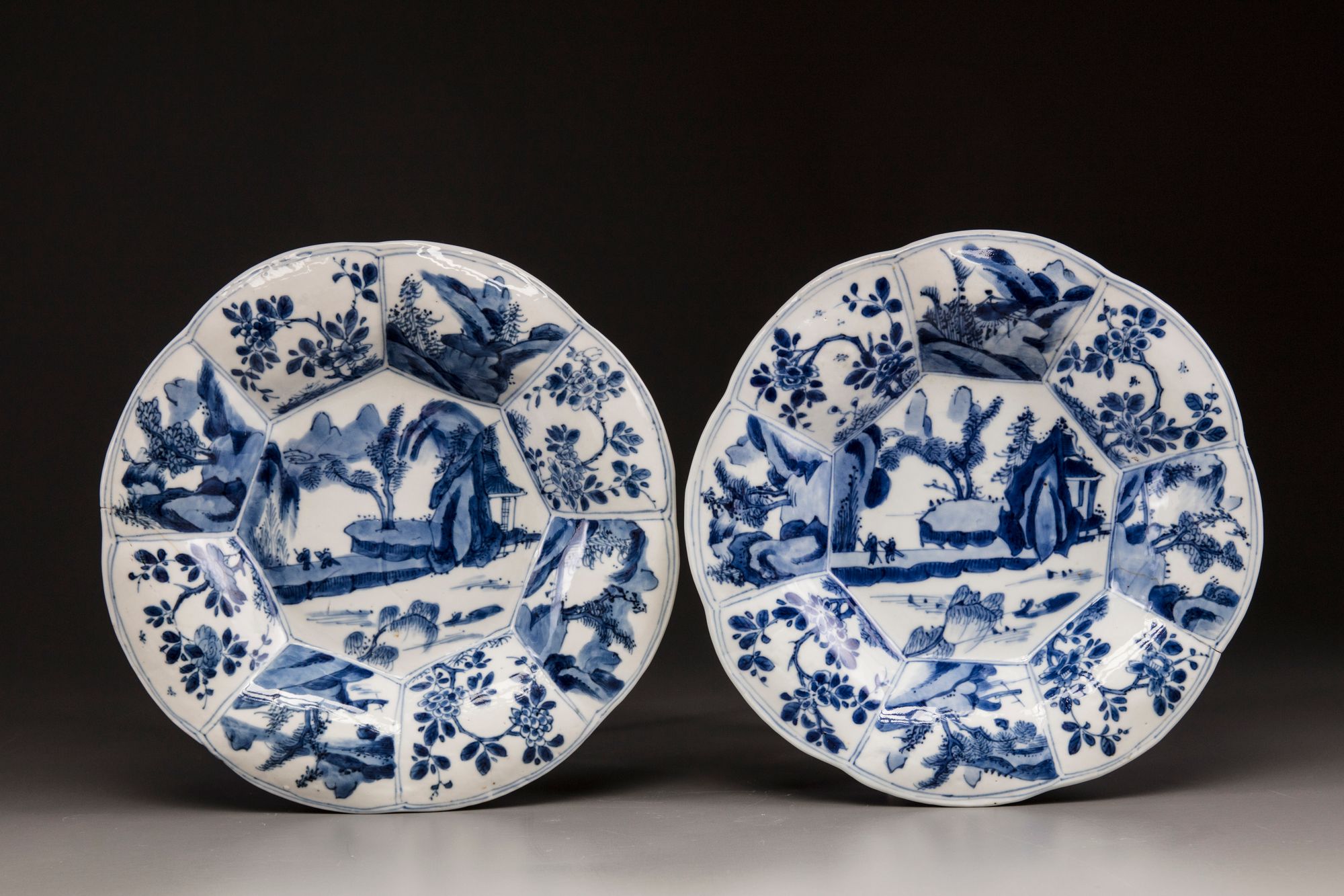 Decorated with panels of landscapes and flowering branches in underglaze blue, the base marked 'zhi' within a double circle in underglaze blue.