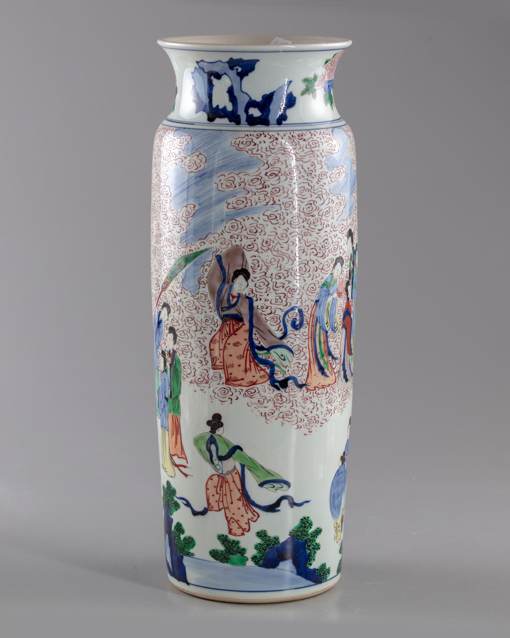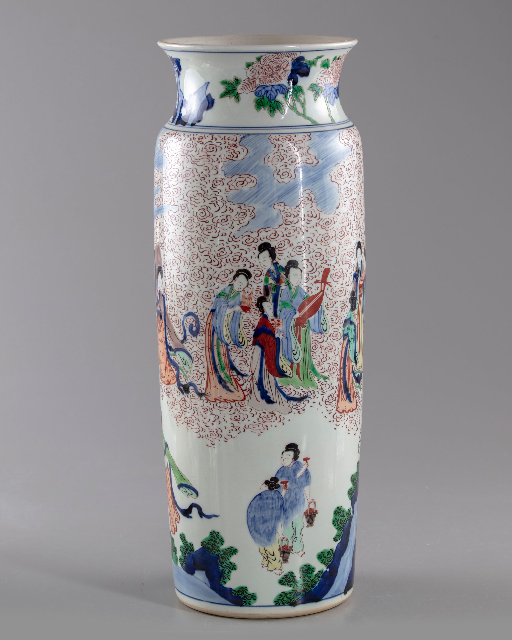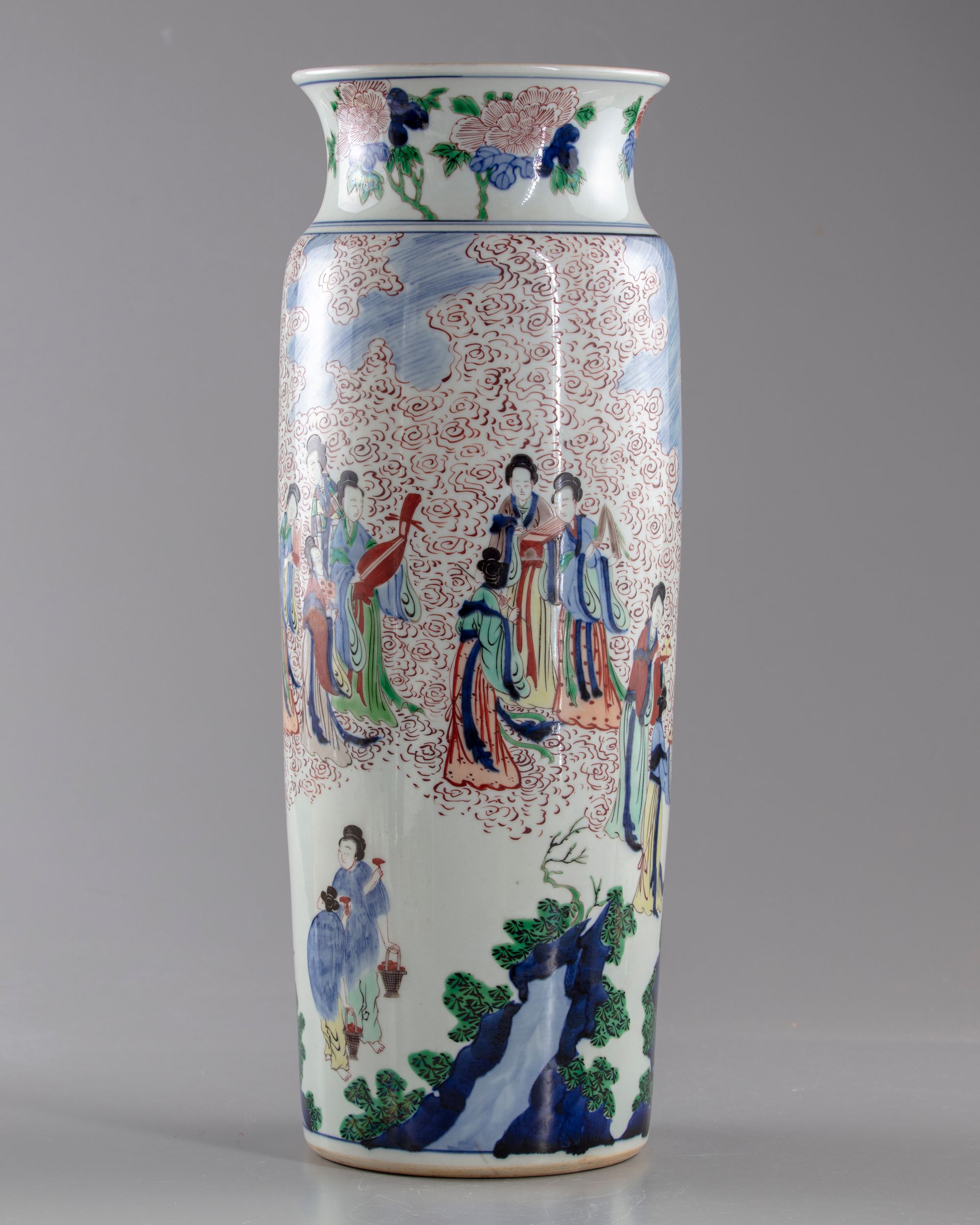 Painted in the Transitional style, with a man standing by a phoenix surrounded by girls dancing or playing traditional instruments.