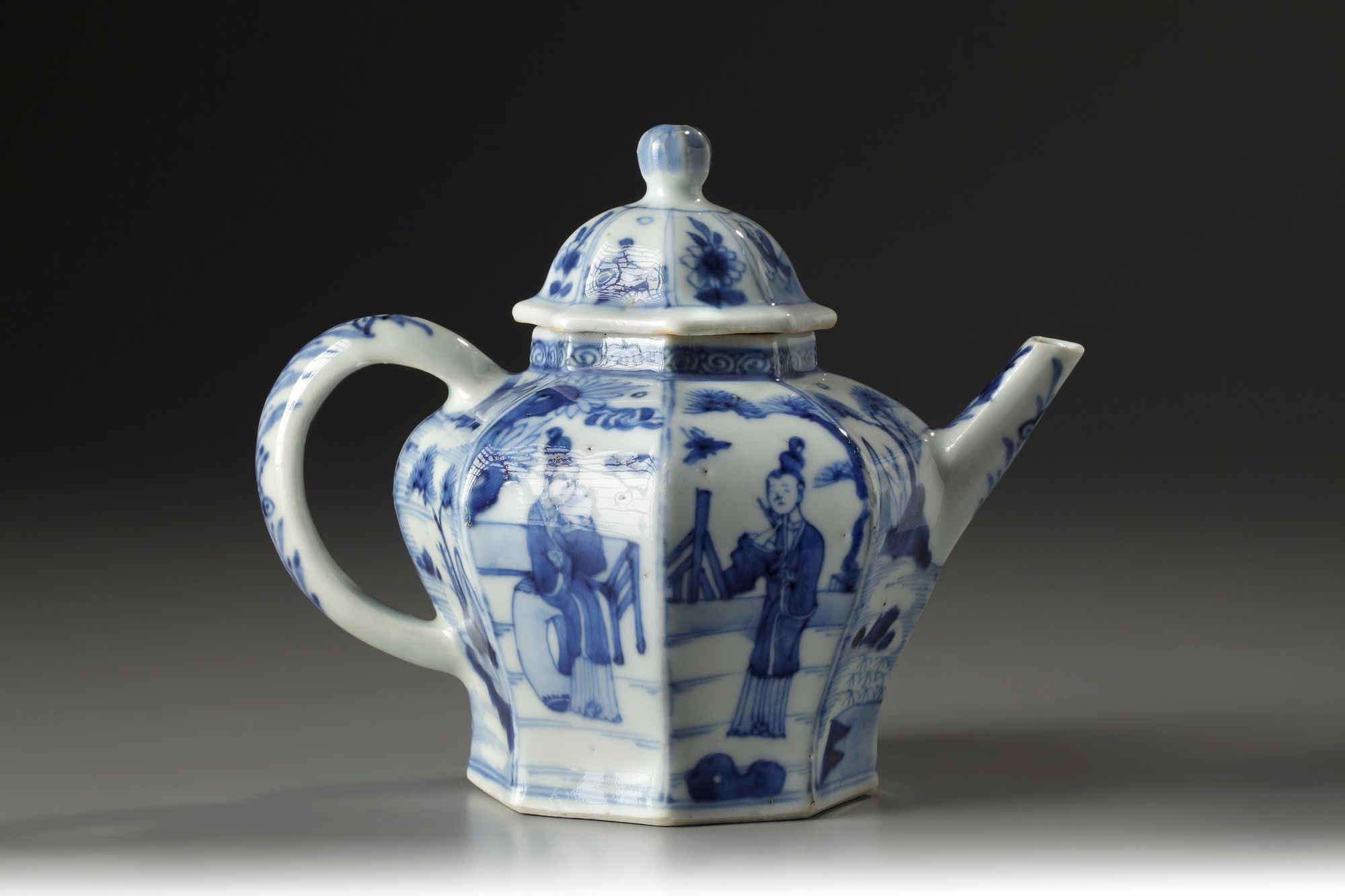 Condition: two small frits to the spout; fritting to the edge of one panel on the body.