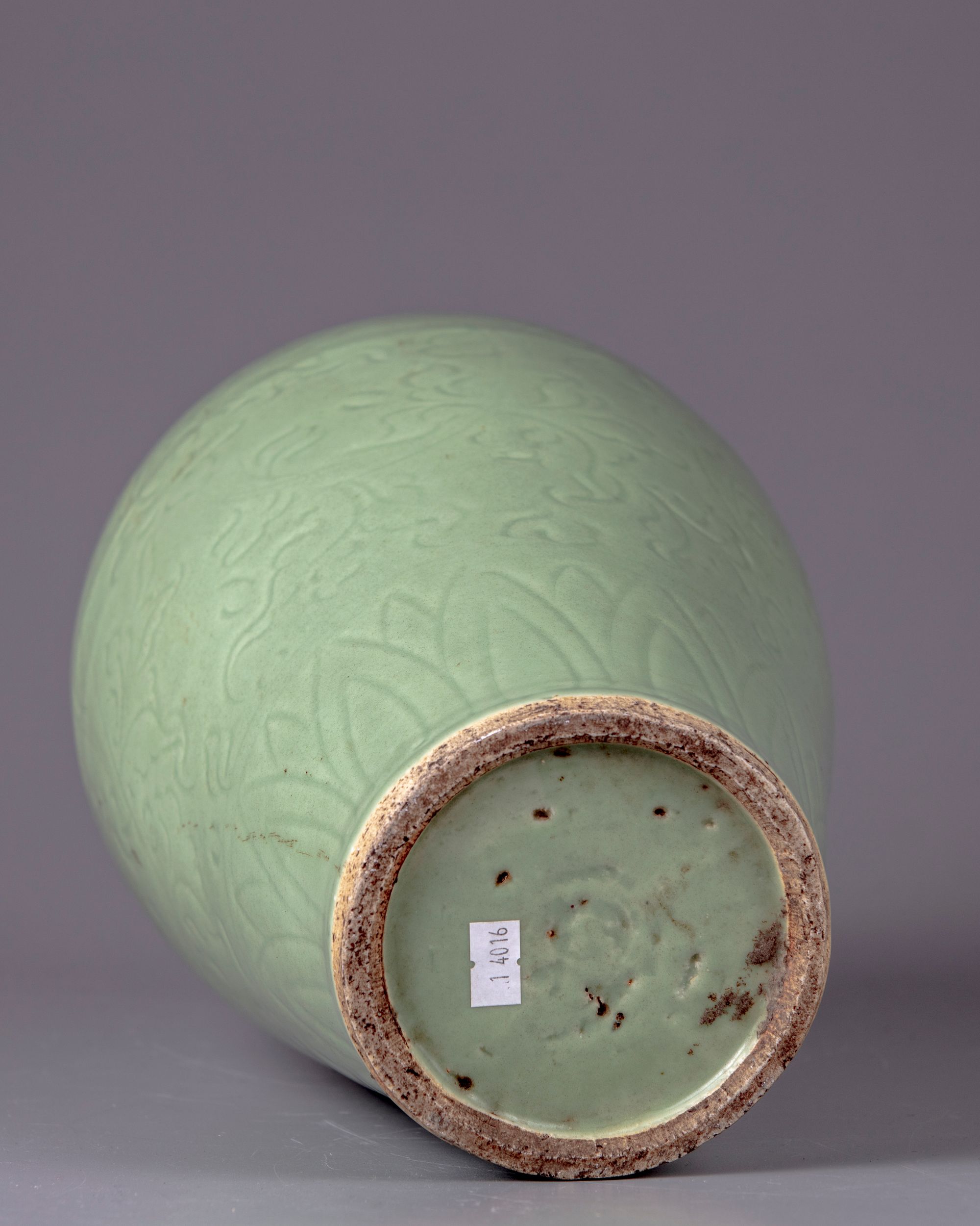 Of characteristic meiping form, decorated with foliage scrolls and plantain leaves to the base.