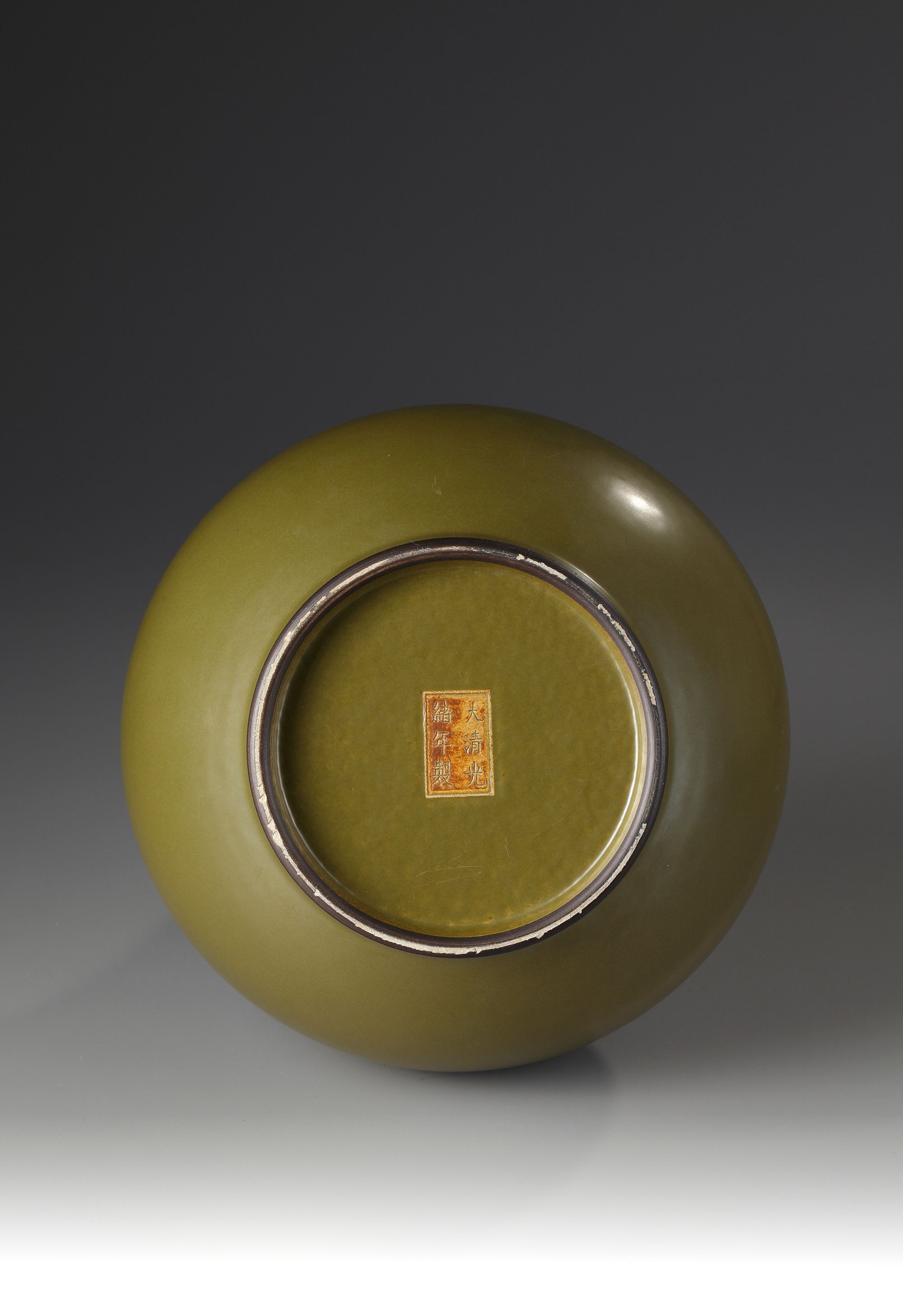 Large Chinese porcelain tea dust glazed “tianqiuping” vase, base with the impressed six character mark of Guangxu (1875/1908) in two lines within a double square and of the period.