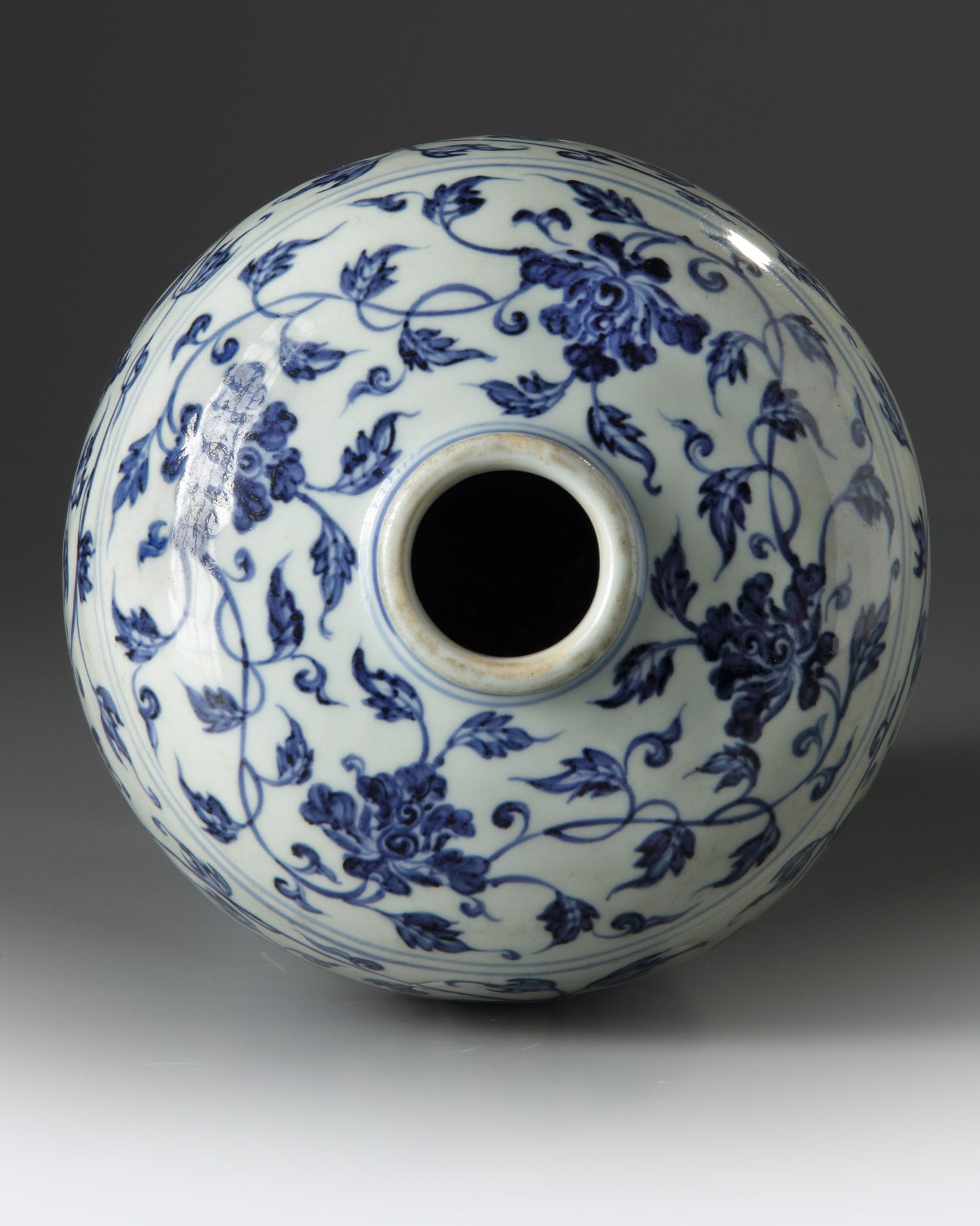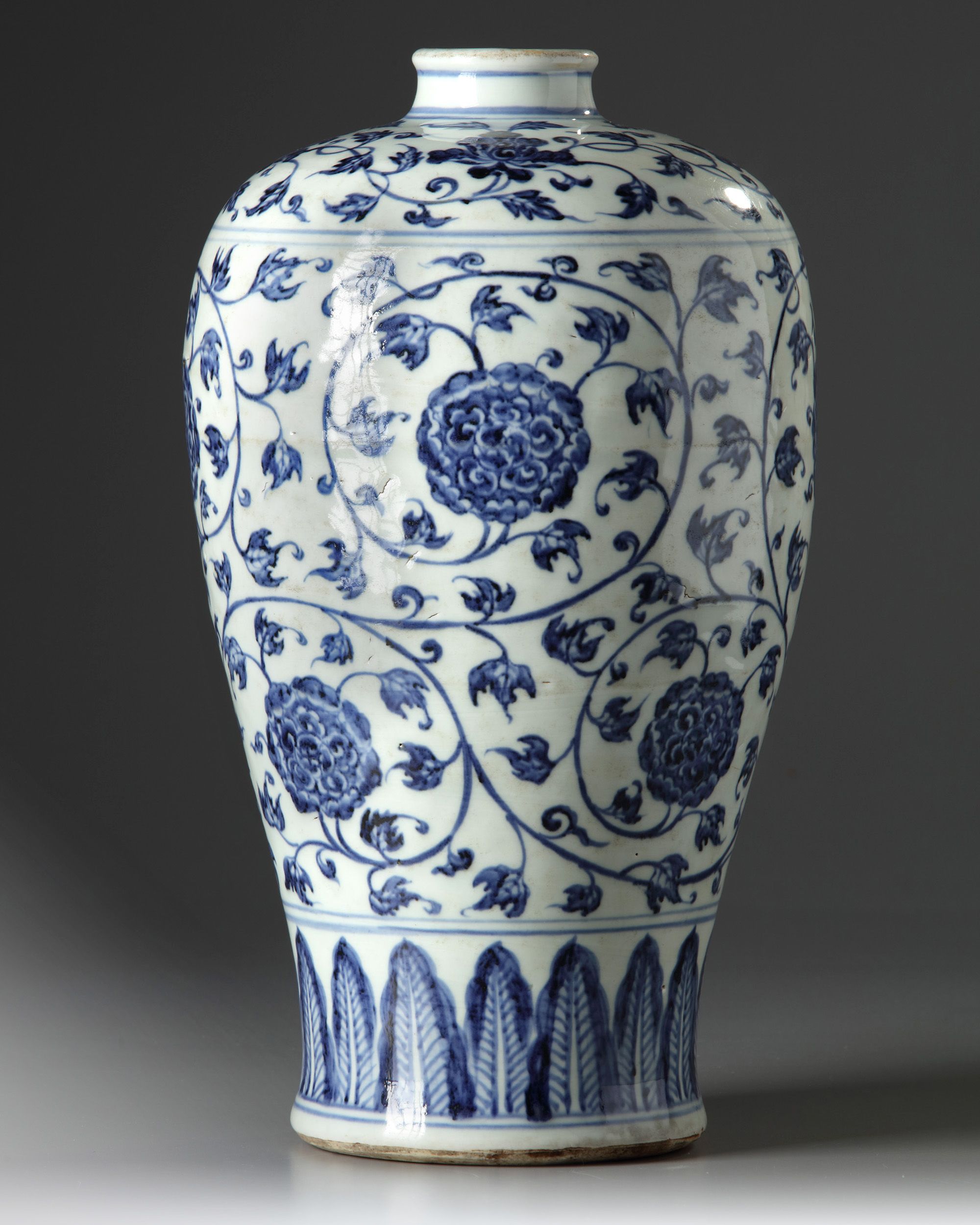 A Chinese Ming-style blue and white 'scrolling peony' meiping