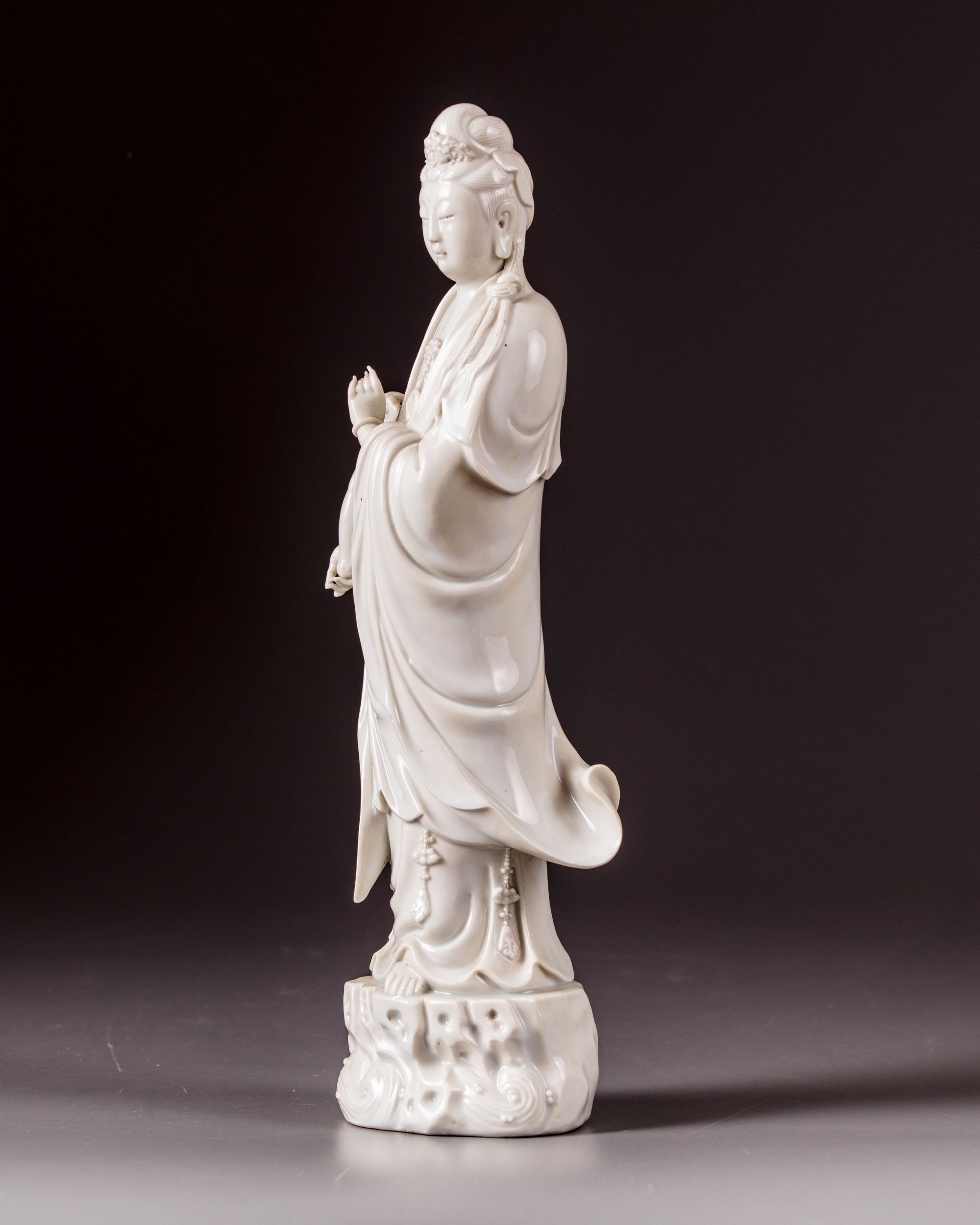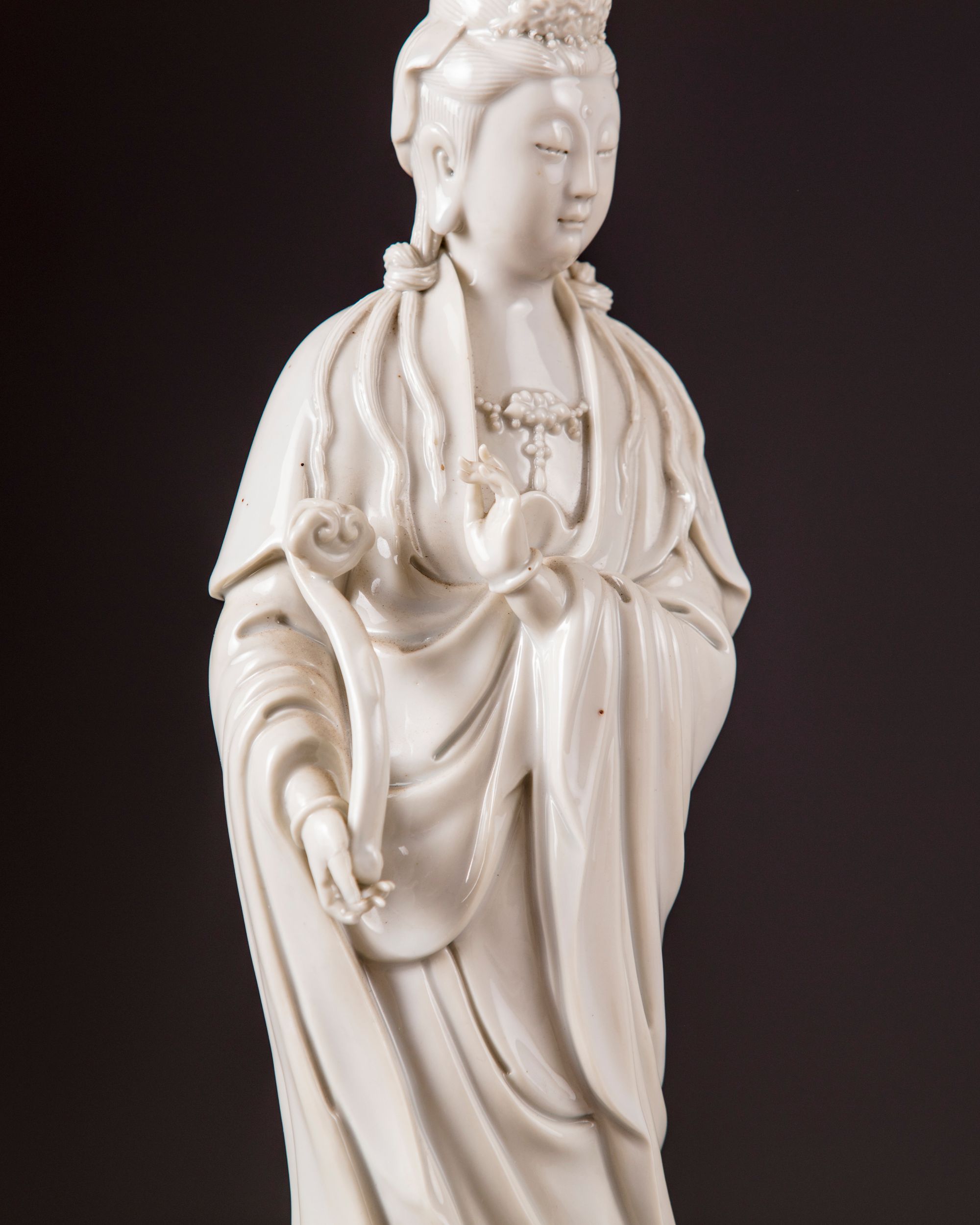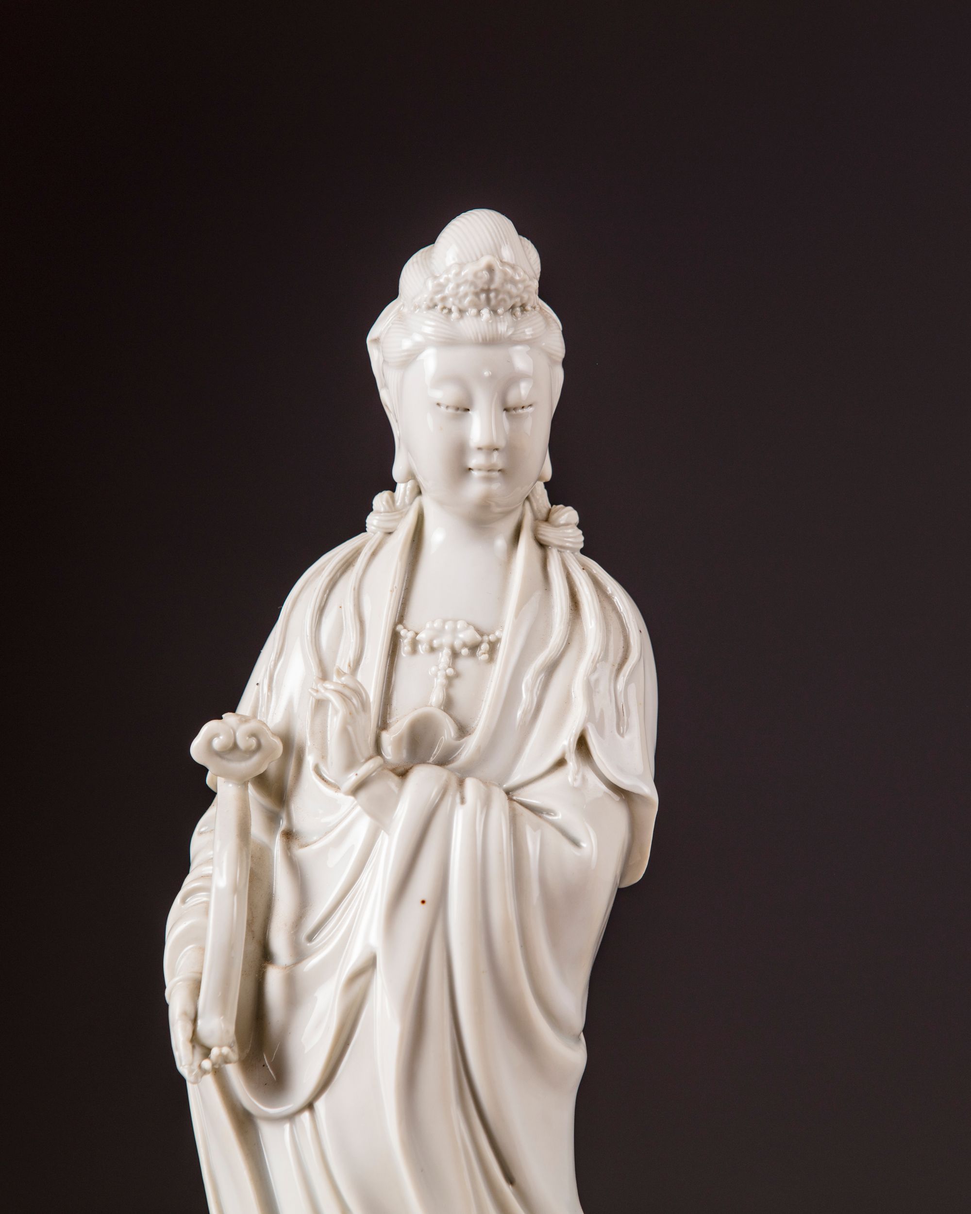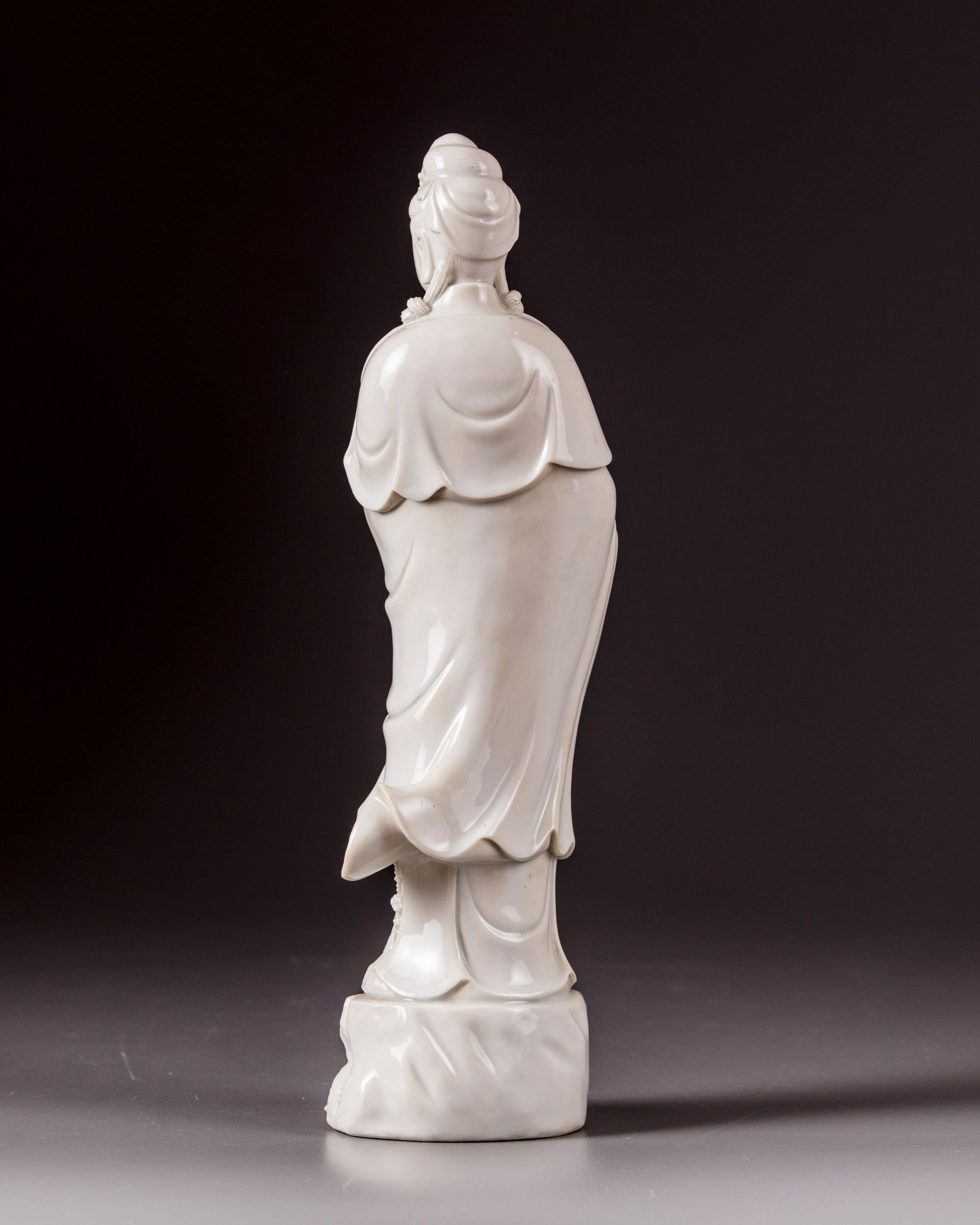 A Dehua Blanc de chine Figure of a Standing Guanyin