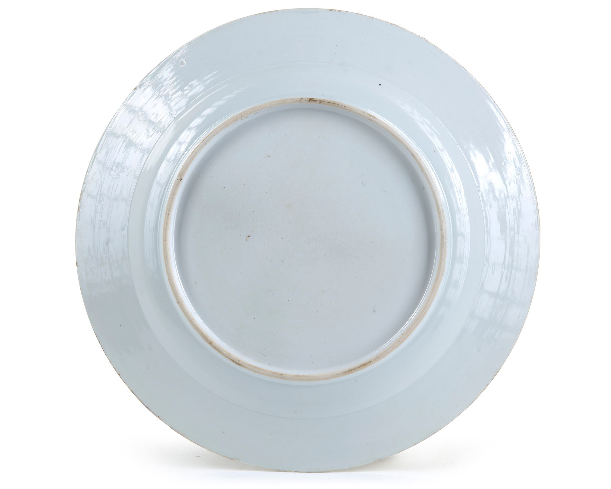 Decorated with a central roundel enclosing chrysanthemums a bamboo in lake scene. 35 cm.